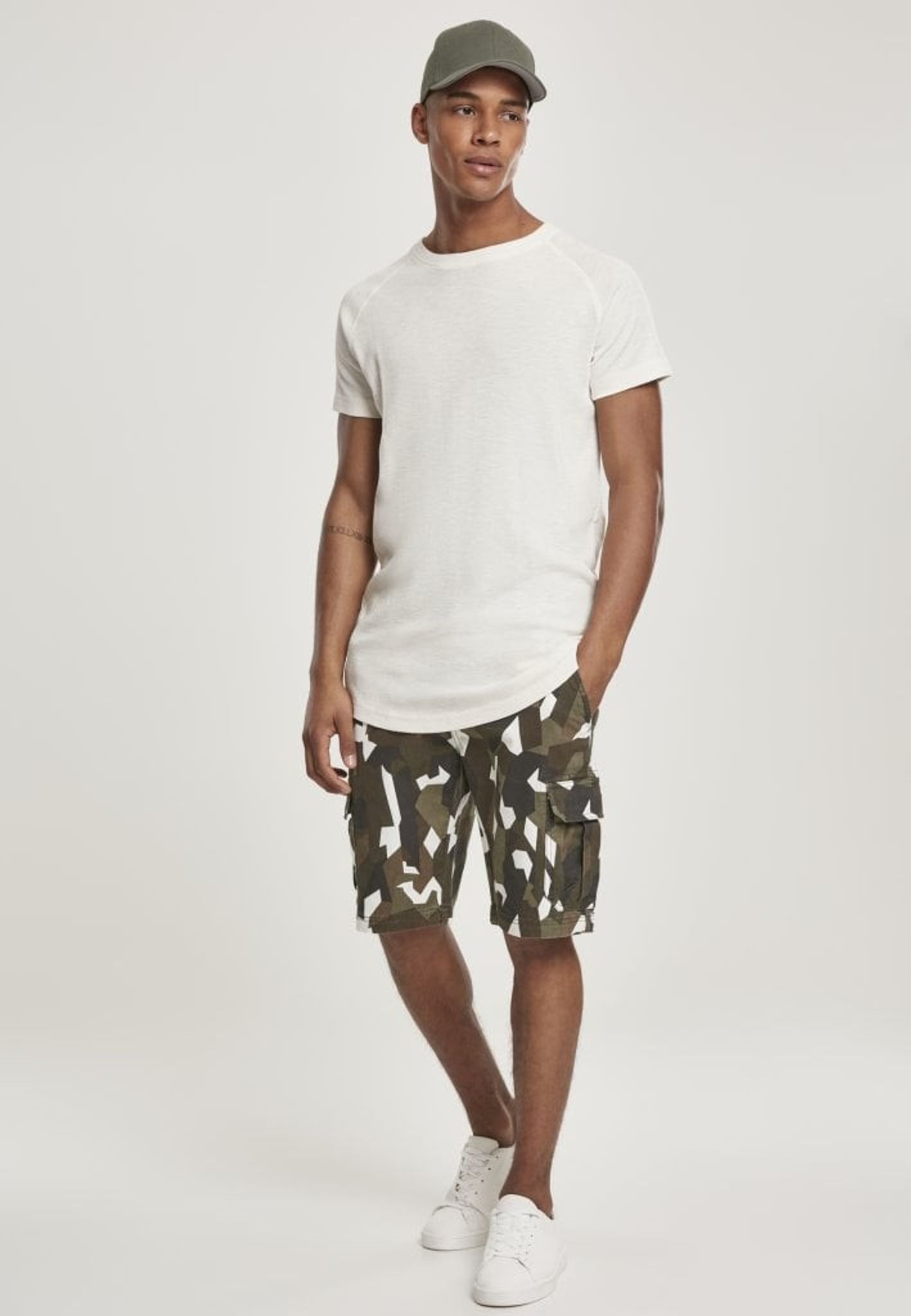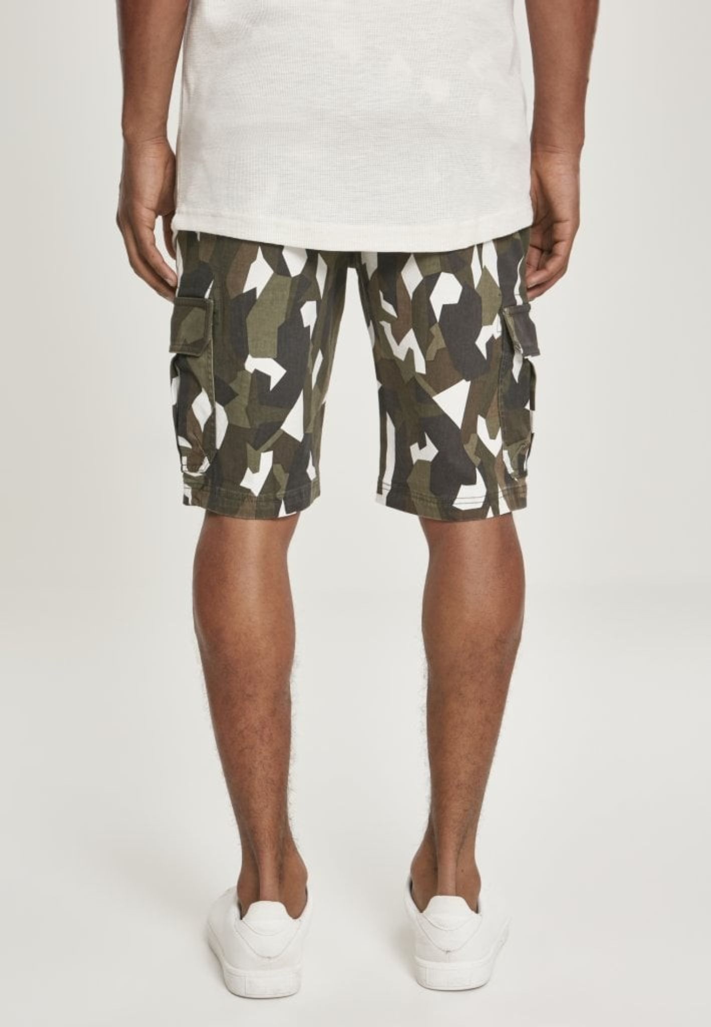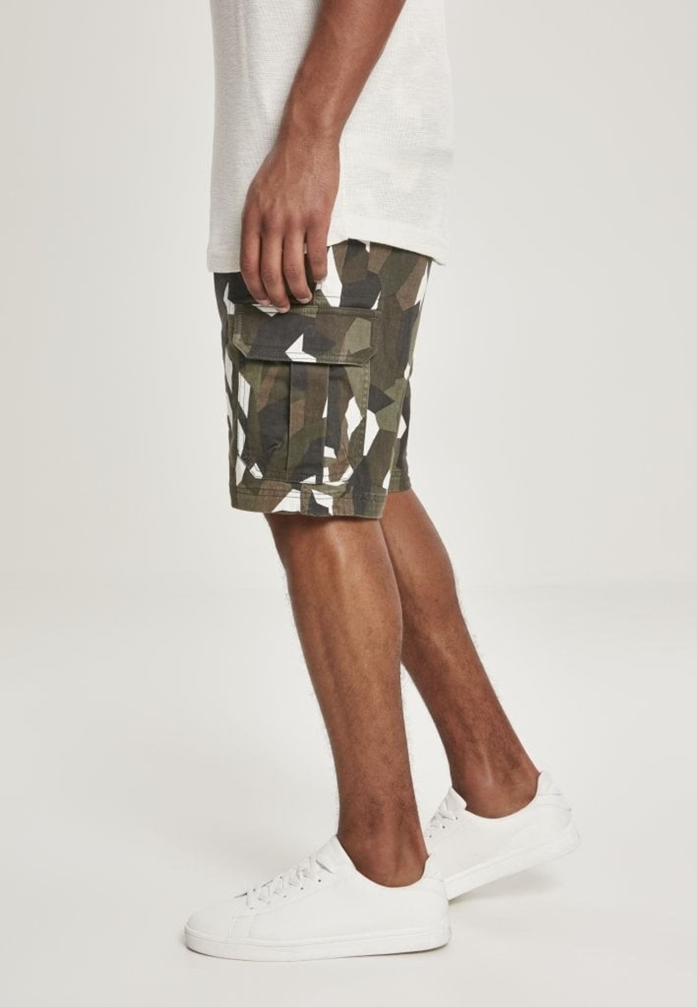 Geometrisk camo cargo shorts.