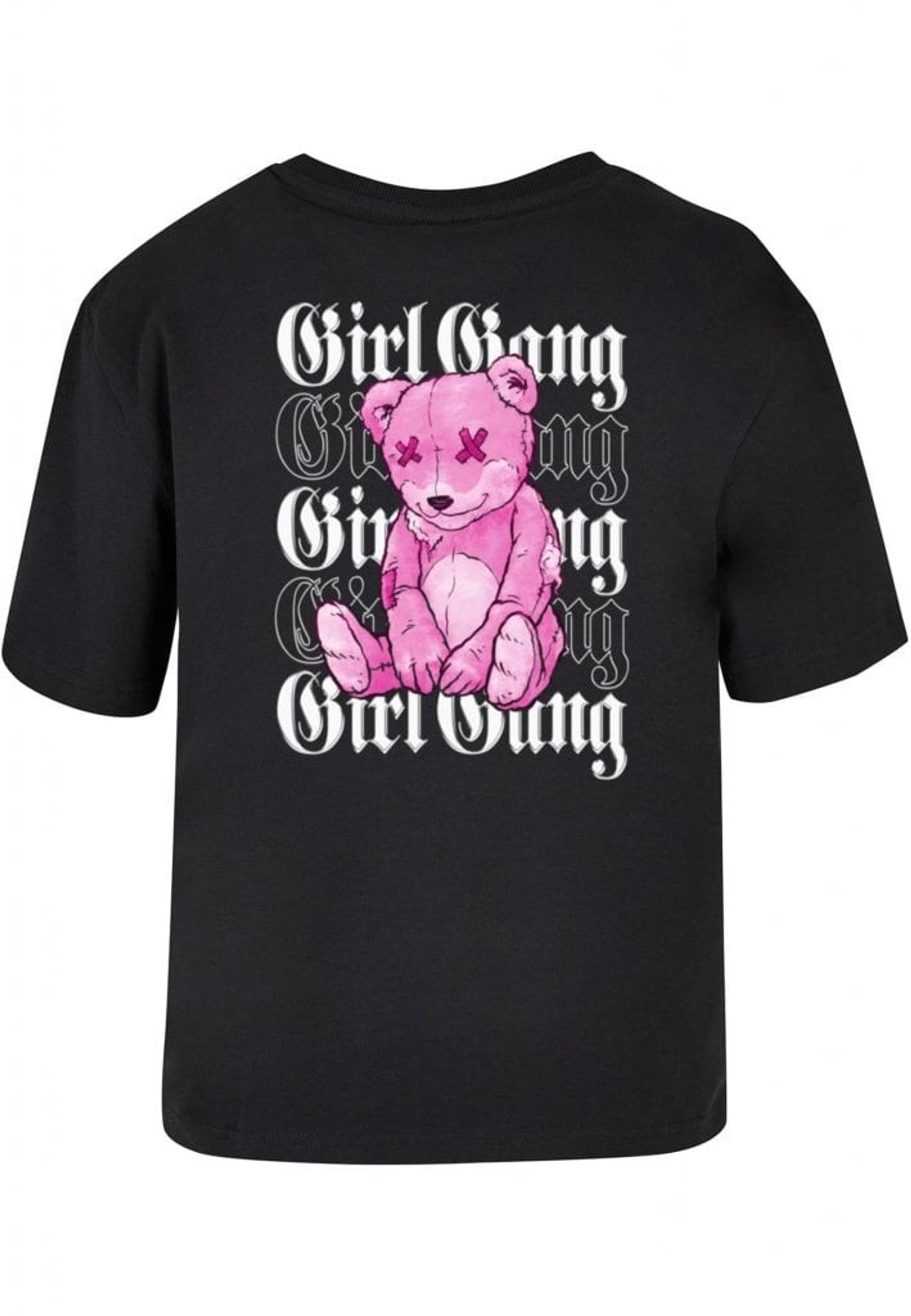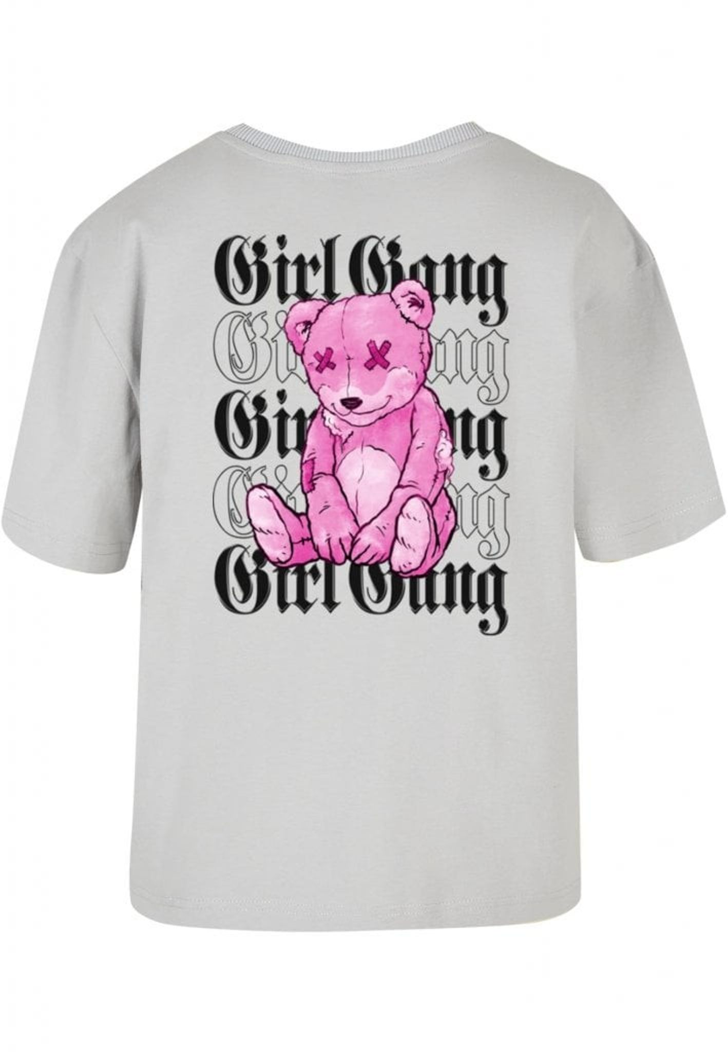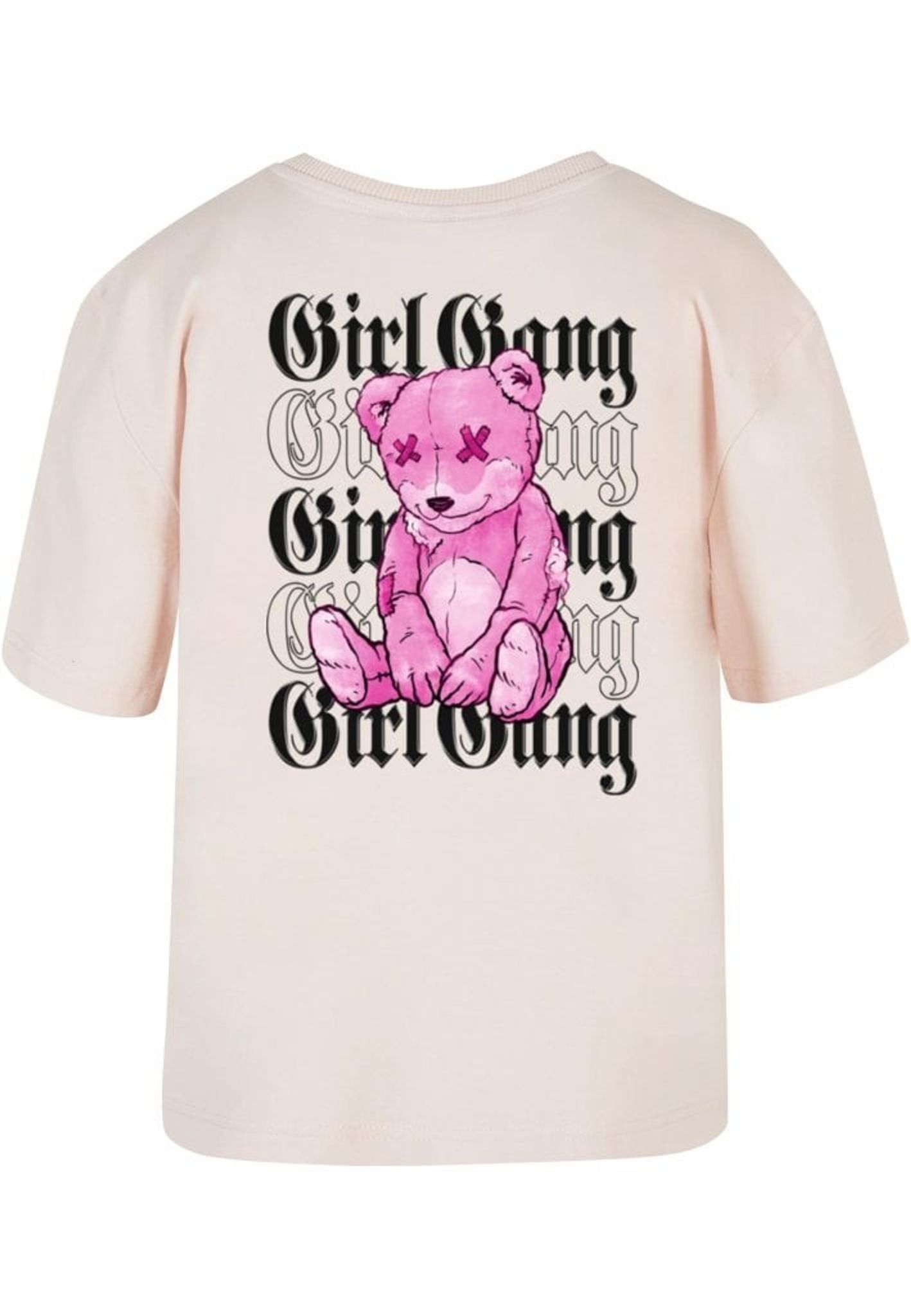 Men vänta, det finns mer! Den upprepade "Girl Gang"-texten ackompanjeras av en lekfull twist - en rosa nallebjörn med X-formade ögon. Denna rebelliska teddy lägger till ett roligt och oväntat element till designen och påminner oss om att även de tuffaste tjejerna har en mjuk sida.