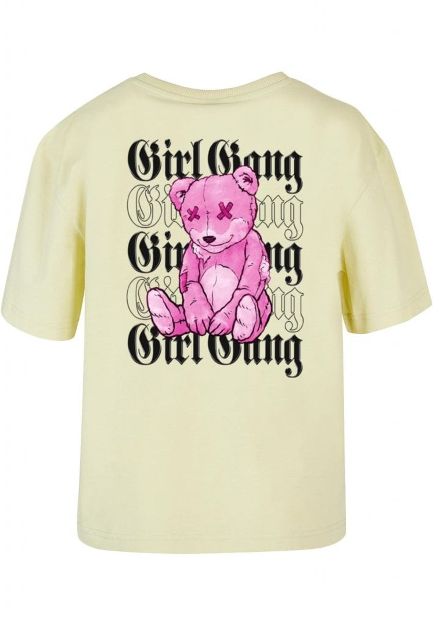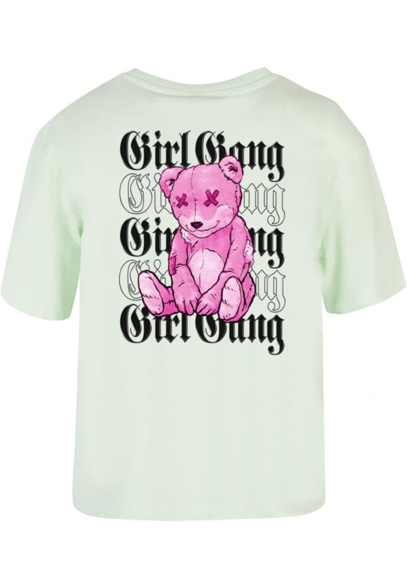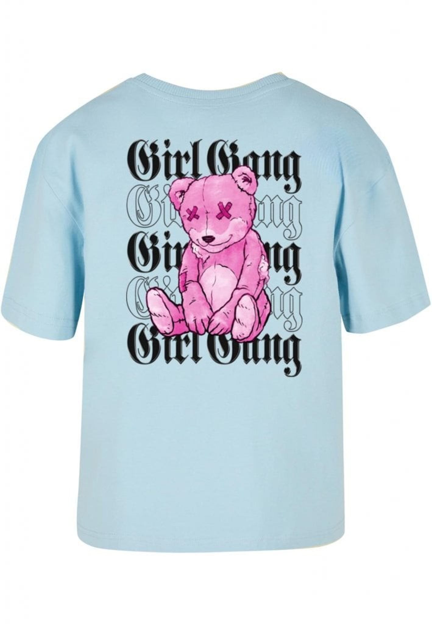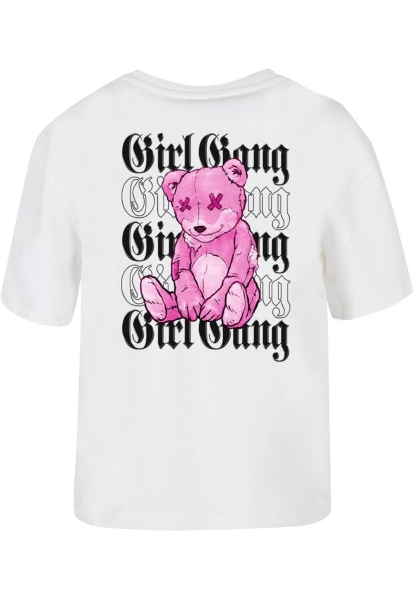 Men vänta, det finns mer! Den upprepade "Girl Gang"-texten ackompanjeras av en lekfull twist - en rosa nallebjörn med X-formade ögon. Denna rebelliska teddy lägger till ett roligt och oväntat element till designen och påminner oss om att även de tuffaste tjejerna har en mjuk sida.