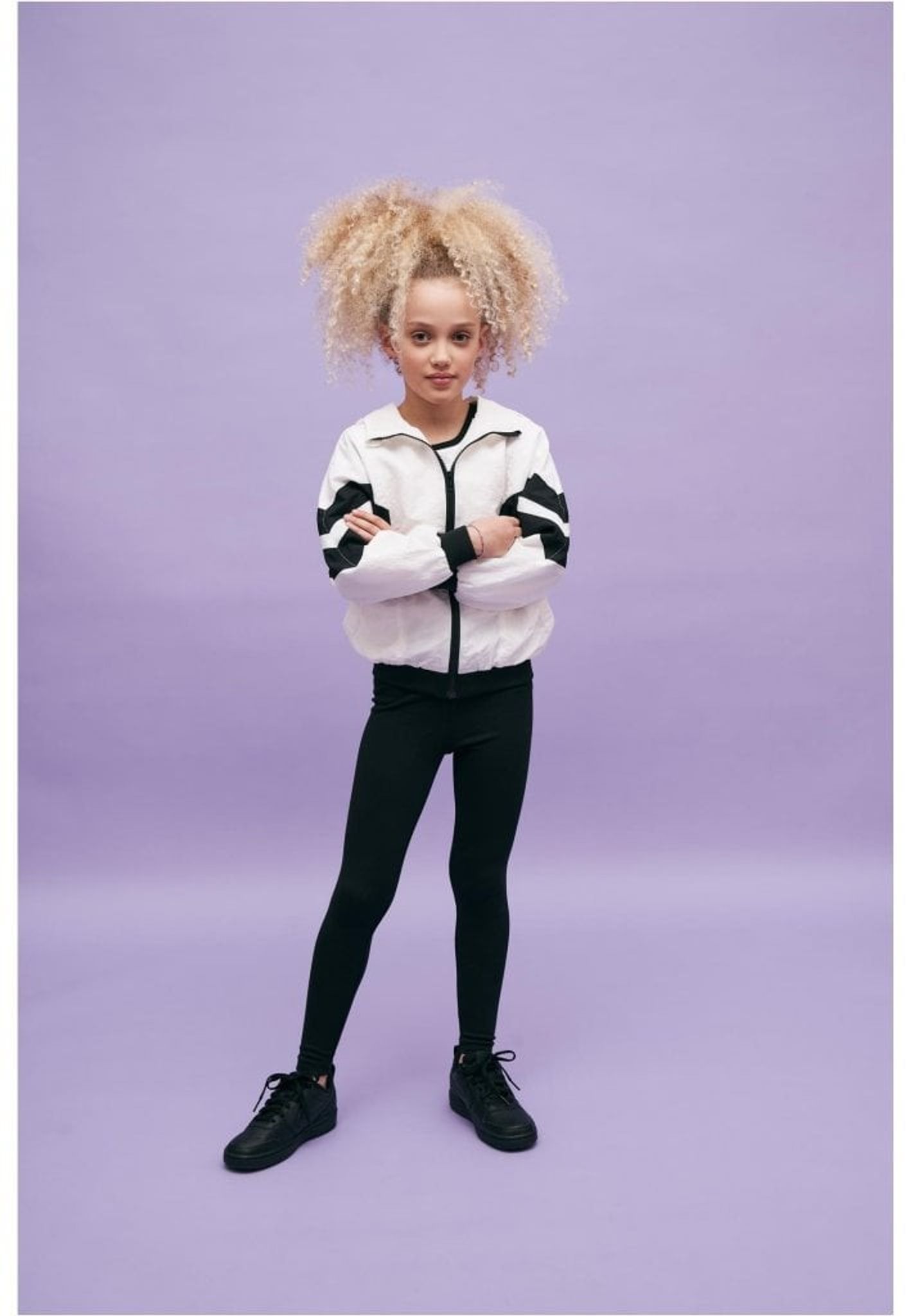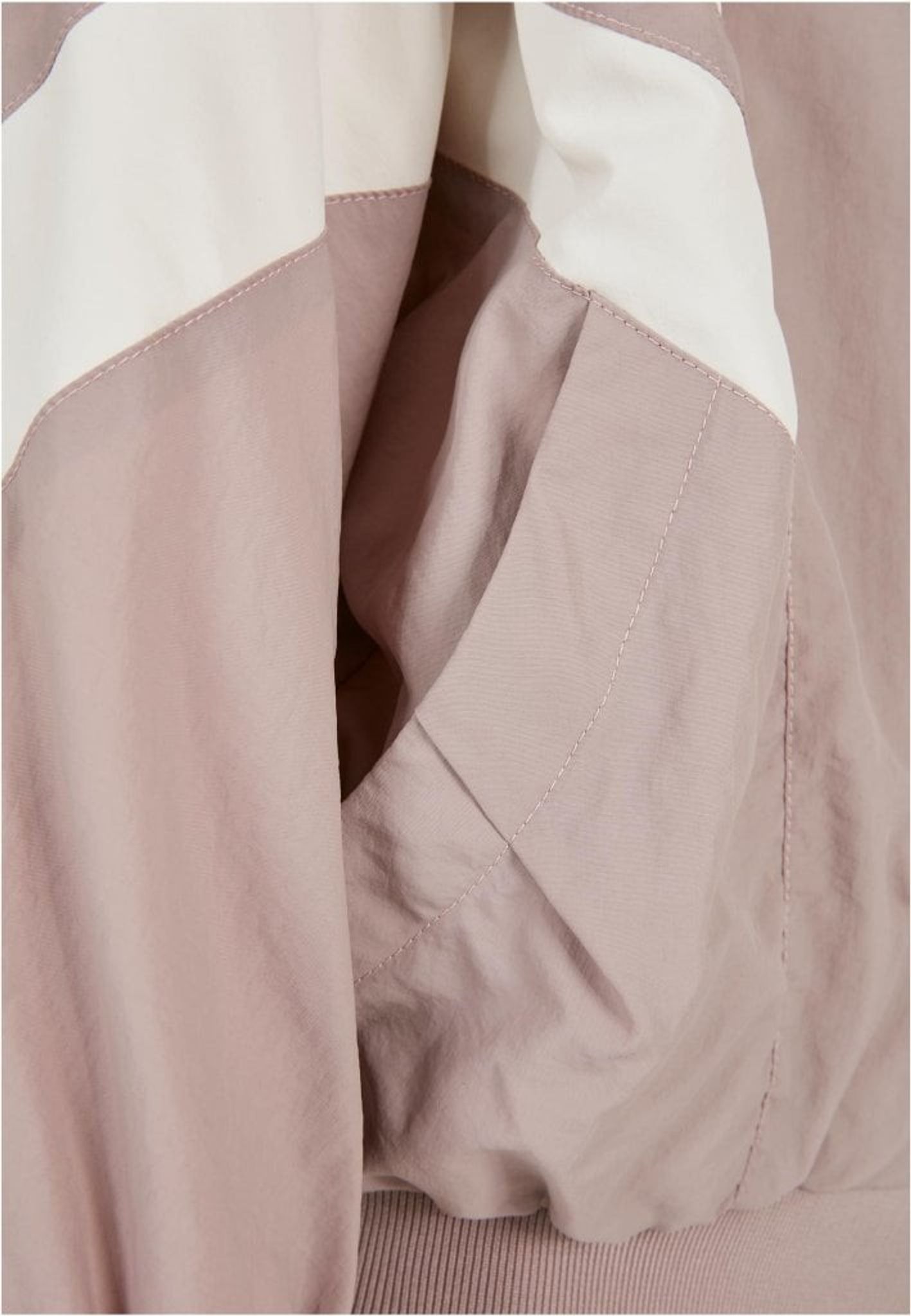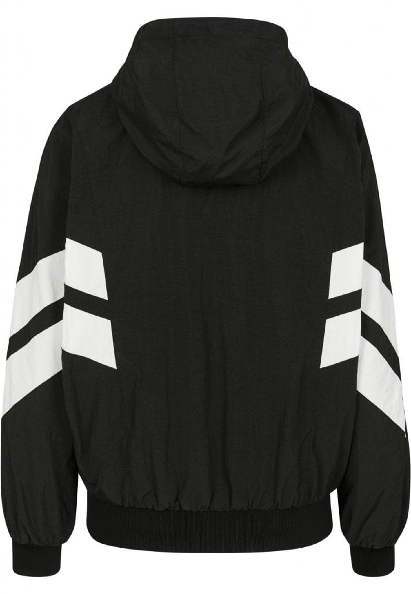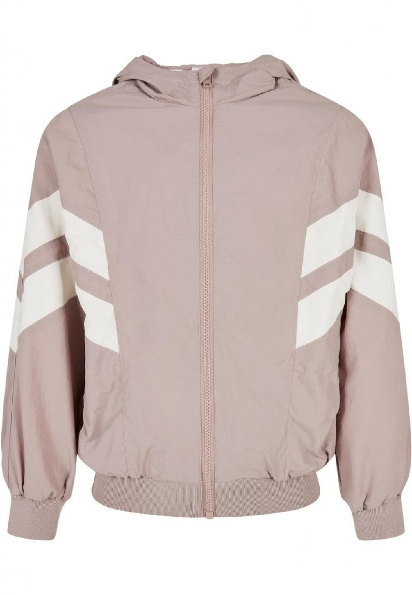 En tunn och sportig jacka i nylon med en dragkedja fram och huva. På jackan så har du två kraftiga linjer så går på sidan av jackan och över ärmarna.