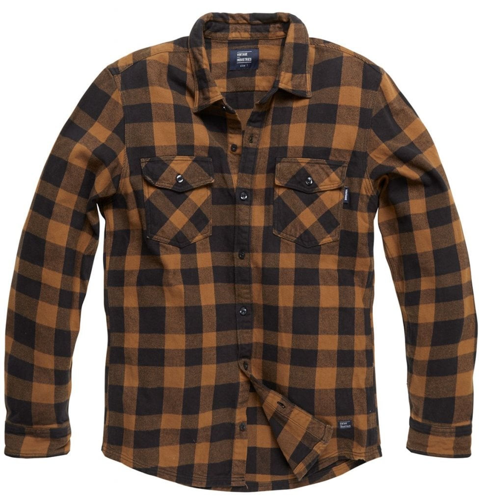 En flanellskjorta med tjockt flanelltyg. Skjortan stängs med knappar.