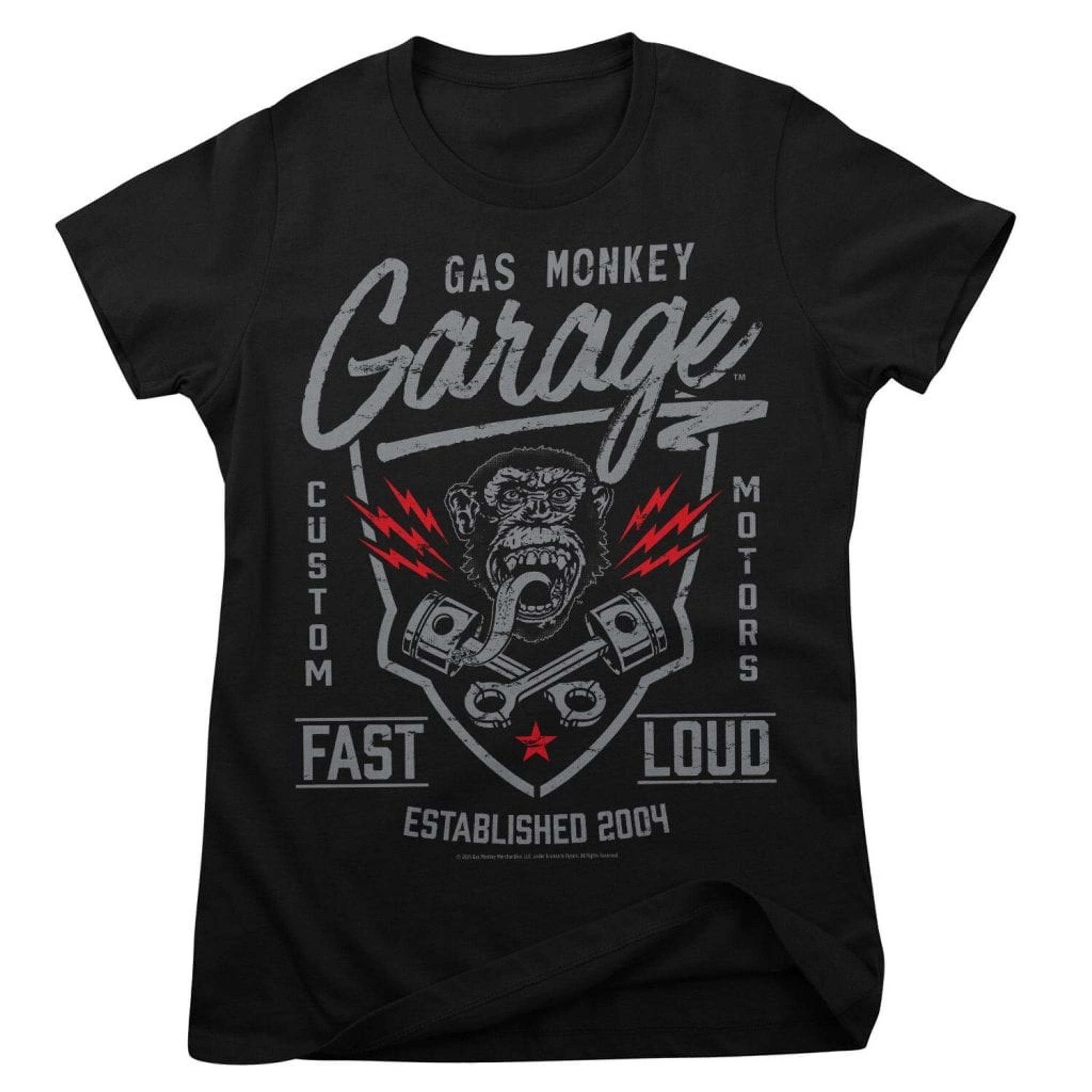 Denna Tjej T-shirt bär stolt motivet av Gas Monkey-apans ansikte, som ser ut att vara redo för ett galet äventyr. Med sitt typiska aggressiva uttryck och tungan utstickande, är det som om apan säger "Häng med, det här blir en åktur!"