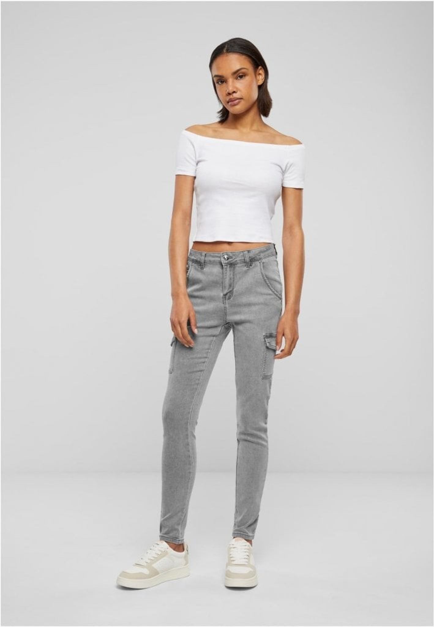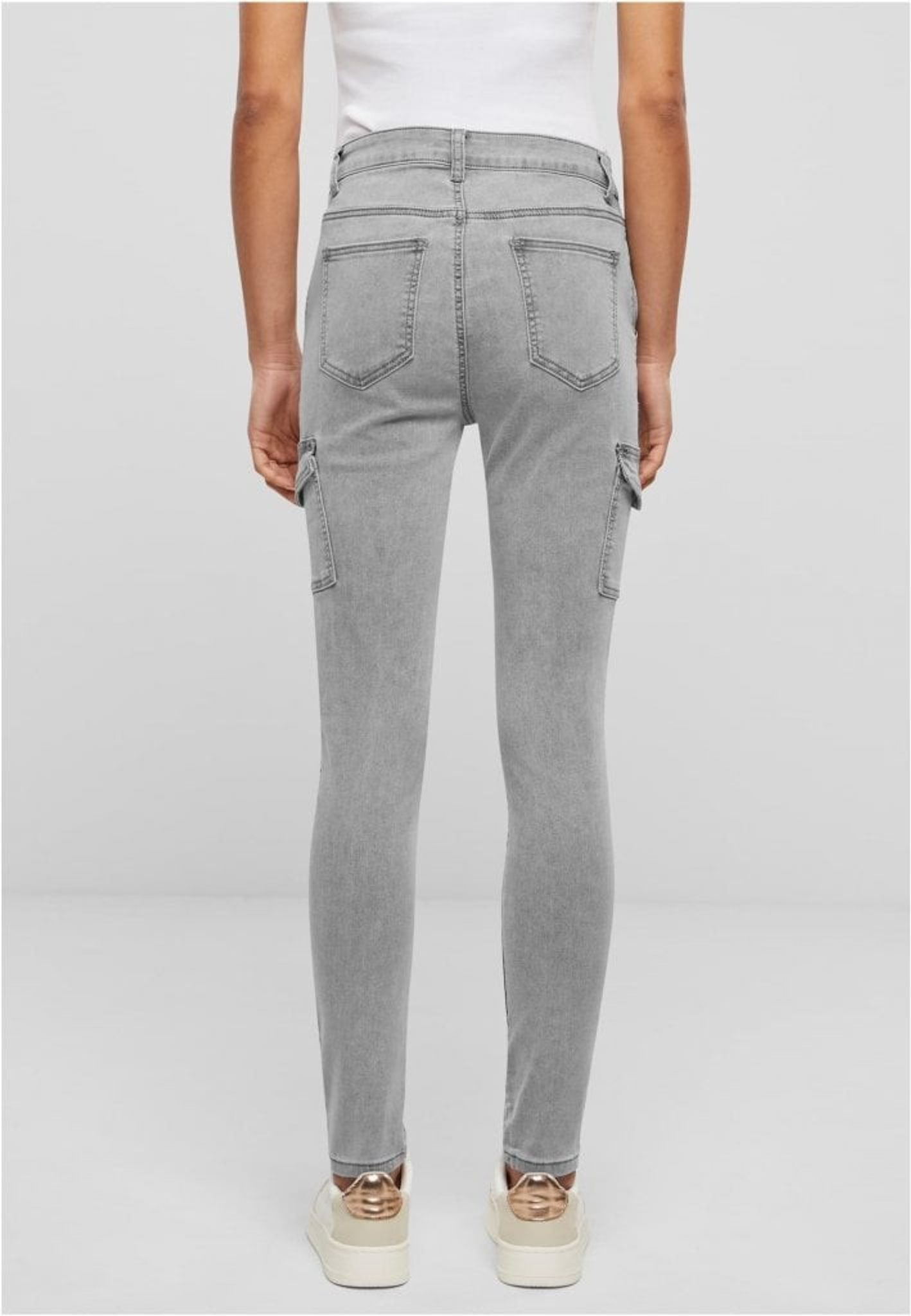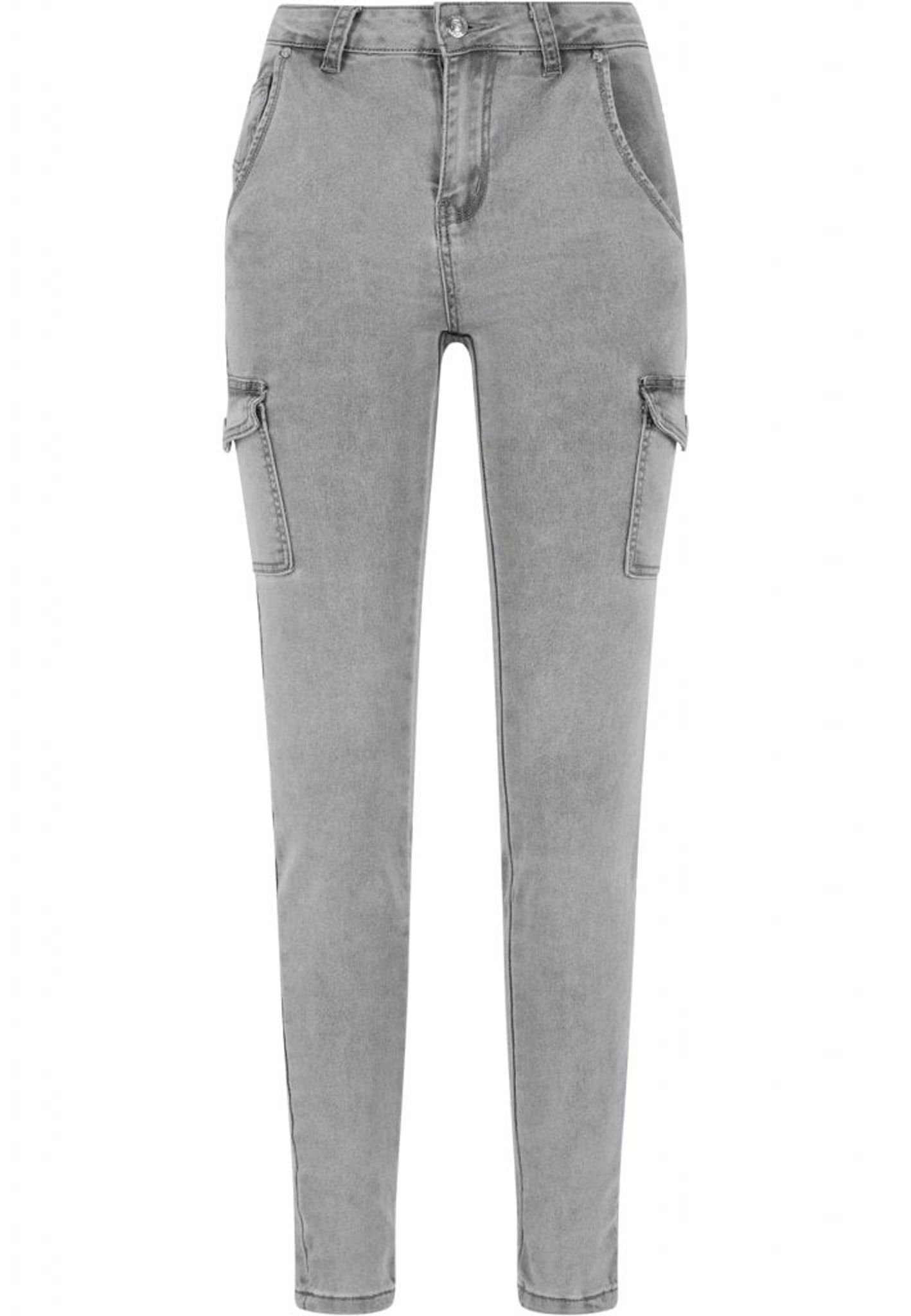 Grå cargojeans med hög midja dam.
