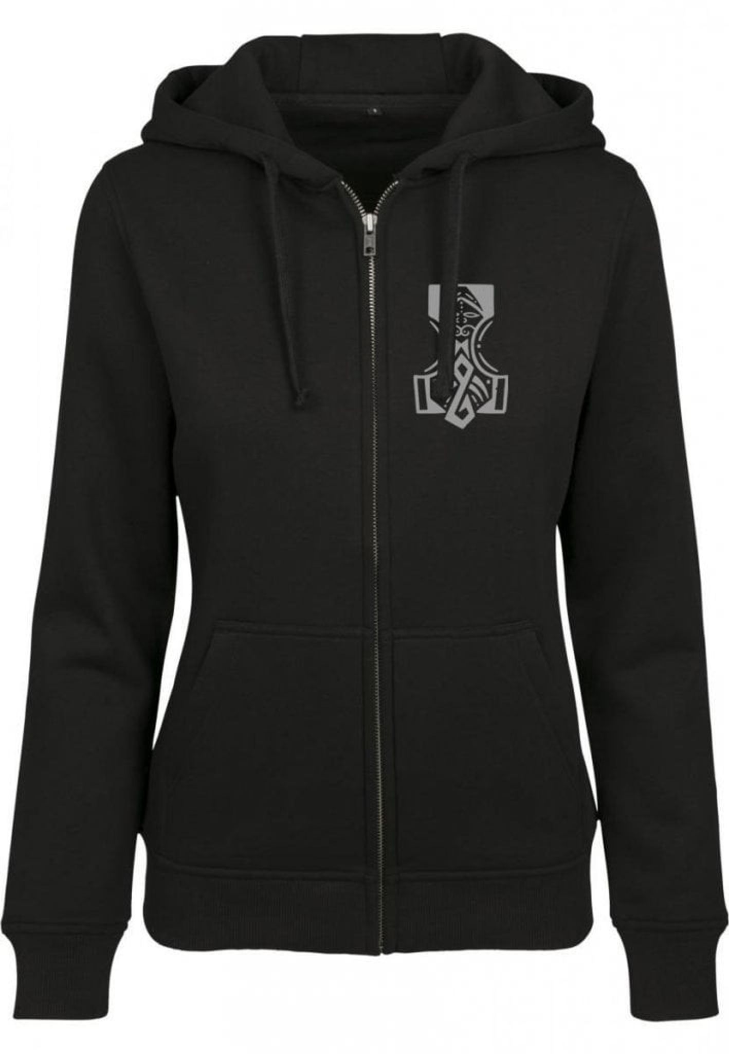 En skön ziphoodie med en grå version av den klassiska Mjölner eller Tors hammare som den är mer känd som.