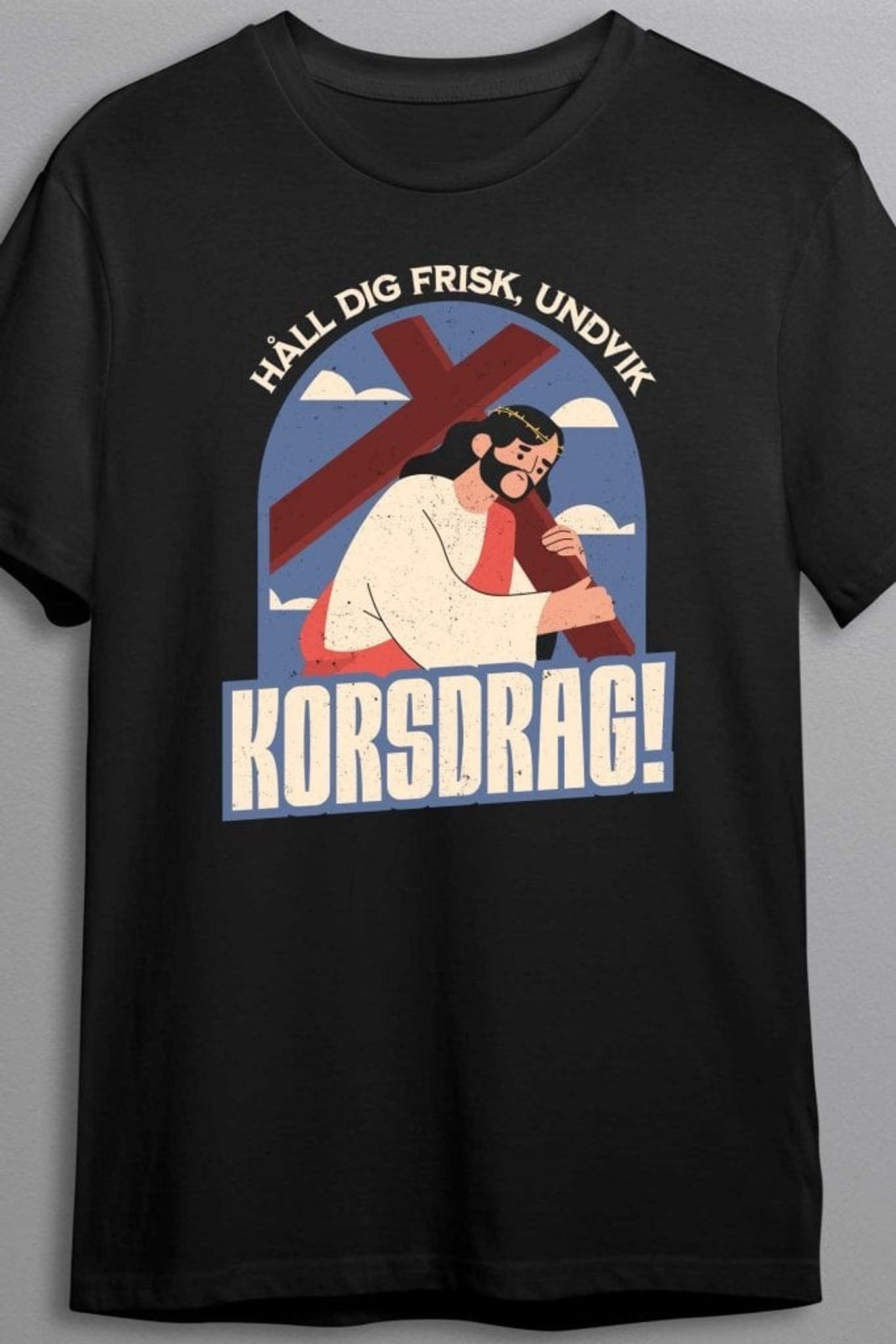 Den är lika passande i kyliga vindar som i en varm diskussion om humor och tro. En t-shirt som garanterat väcker både leenden och eftertanke, samtidigt som den håller dig stilrent klädd. För visst vill du inte riskera att dra på dig ett korsdrag?