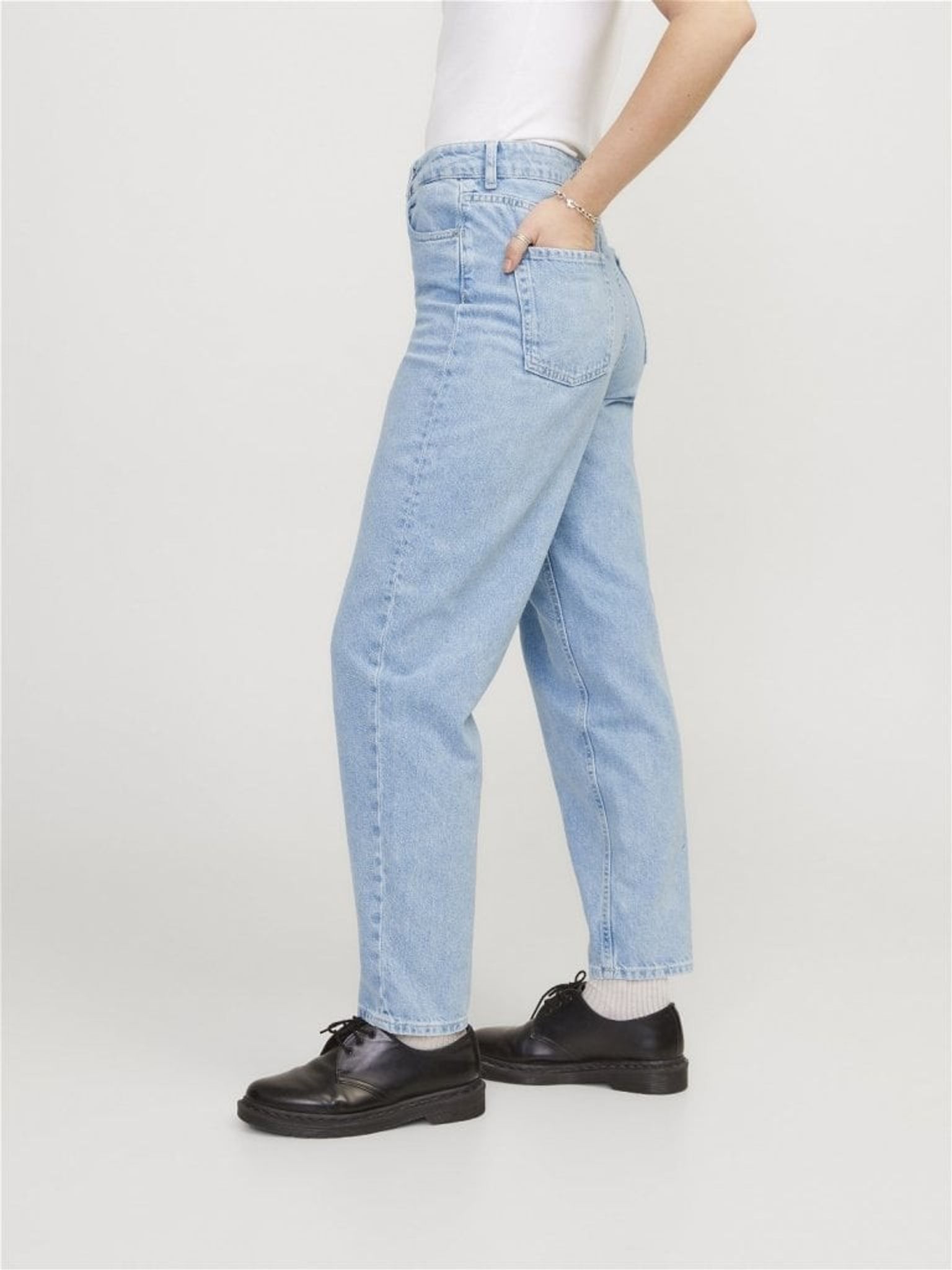 Hållbara Mom Fit Jeans med Hög Midja och Stentvättad Finish
