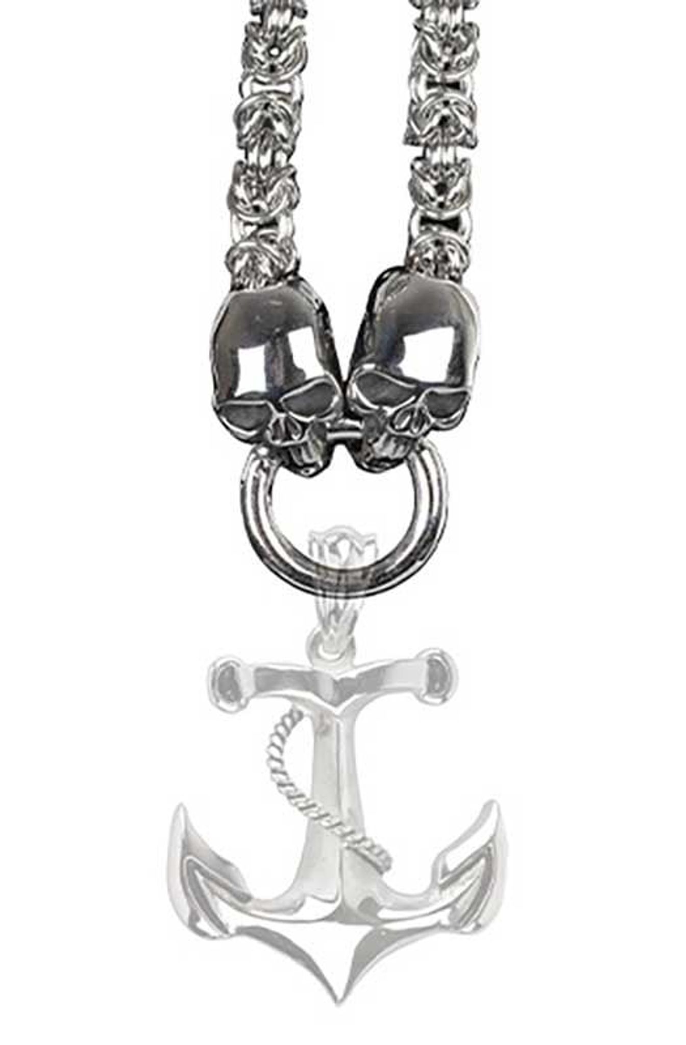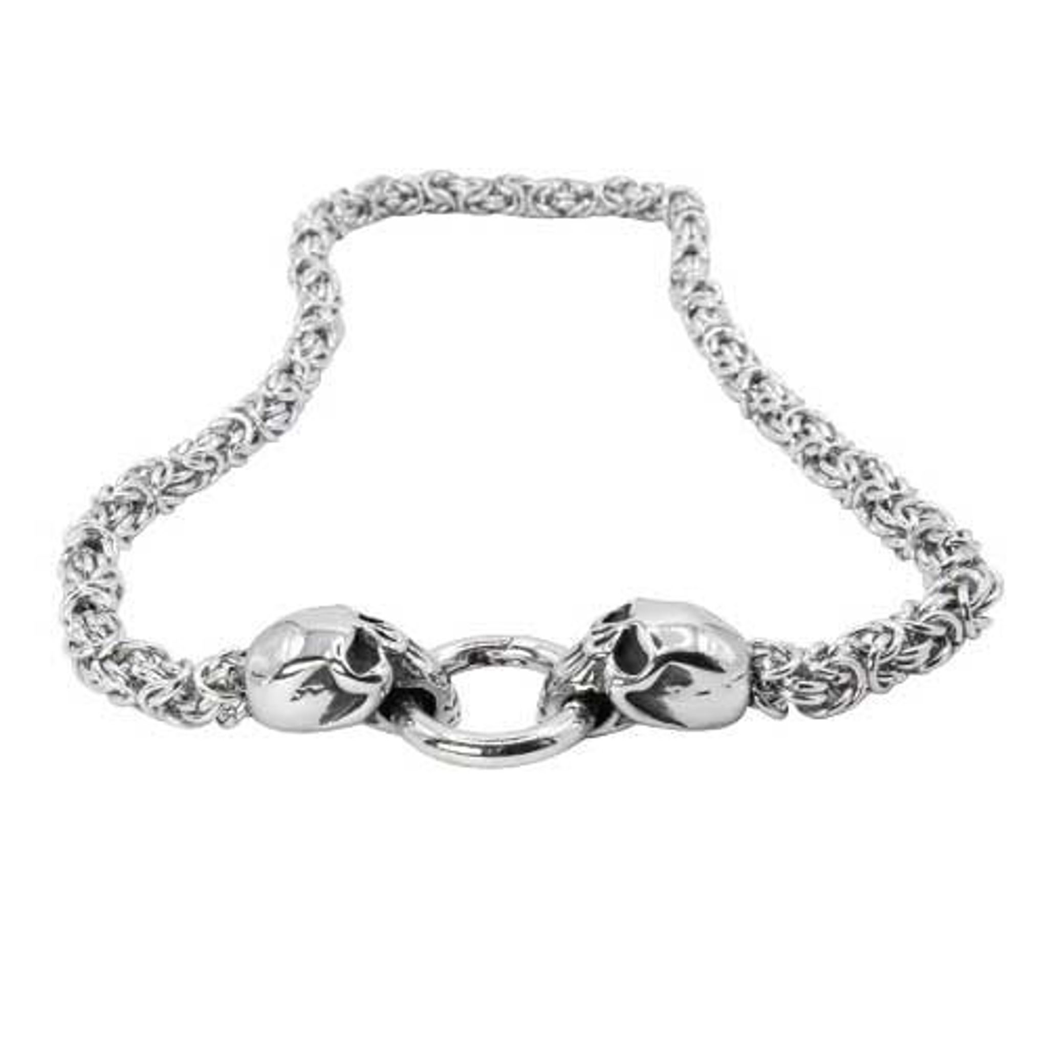 Dessa skallar representerar inte bara det eviga utan också en påminnelse om att livet är något att gripa tag i med kraft och mod. Den 0,4 cm tjocka ringen de biter om är praktisk såväl som symbolisk, och tillåter bäraren att enkelt fästa ett valfritt hängsmycke, vilket ger möjlighet att anpassa och personifiera kedjan efter eget tycke.