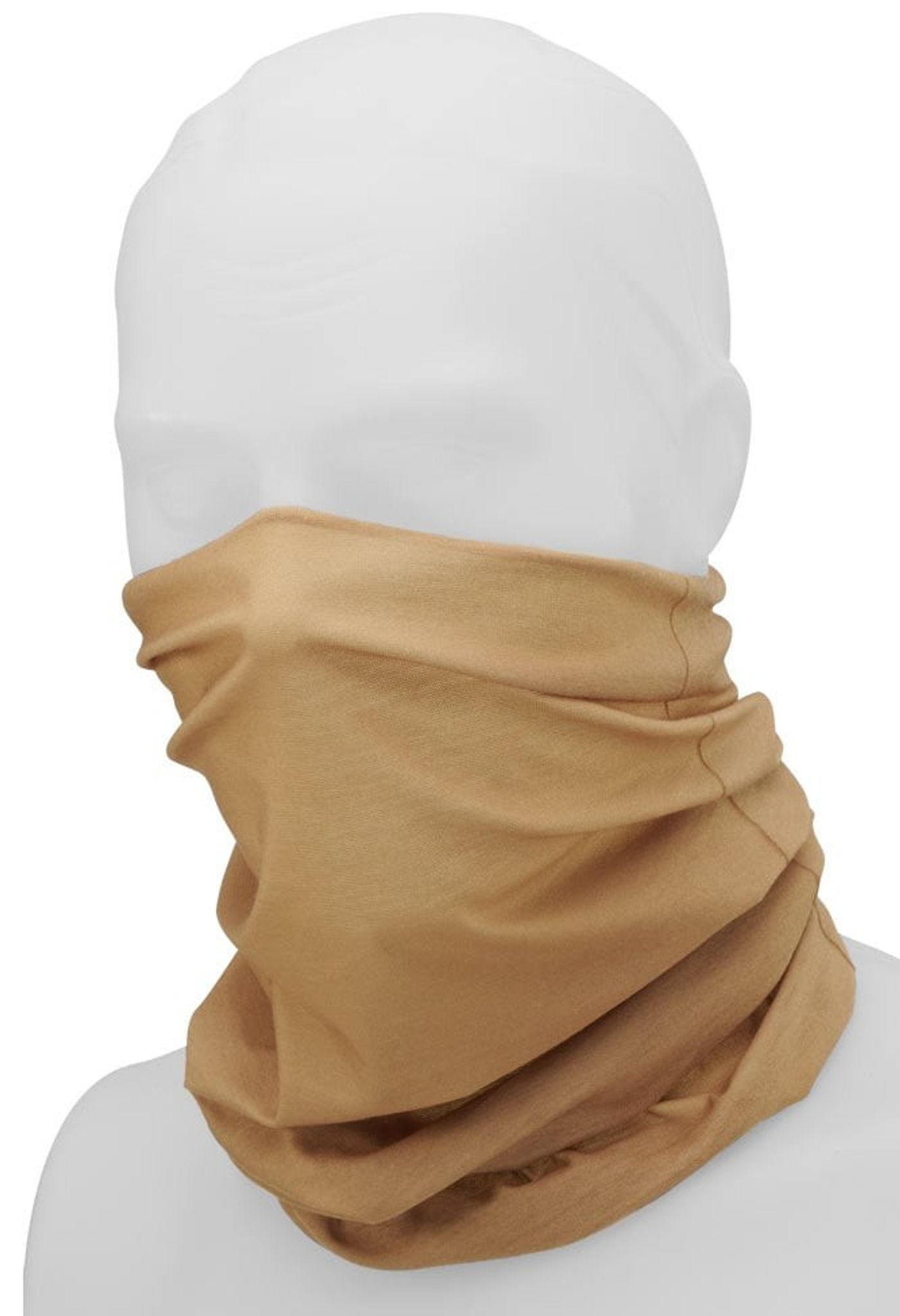 En tubhalsduk i beige nyans. Tubhalsduken är tillverkad i ett polyestertyg som gör att tyget inte binder till sig fukt.