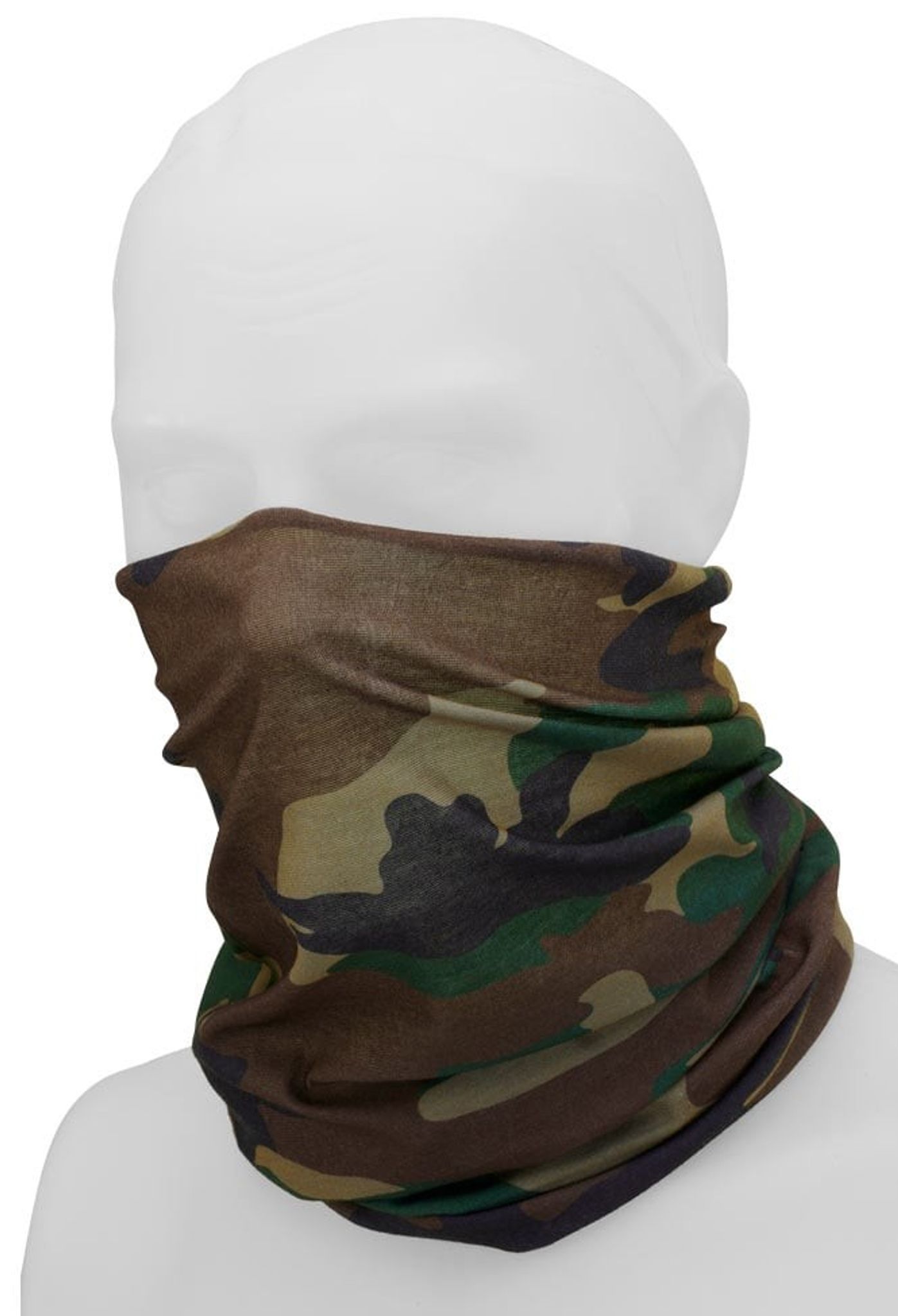 En tubhalsduk i klassisk woodland camo. Tubhalsduken är tillverkad i ett stretchigt, lätt och sömlöst polyestertyg.