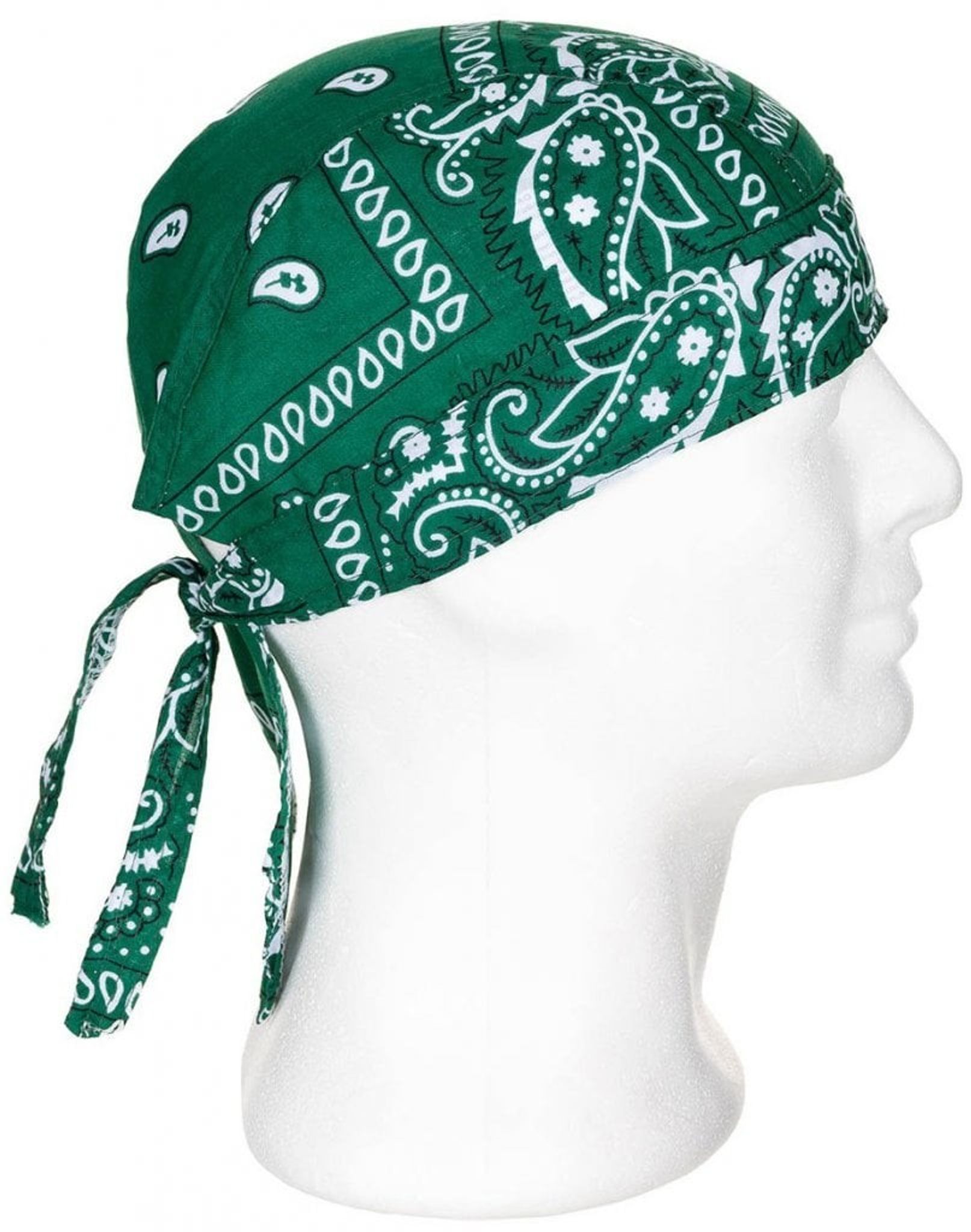 Denna piratmössa, även känd som bandana-headwrap, är designad i universell storlek för att passa de flesta. Med sitt gröna och vita paisley-mönster sticker den verkligen ut och ger en snygg touch till din outfit.