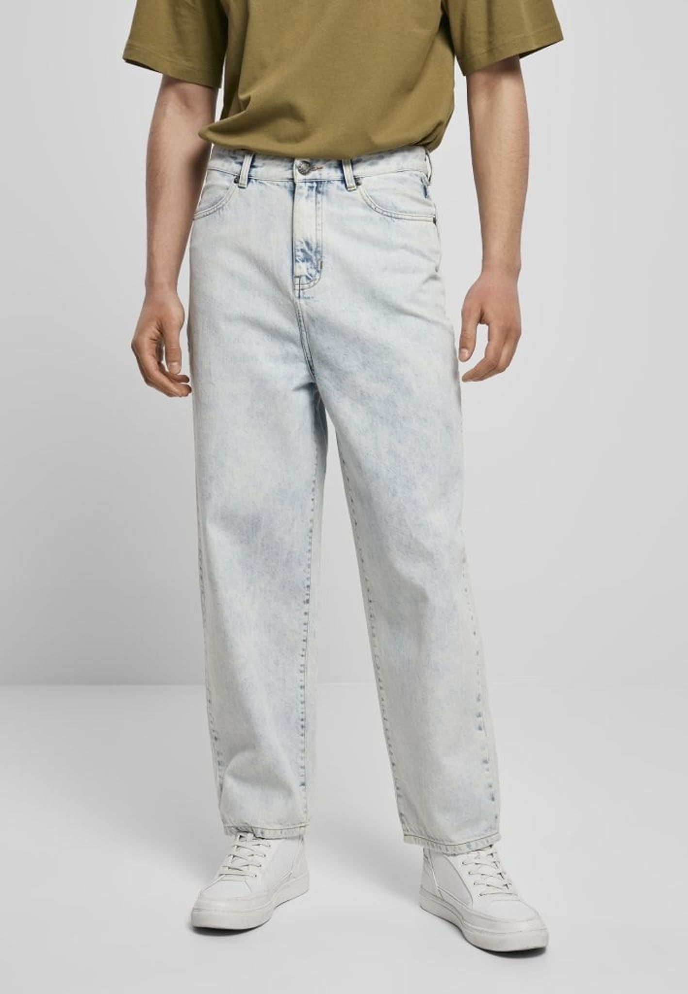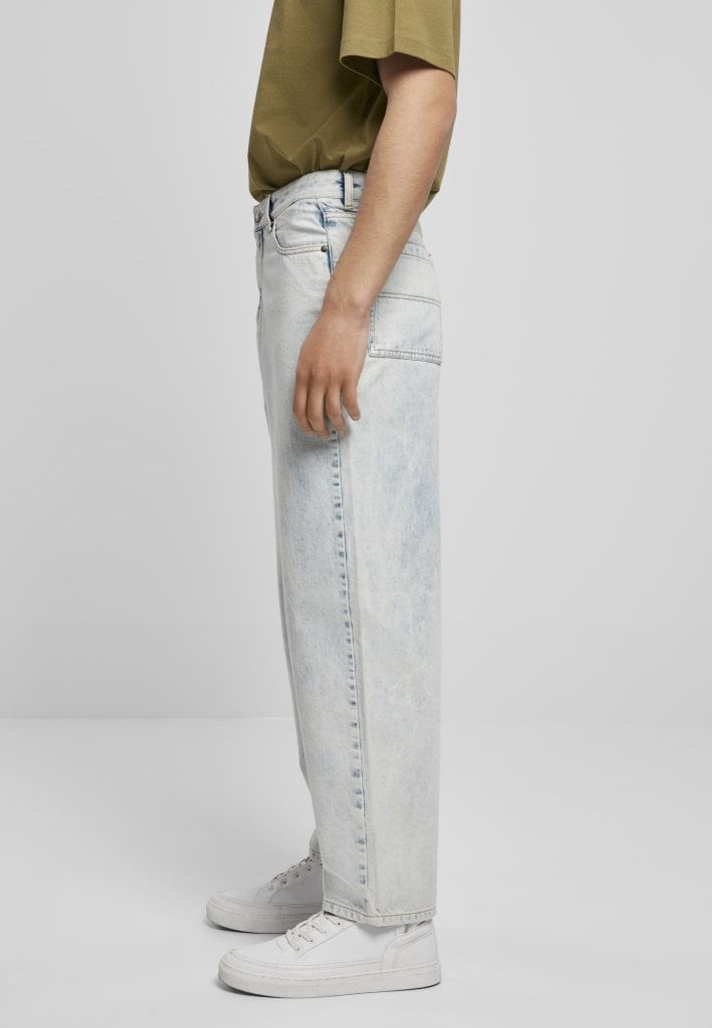 Ett par vida raka jeans i oversize modell och tvättat tyg.