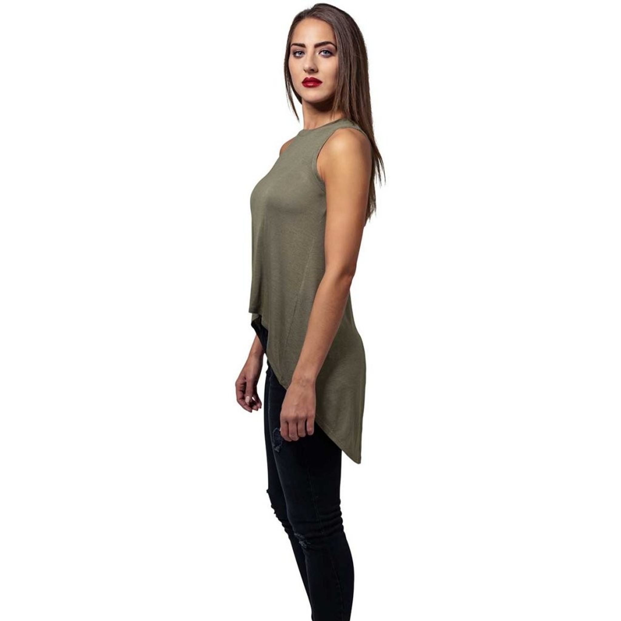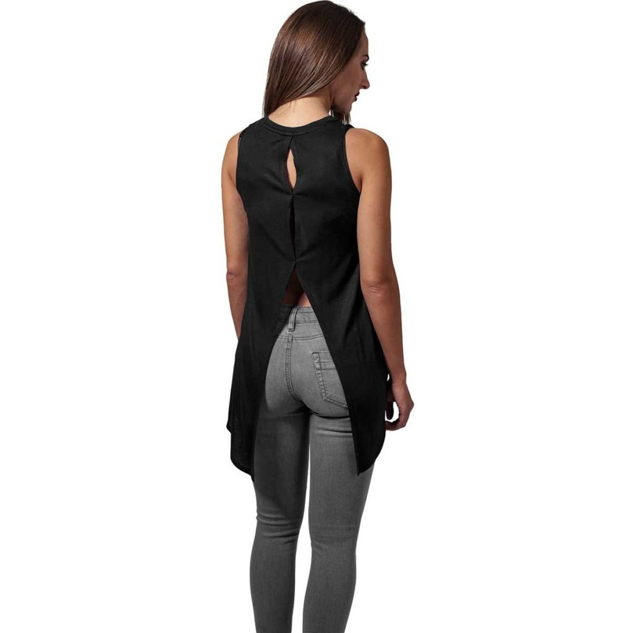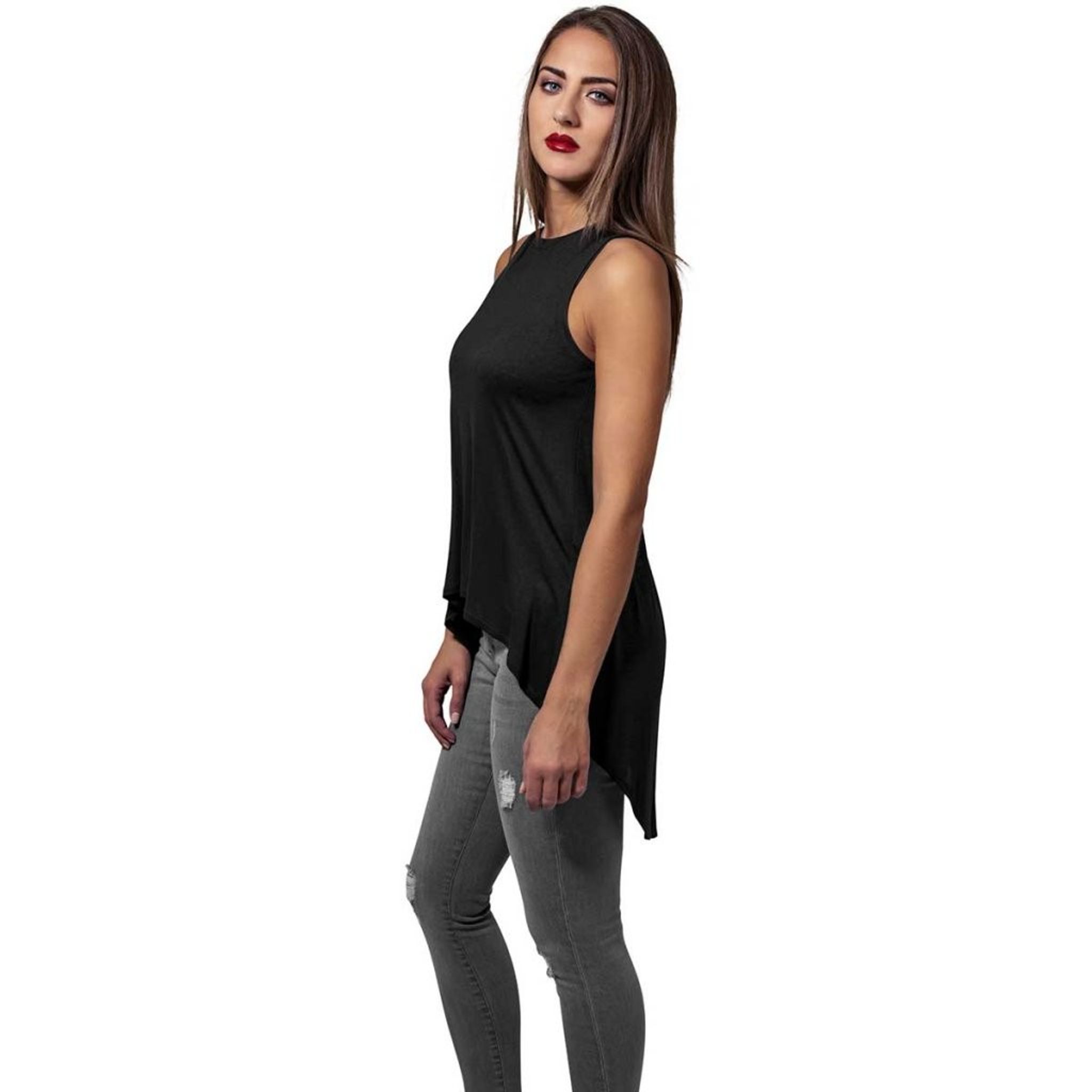 Denna topp har rund öppning vid halsen och framsidans nederkant går upp medans baksidan går ner över rumpan.
