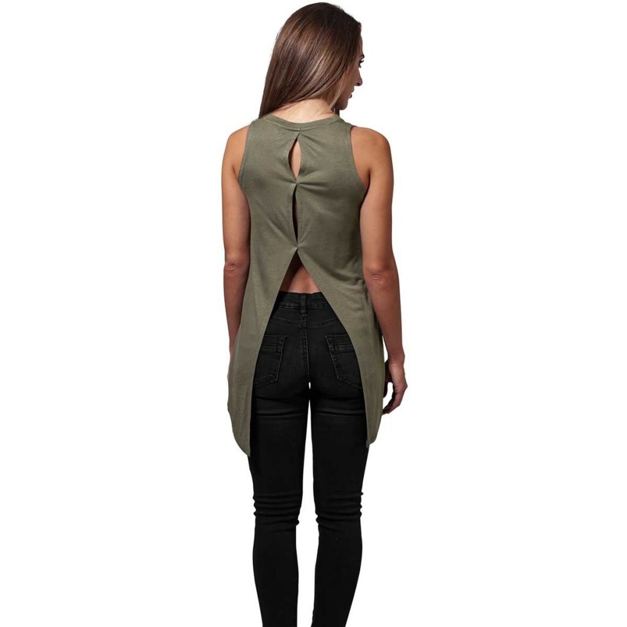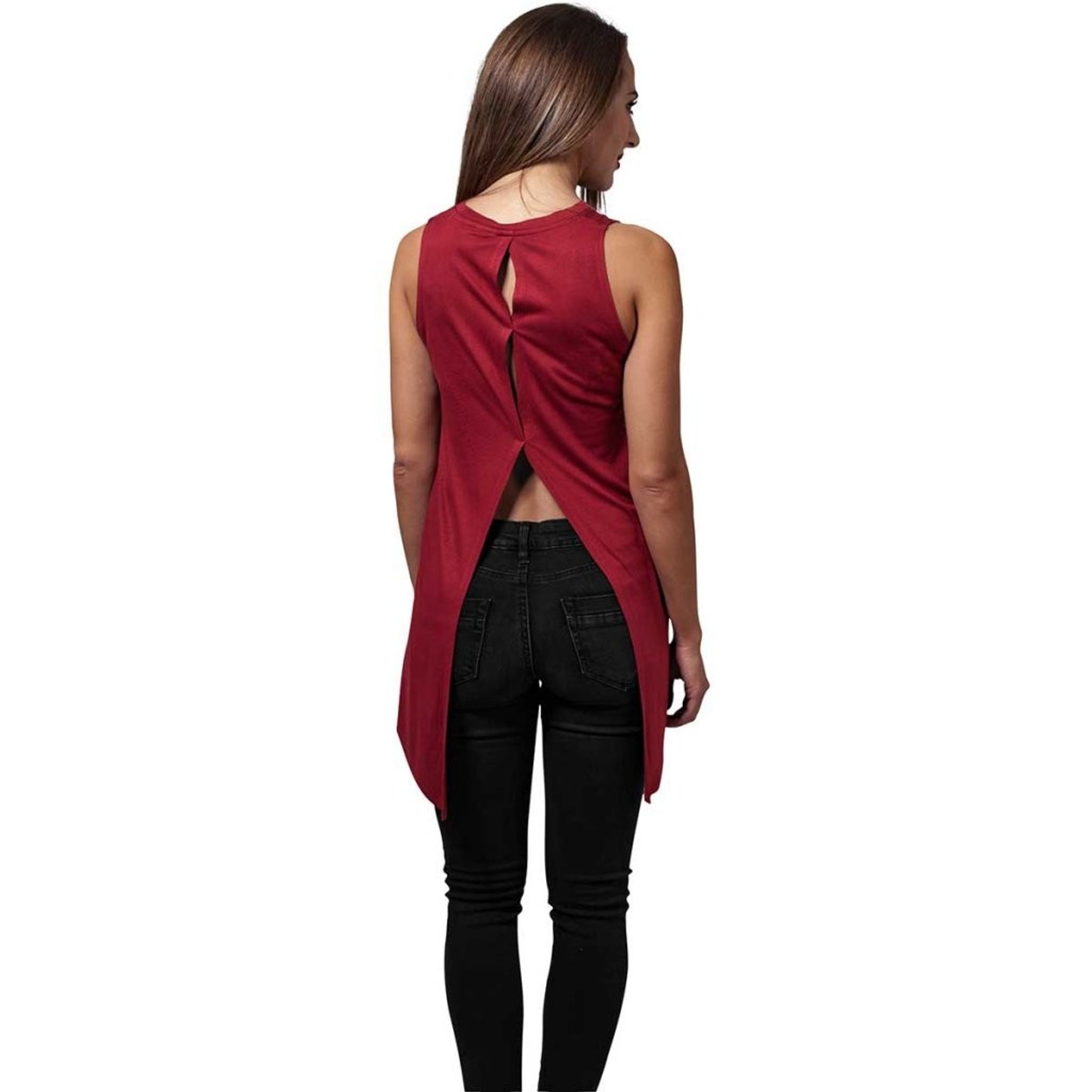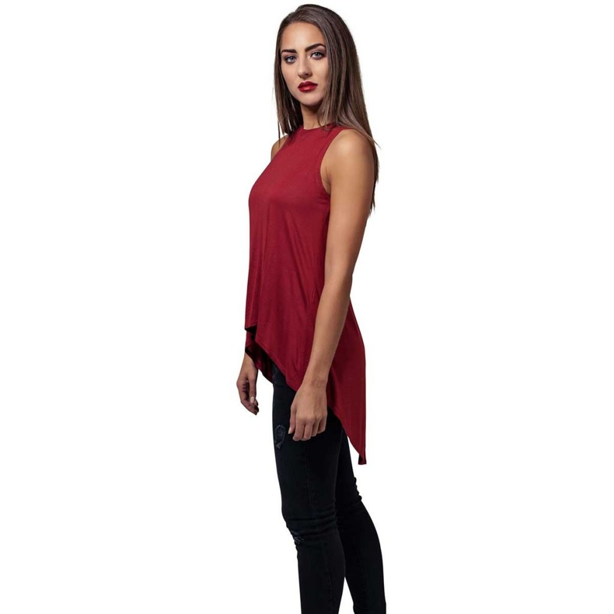 Denna topp har rund öppning vid halsen och framsidans nederkant går upp medans baksidan går ner över rumpan.