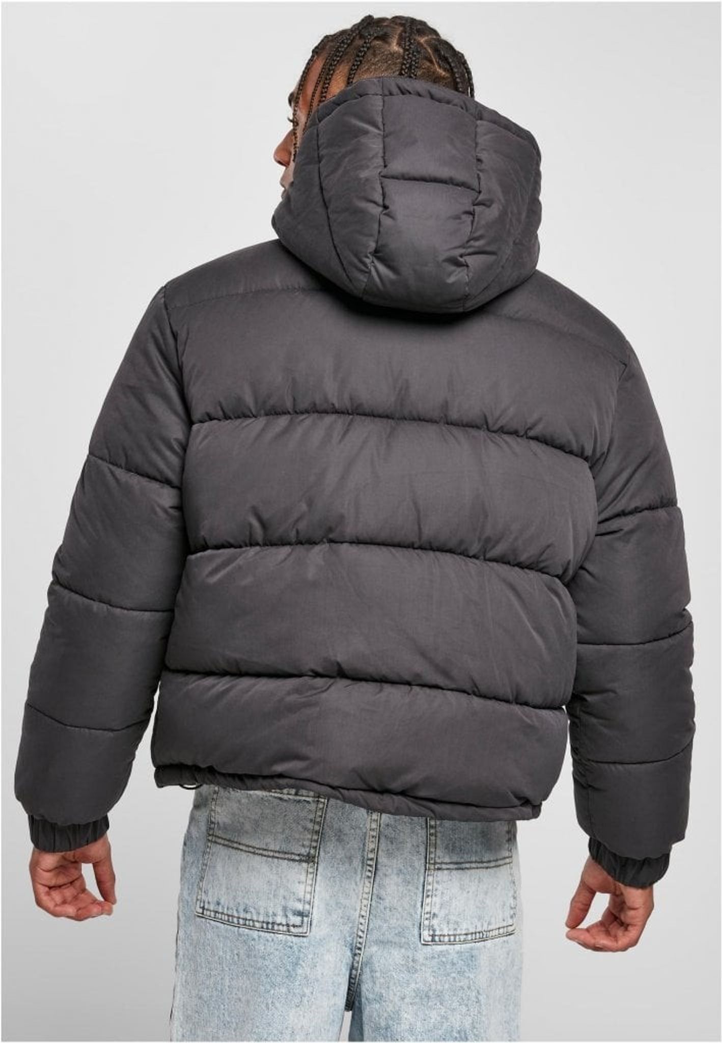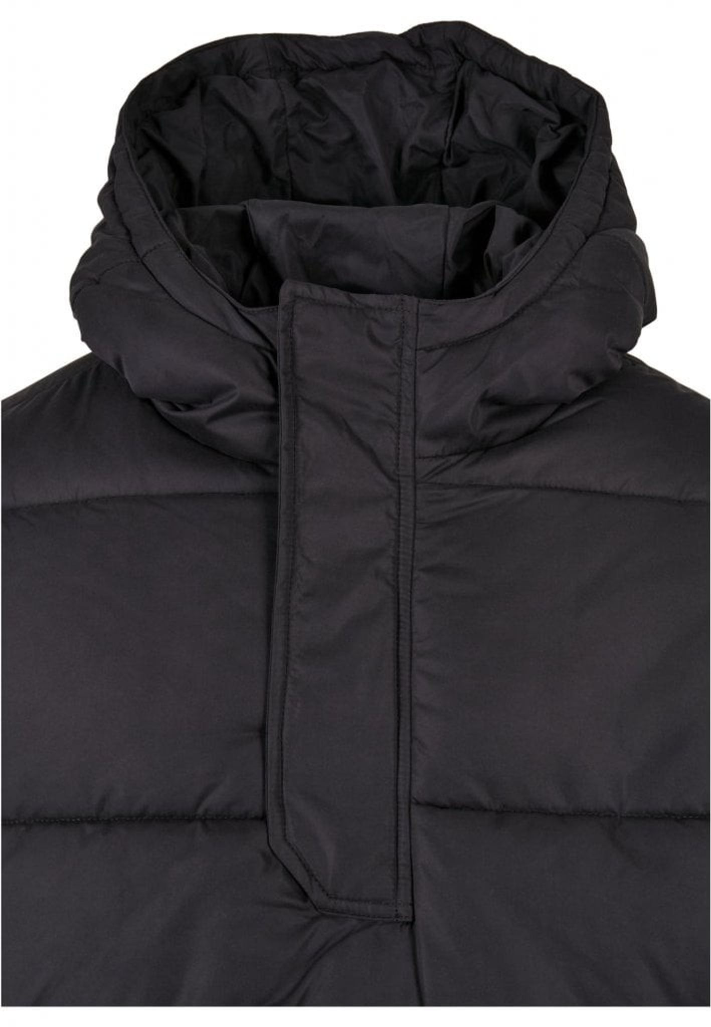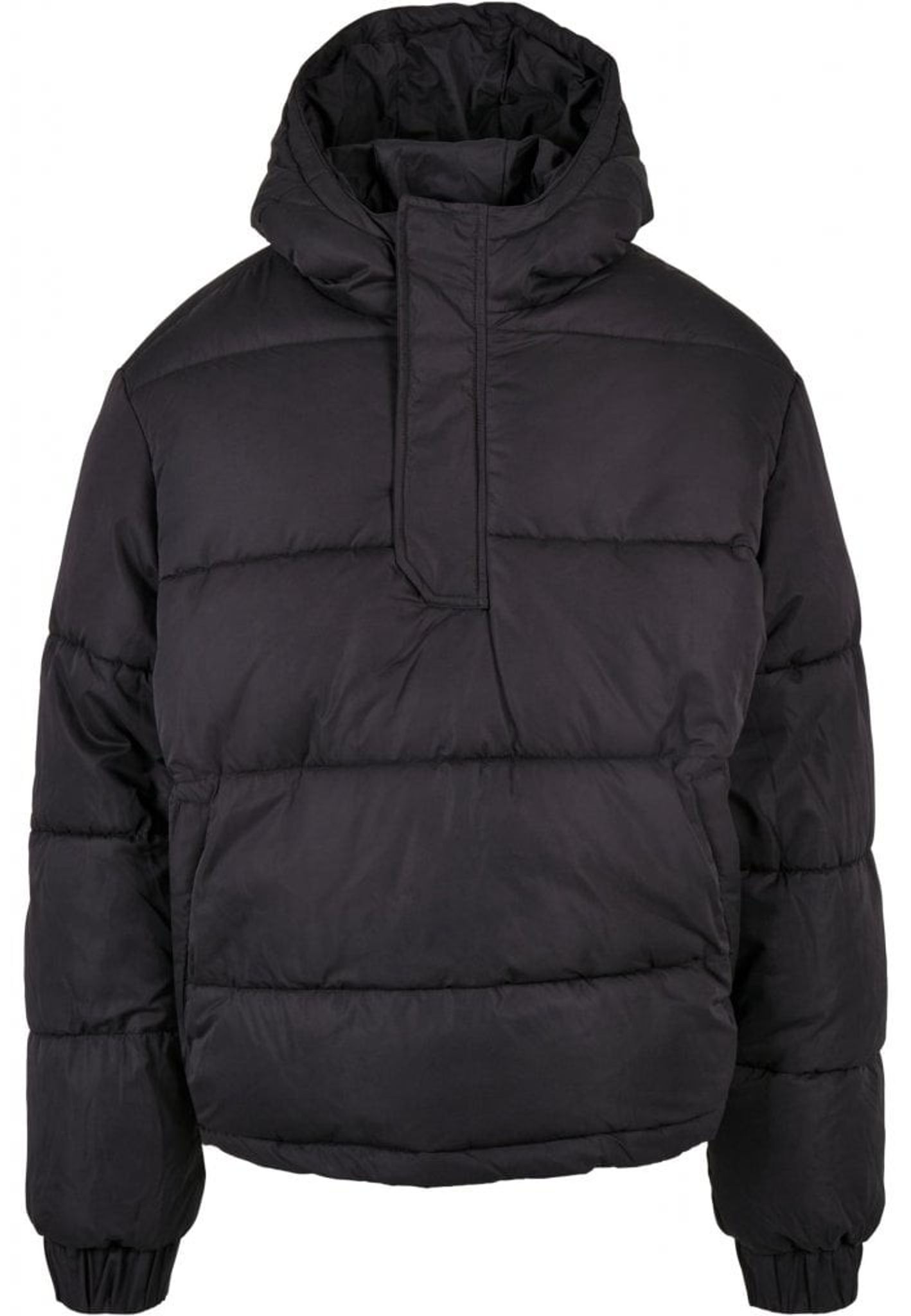 En puffjacka med tjock stoppning i fodret. Jackan är i en kort pullover-modell och har huva.