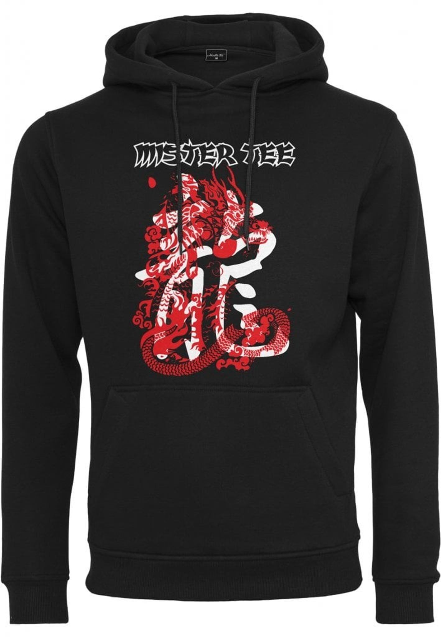 - Mönster: text Mister Tee och en drake i vitt och rött