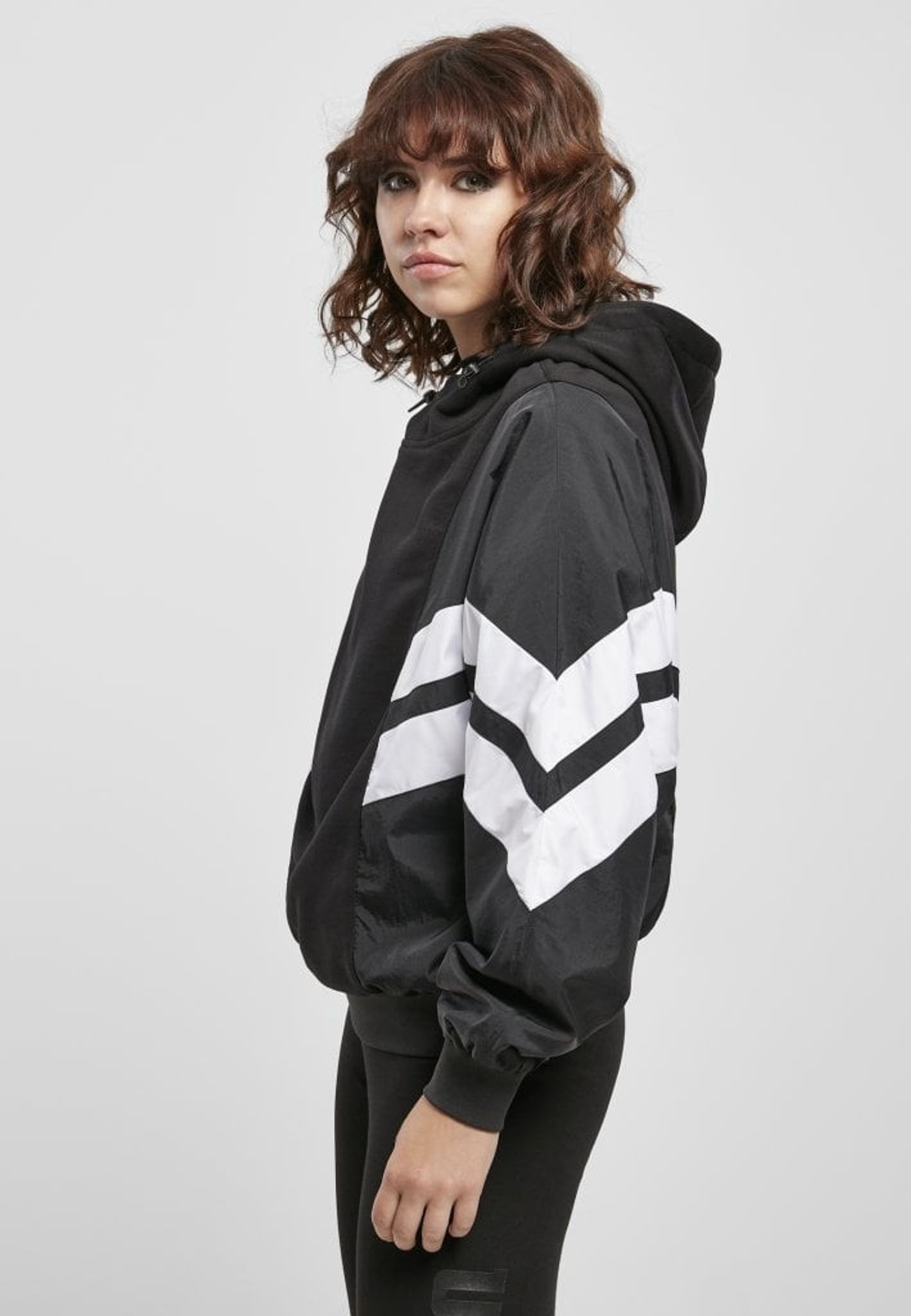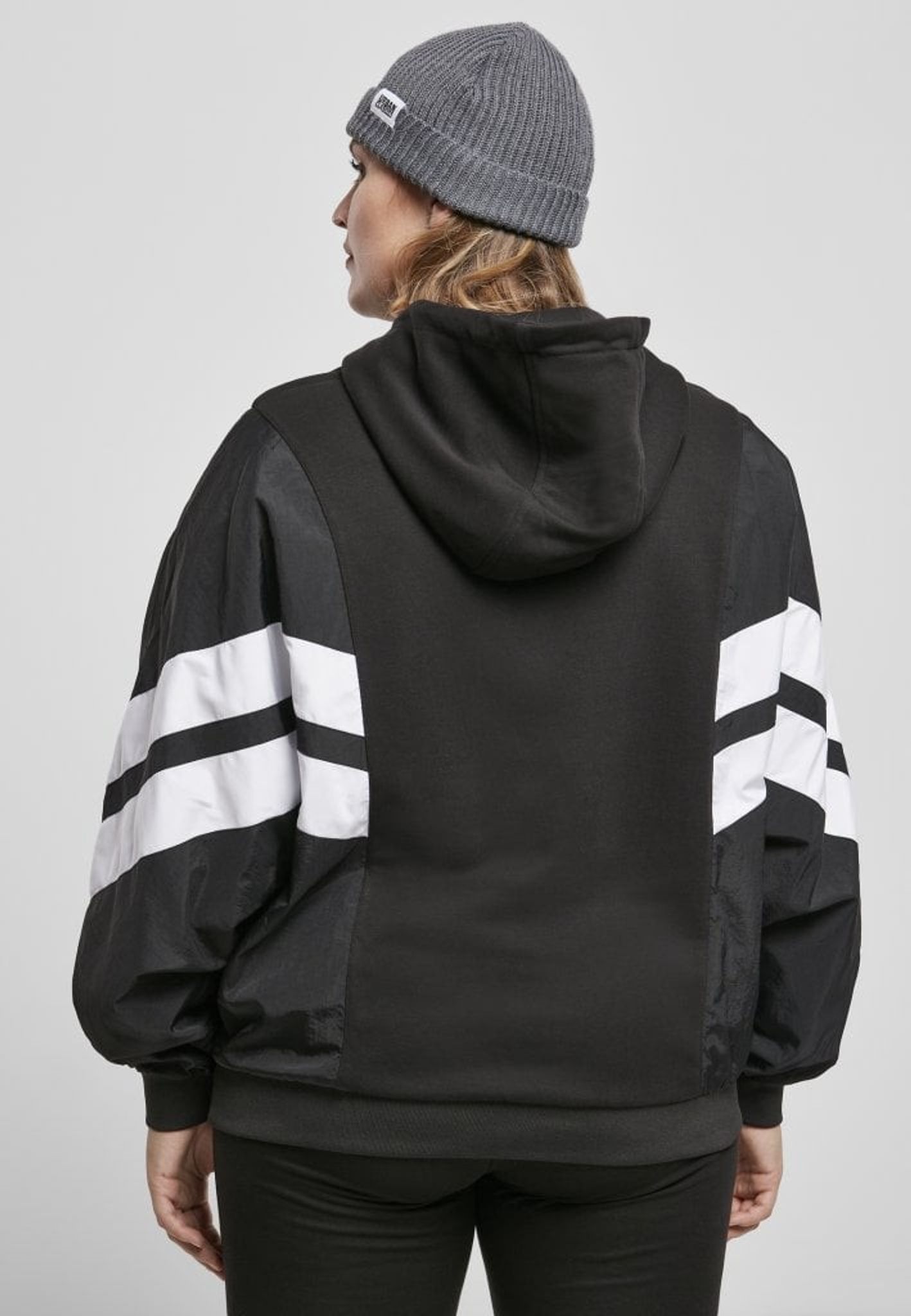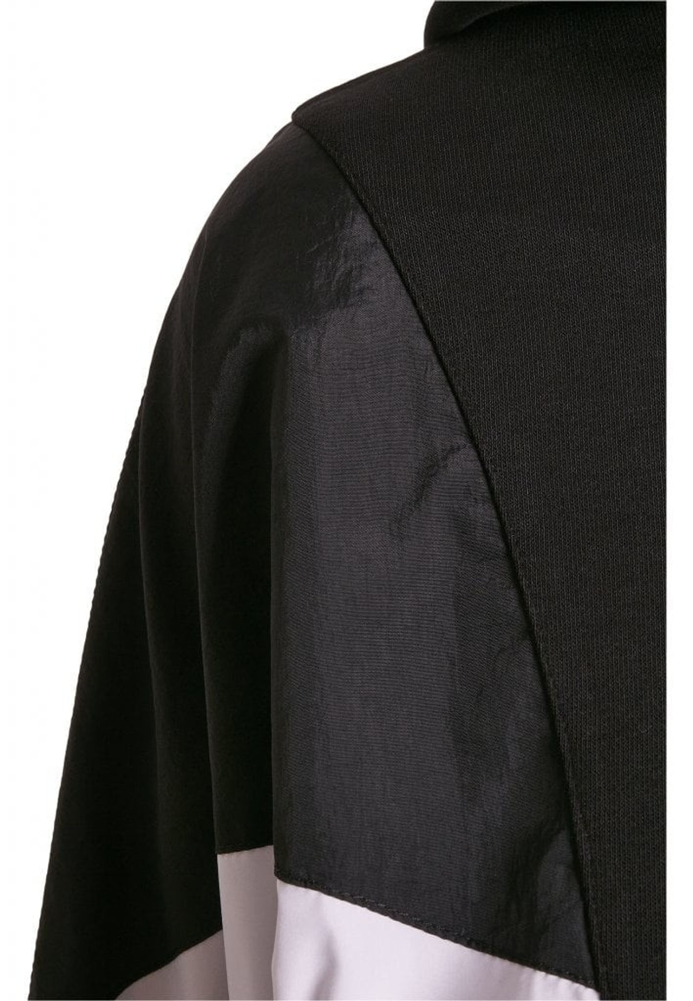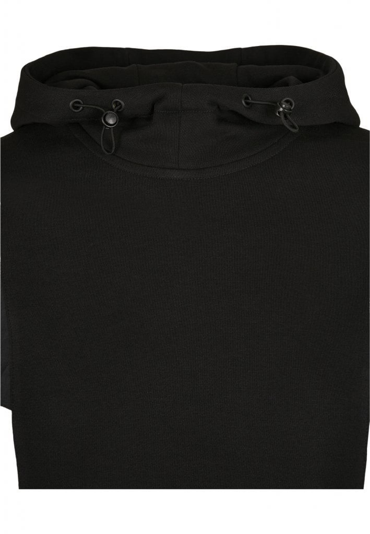 Nederkanten och armsluten har en svart mudd och mittdelen av luvtröjan är i sweatshirttyg.