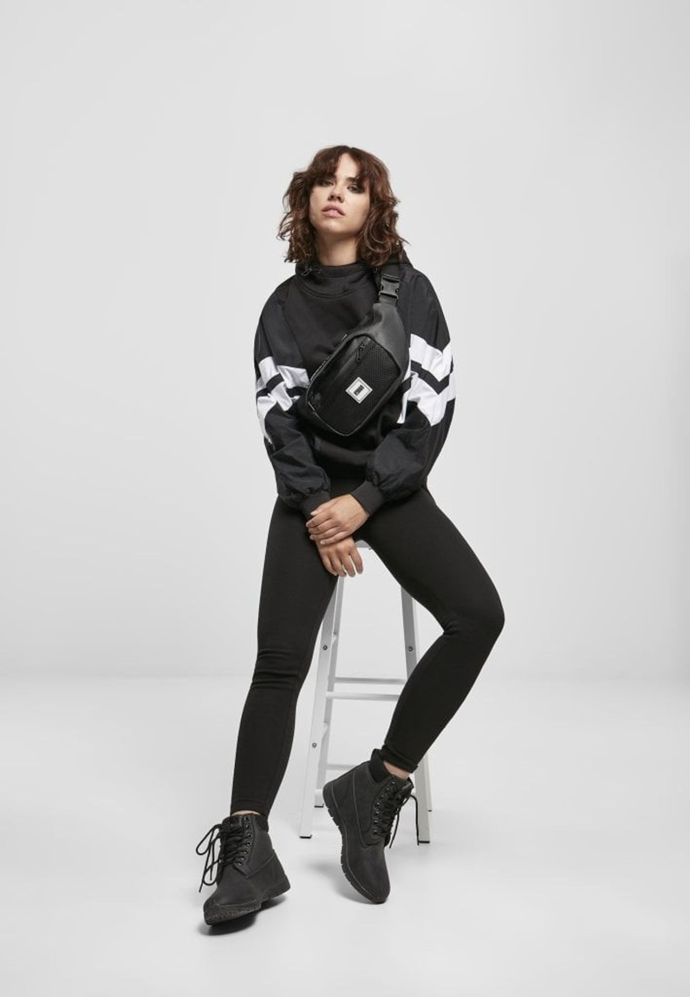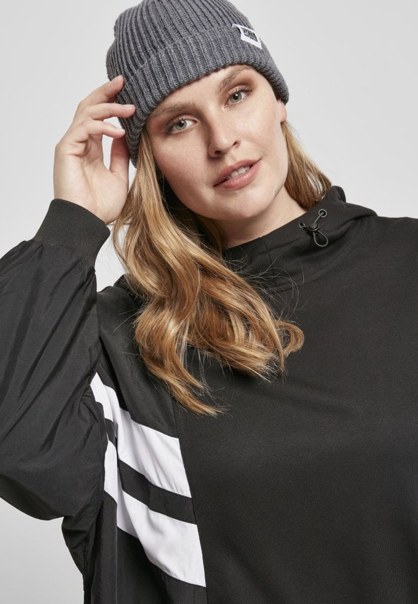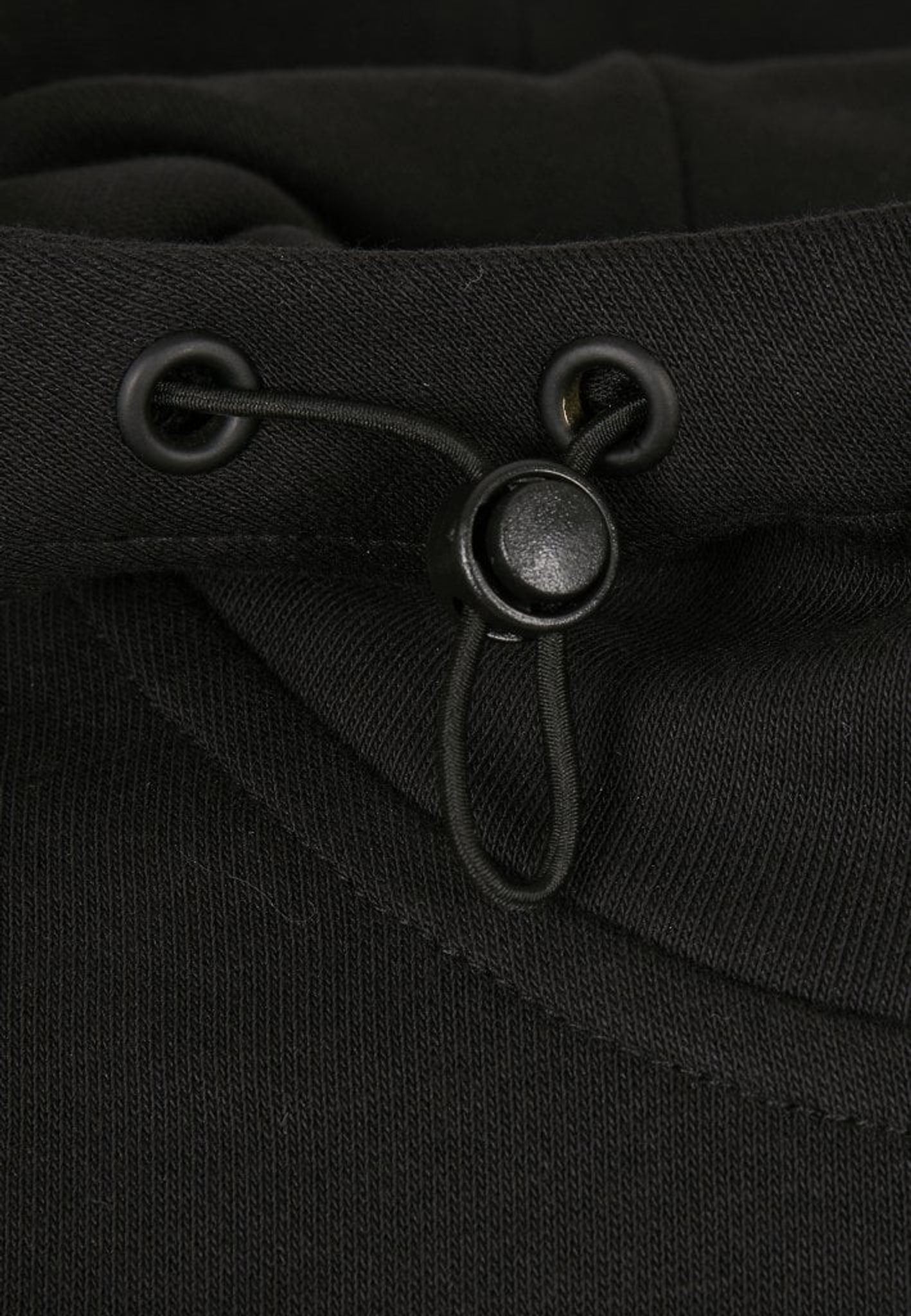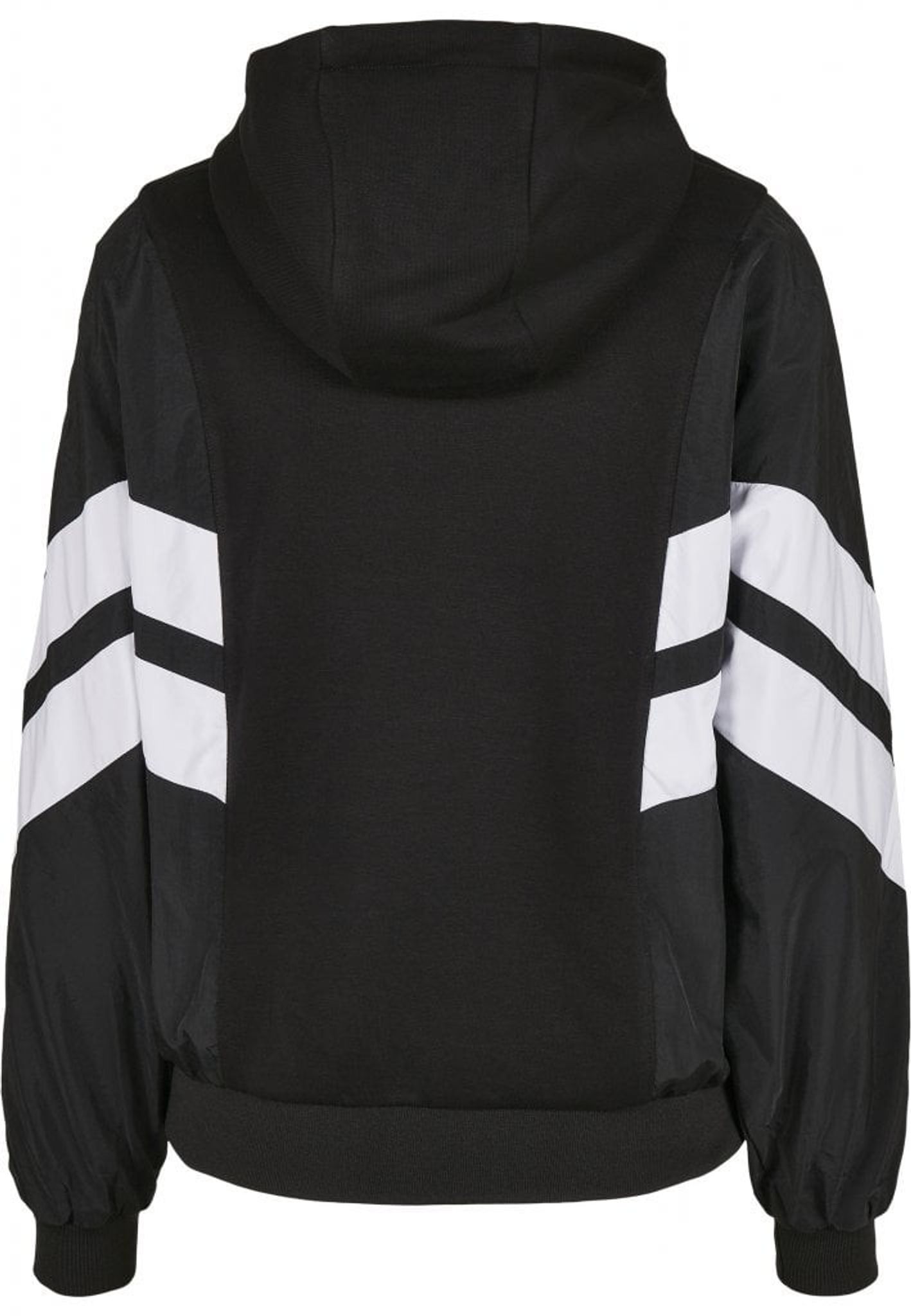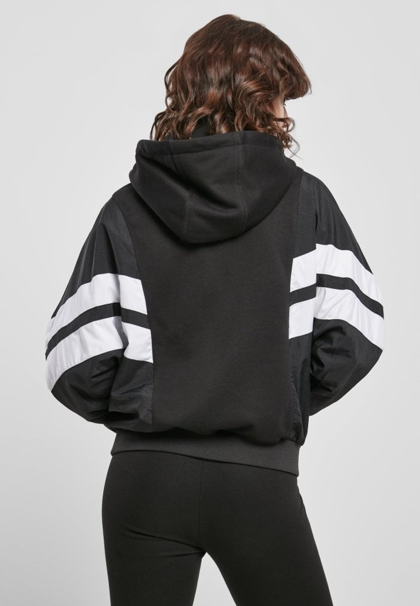 Nederkanten och armsluten har en svart mudd och mittdelen av luvtröjan är i sweatshirttyg.
