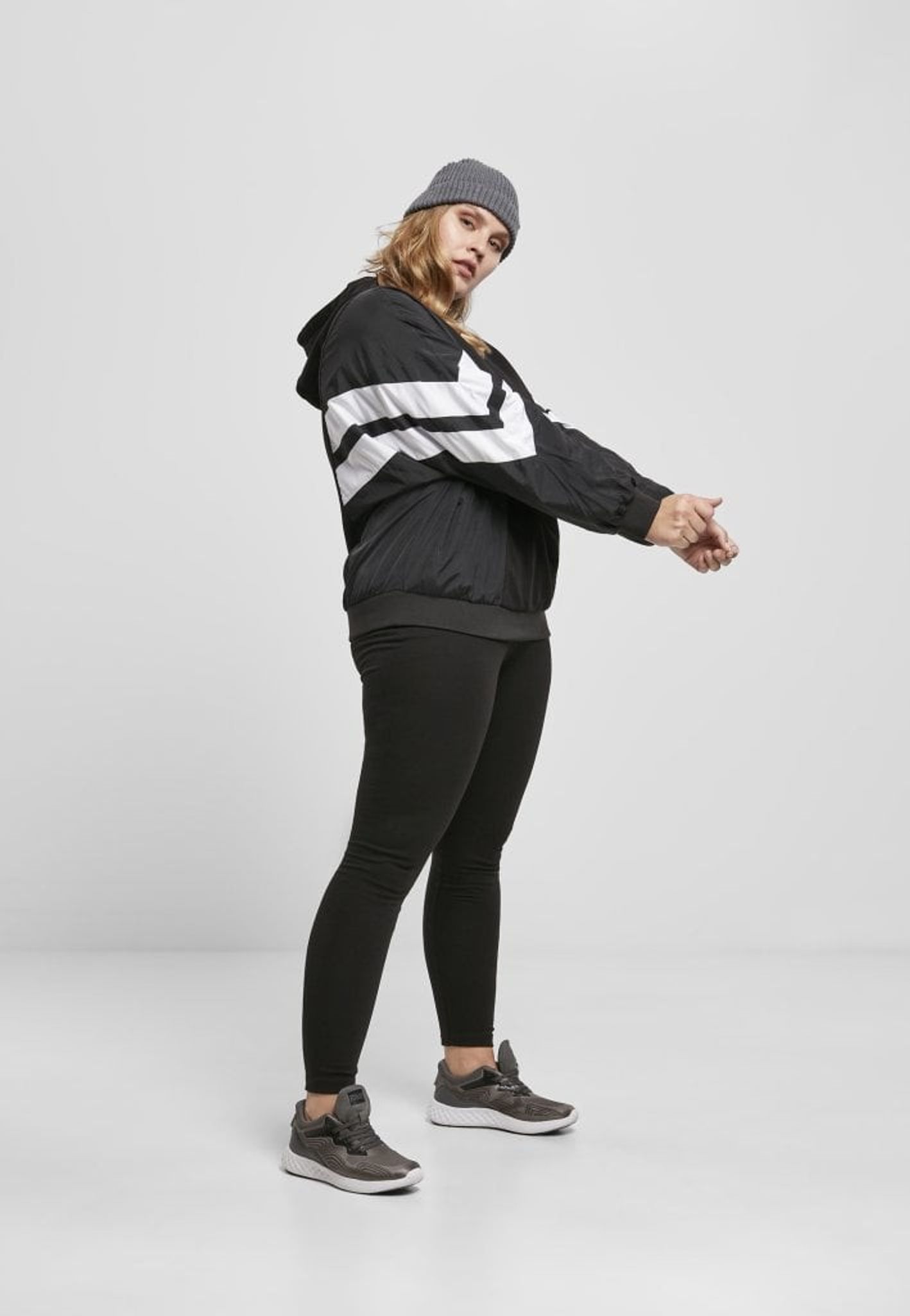 De vita breda ränderna på armarna och på delar av tröjan får luvtröjan att se sportig ut.