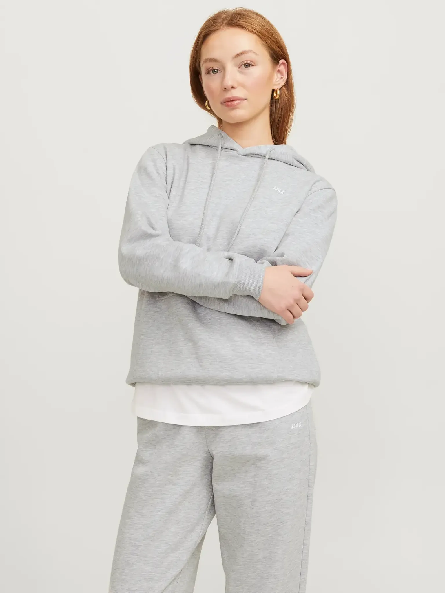 Denna huvtröja för dam är både stilren och komfortabel, i en ljusgrå melange-ton med den tydliga JJXX-logotypen i vitt. Klä dig med en modern touch som passar perfekt till både vardagens åtaganden och avslappnade fritidsaktiviteter.