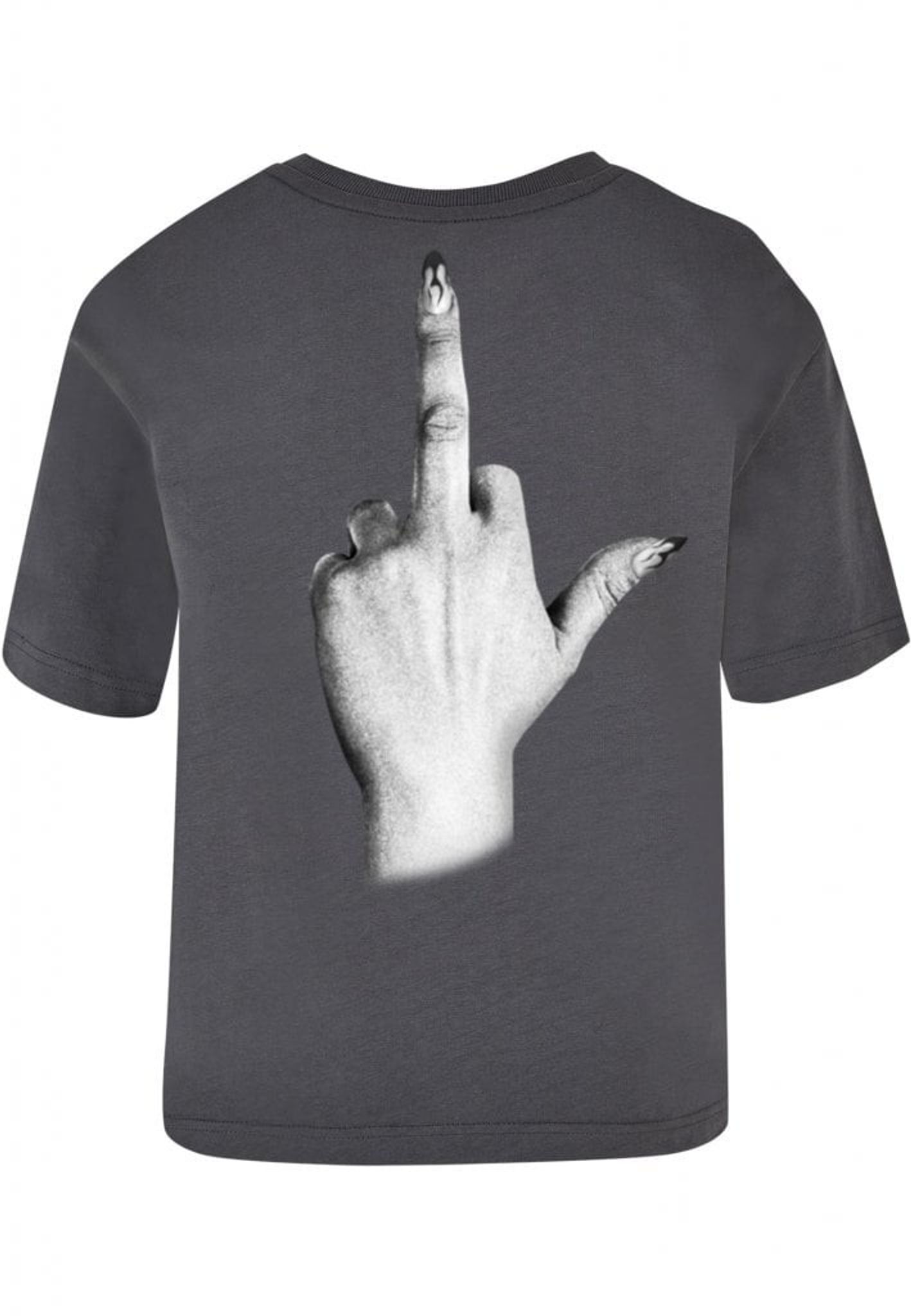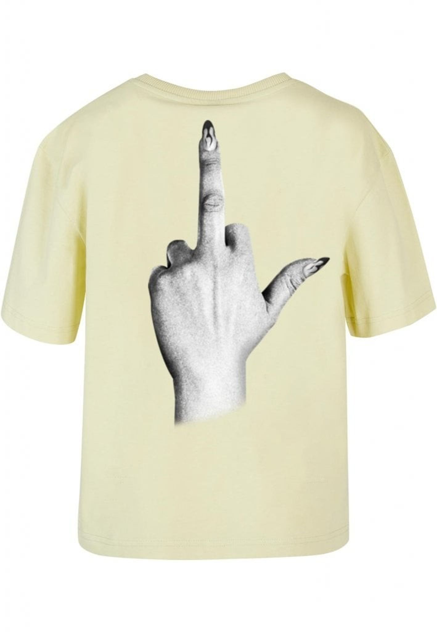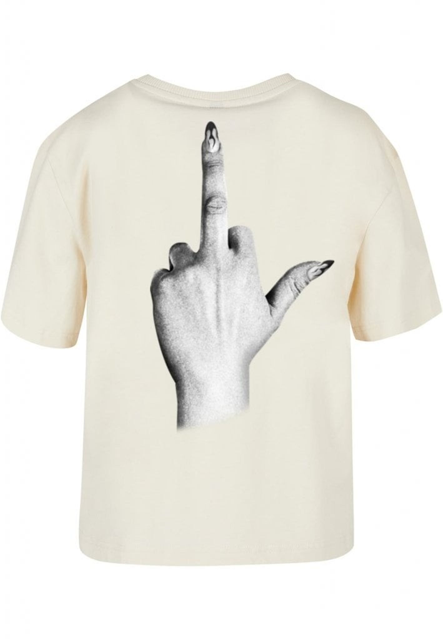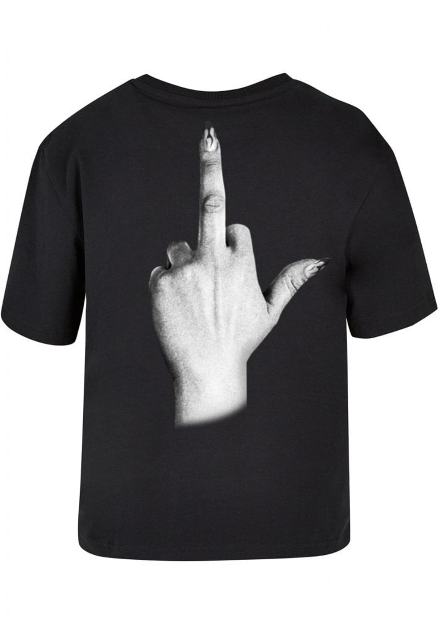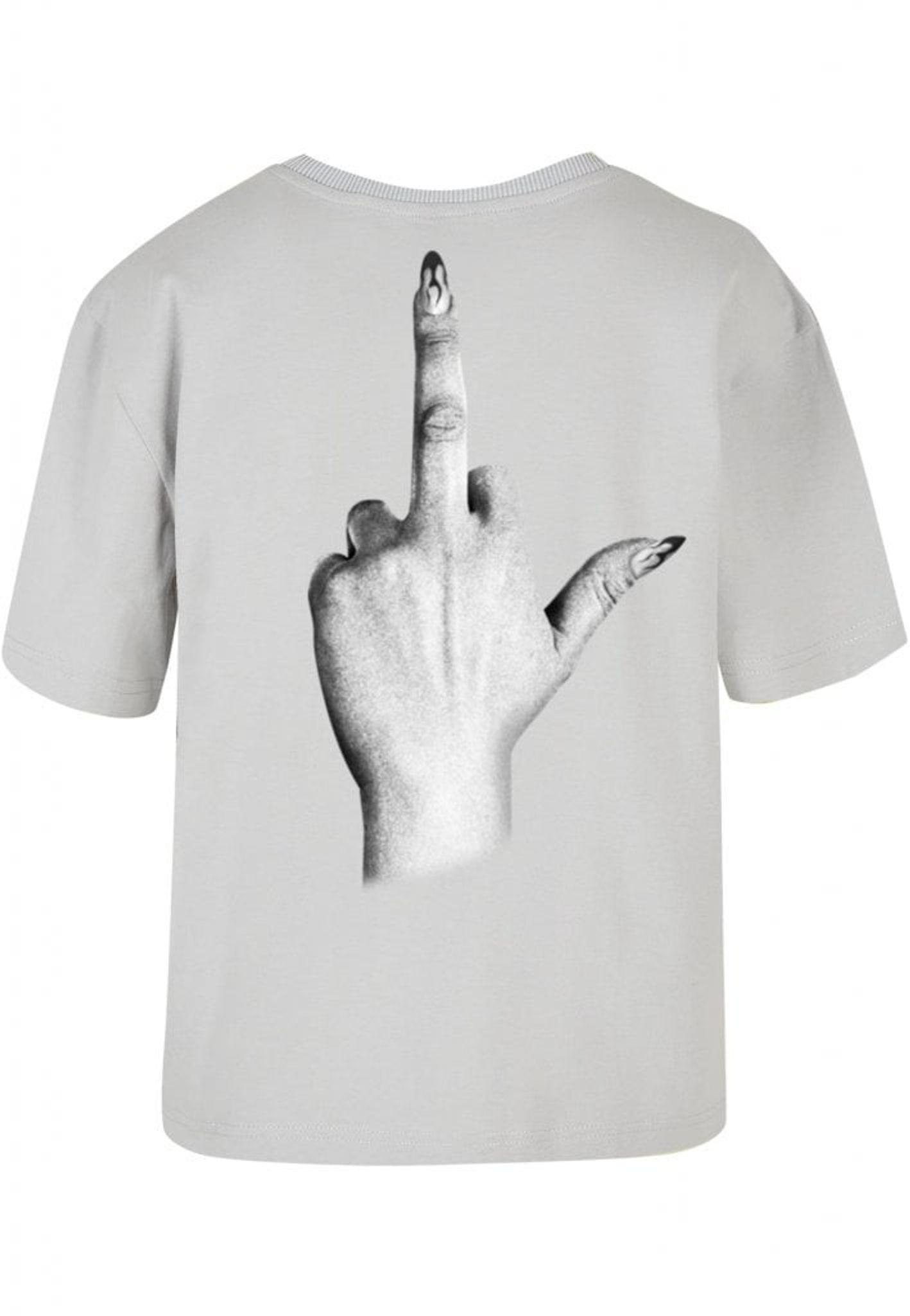 Denna t-shirt är perfekt för dig som inte bryr dig om vad andra tycker! Framsidan pryds av texten "I don't give a", medan baksidan visar en illustration av en hand som gör ett "fuck you"-tecken. Handen är elegant med långa, välmanikyrerade naglar som ger en extra touch av attityd.