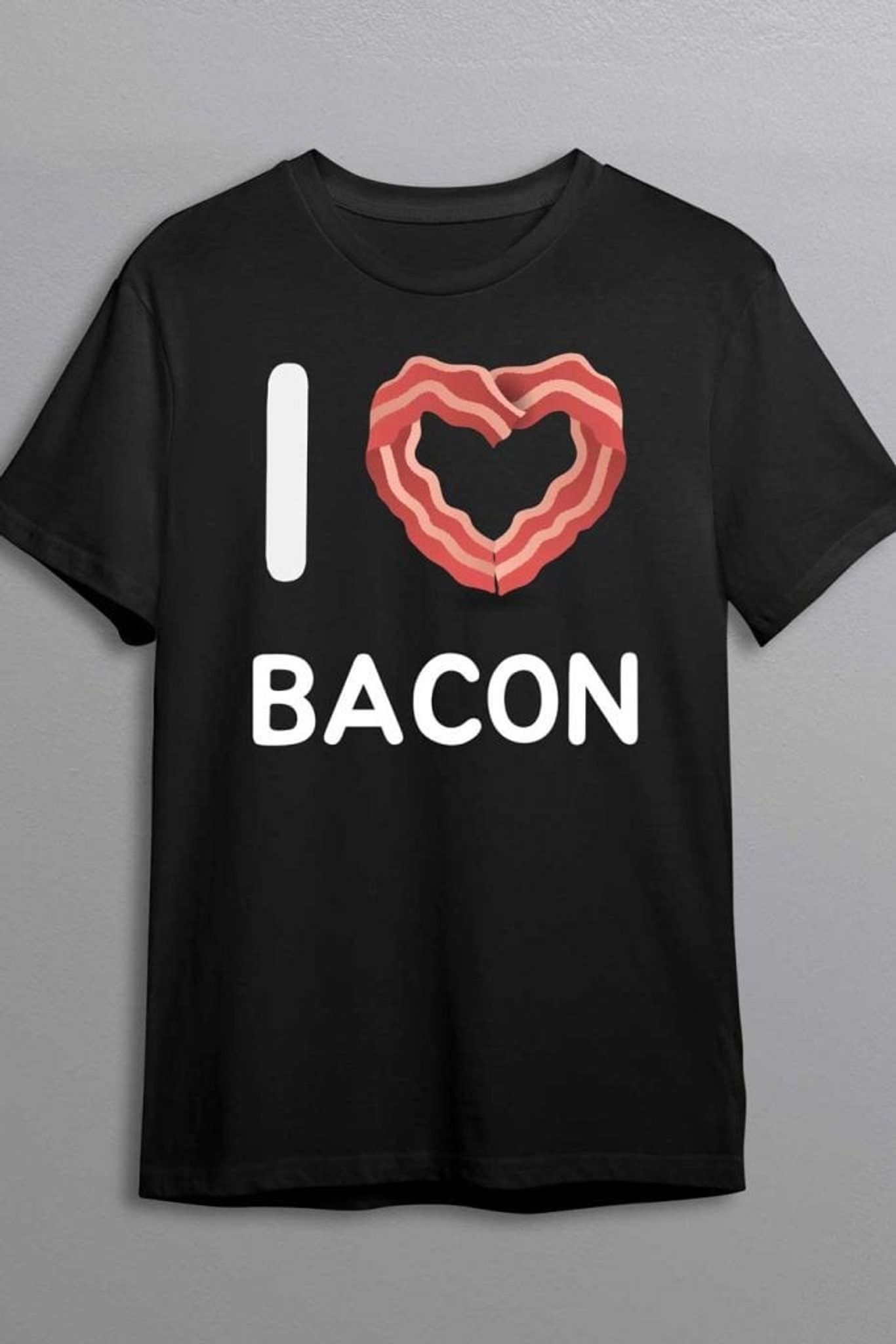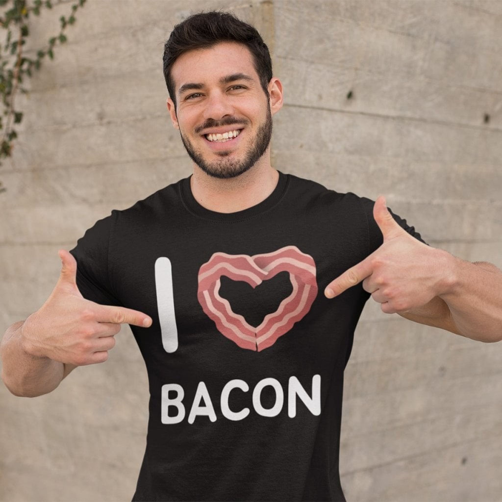 Bekänn din kärlek till frukostens osungna hjälte med denna svarta T-shirt som proklamerar "I ♥ BACON". Det är en T-shirt som talar till hjärtat (och magen) av alla baconentusiaster där ute. En rolig och stilren hyllning till den krispiga delikatessen som gör varje måltid bättre.