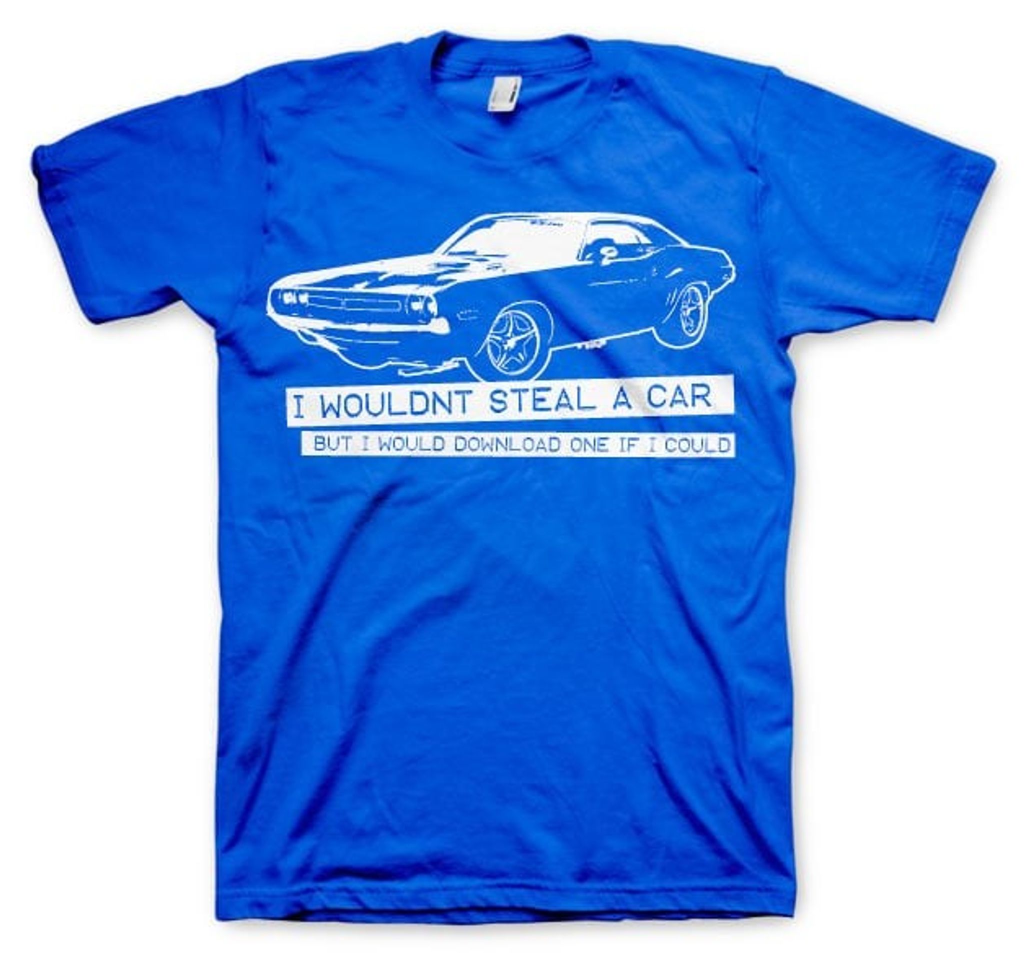 Har du också någonsin funderat över varför vissa människor anser det okej att stjäla andras egendom, medan de samtidigt aldrig skulle komma på tanken att stjäla en bil? Det är precis den tankegången som ligger bakom vår ”I Wouldnt Steal A Car”-t-shirt.