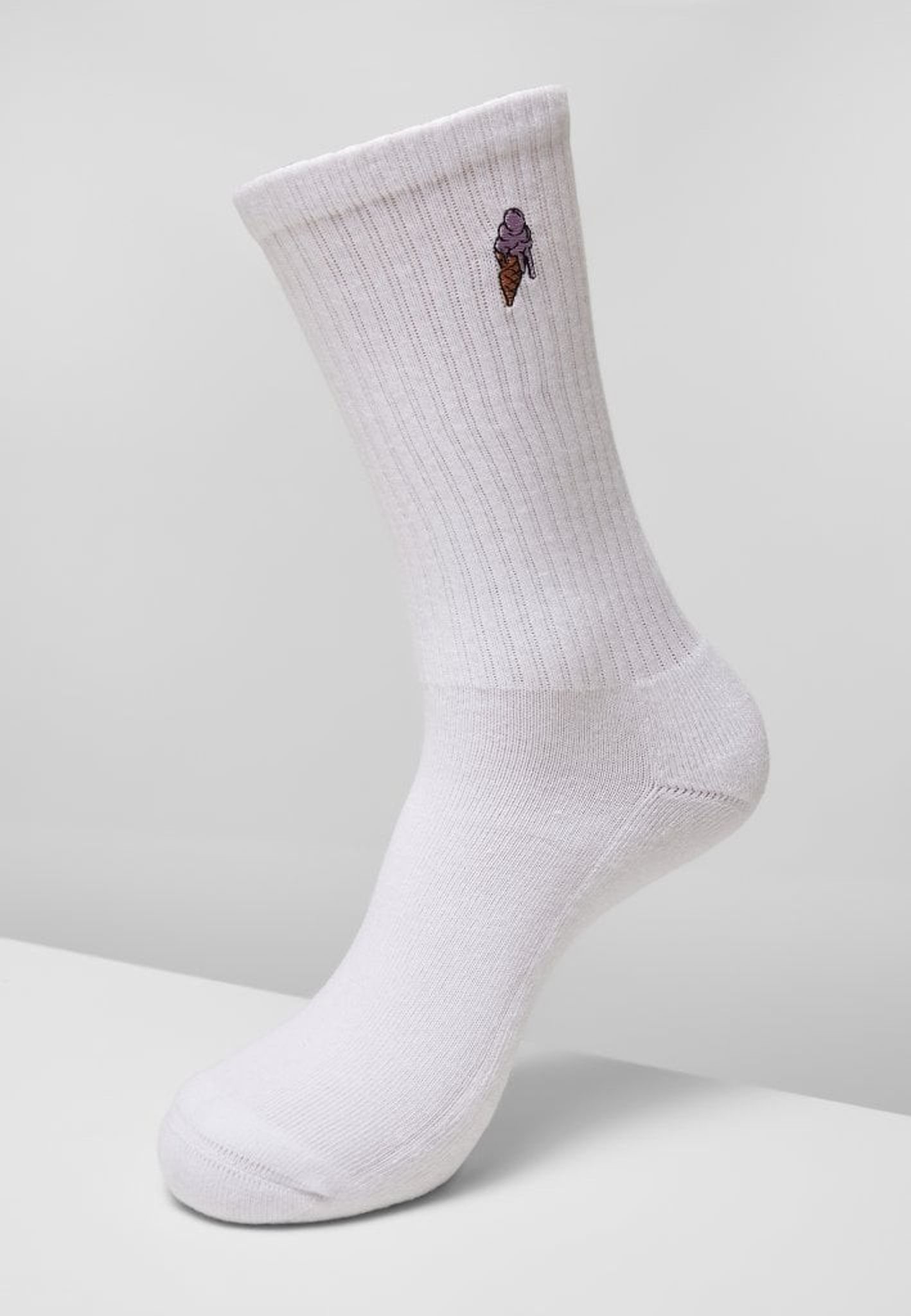 Strumporna har små broderade glassar på skaften och kommer i tre olika färgdesigner tillverkade av bomull, polyester och elastan.