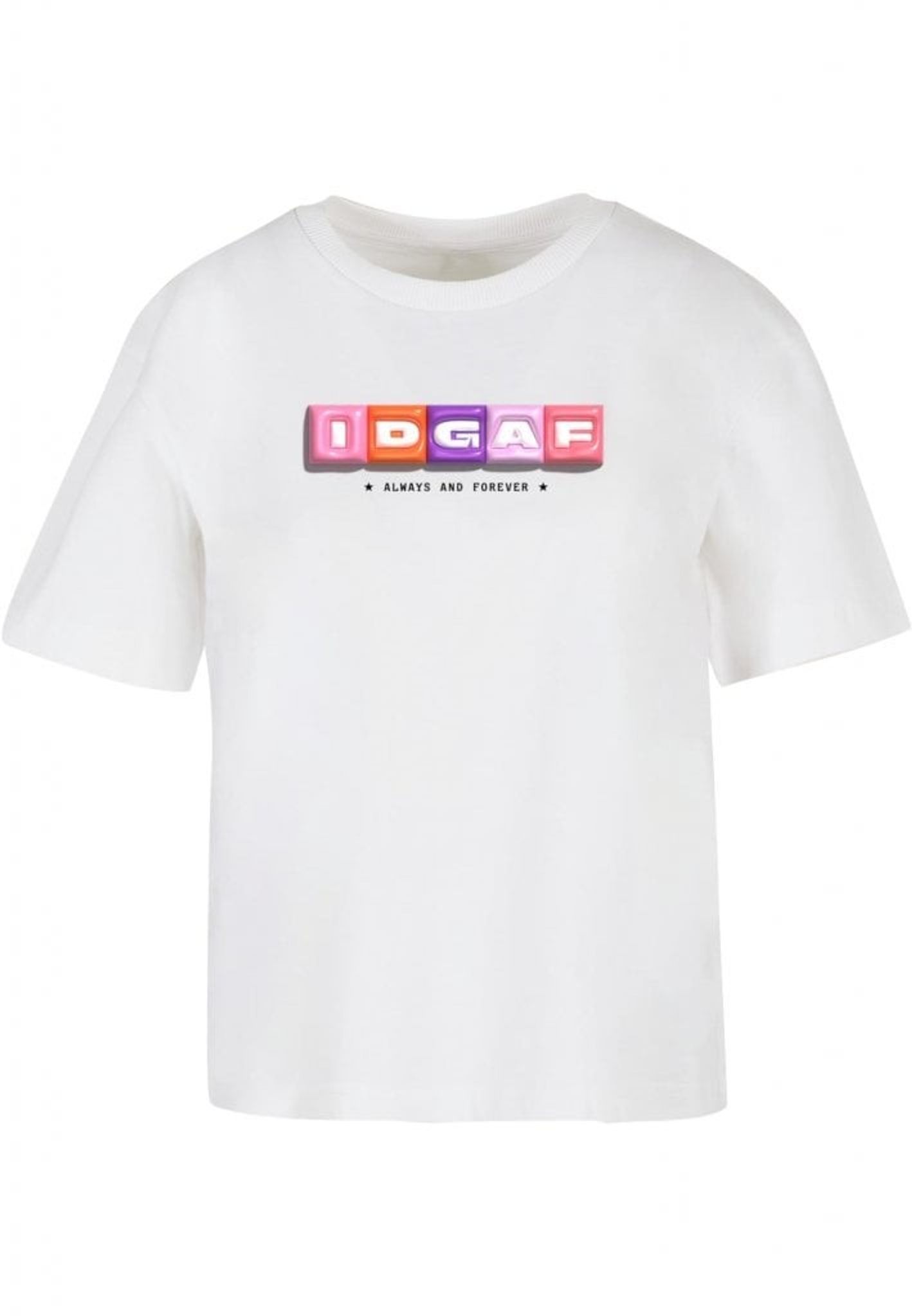 Plagget med motivet visar texten "IDGAF" i blockbokstäver i olika färger, vilket tydligt signalerar att bäraren inte bryr sig om vad andra tycker. En perfekt statement-piece för den självsäkra och oberörda kvinnan!