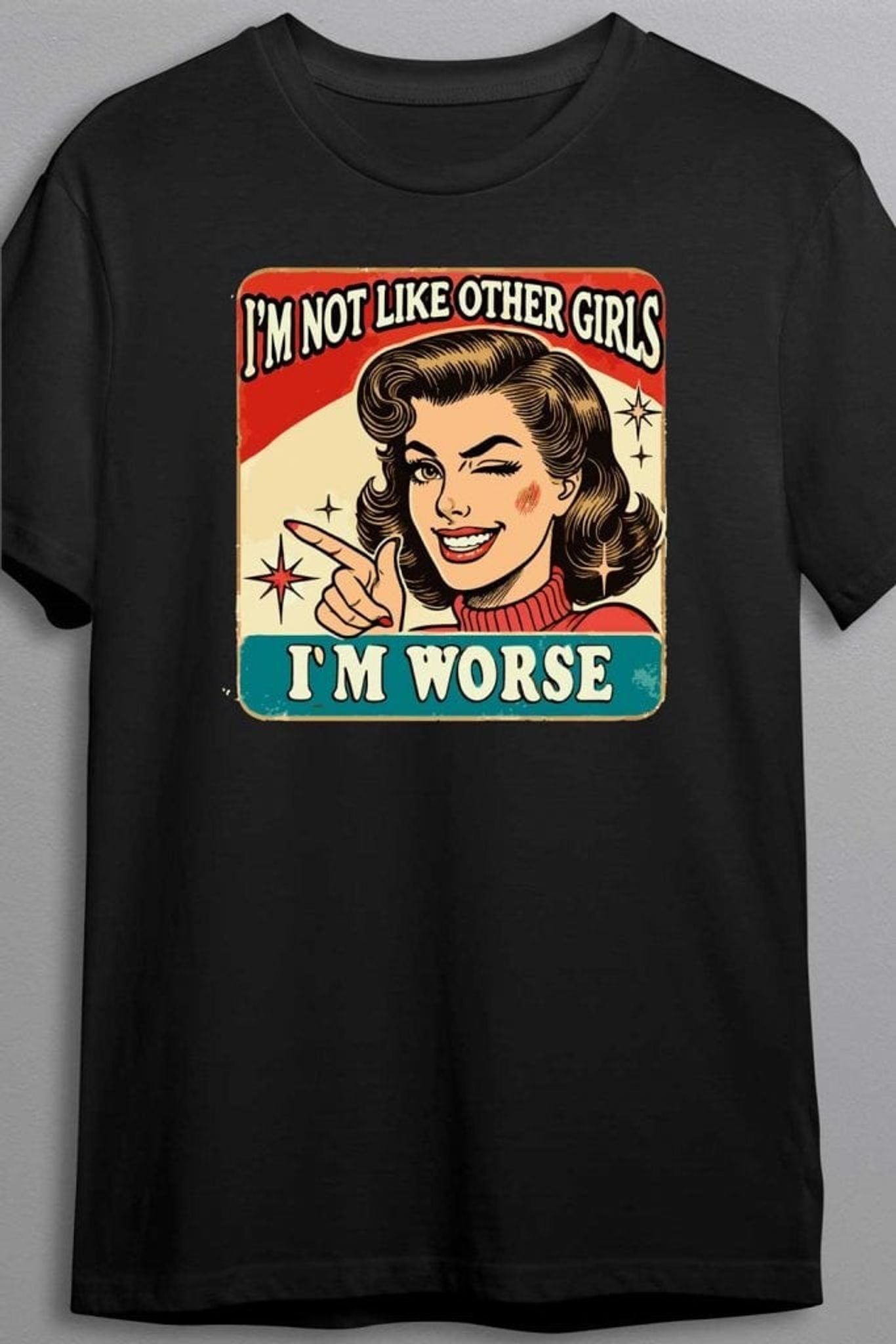 Med det sarkastiska och självsäkra budskapet "I'm Not Like Other Girls, I'm Worse" och en retroinspirerad design, är det här plagget som kombinerar humor med en rejäl dos attityd.