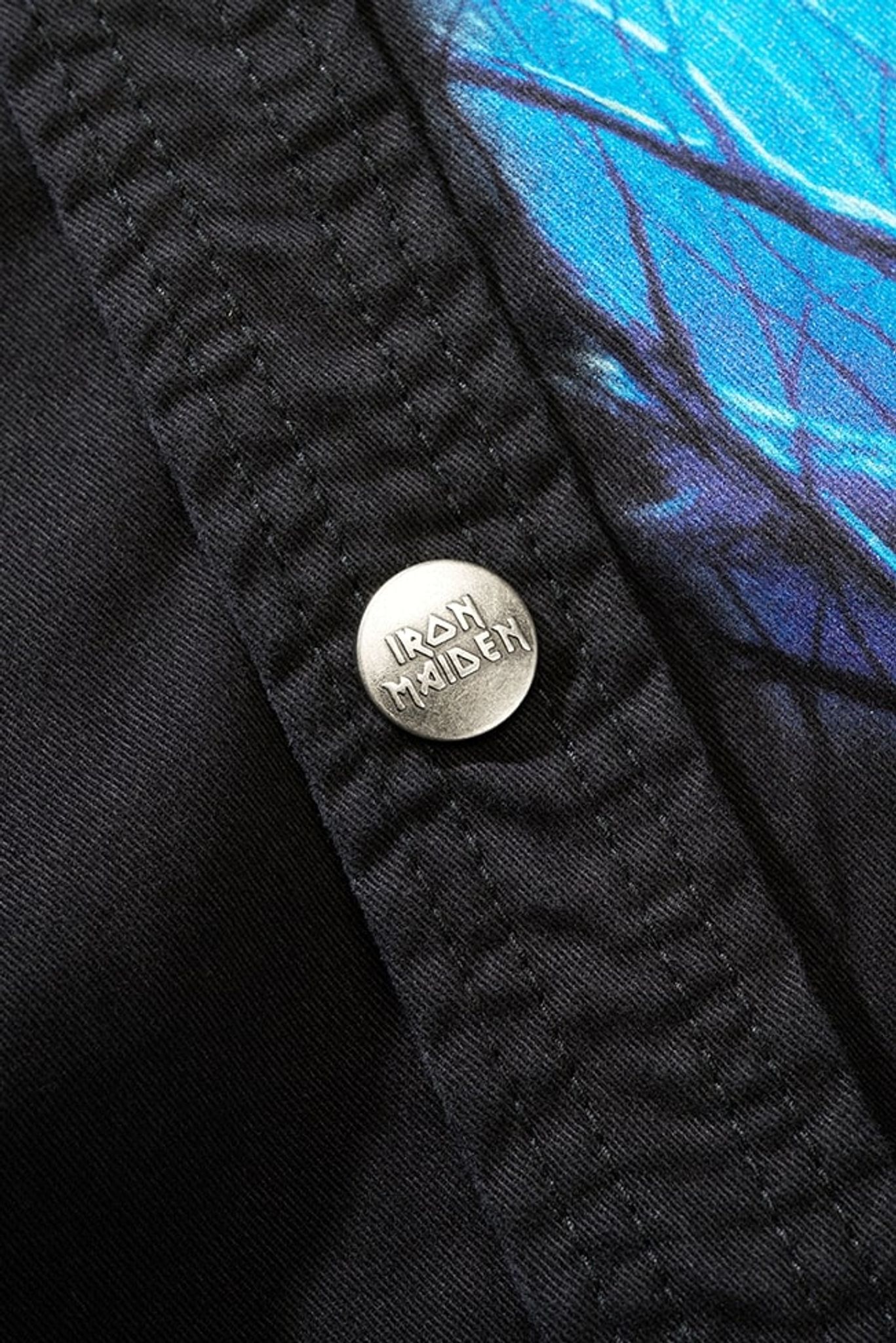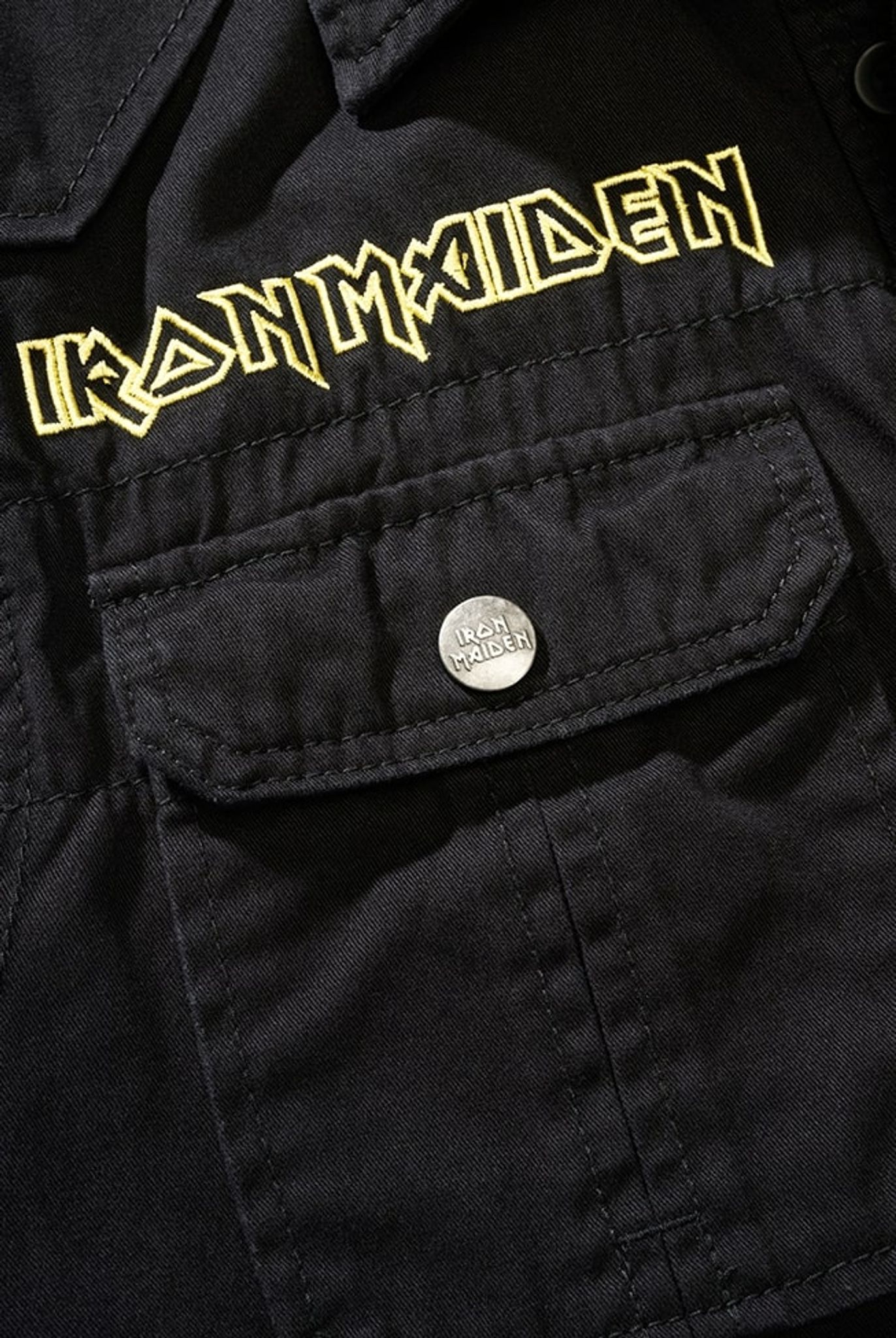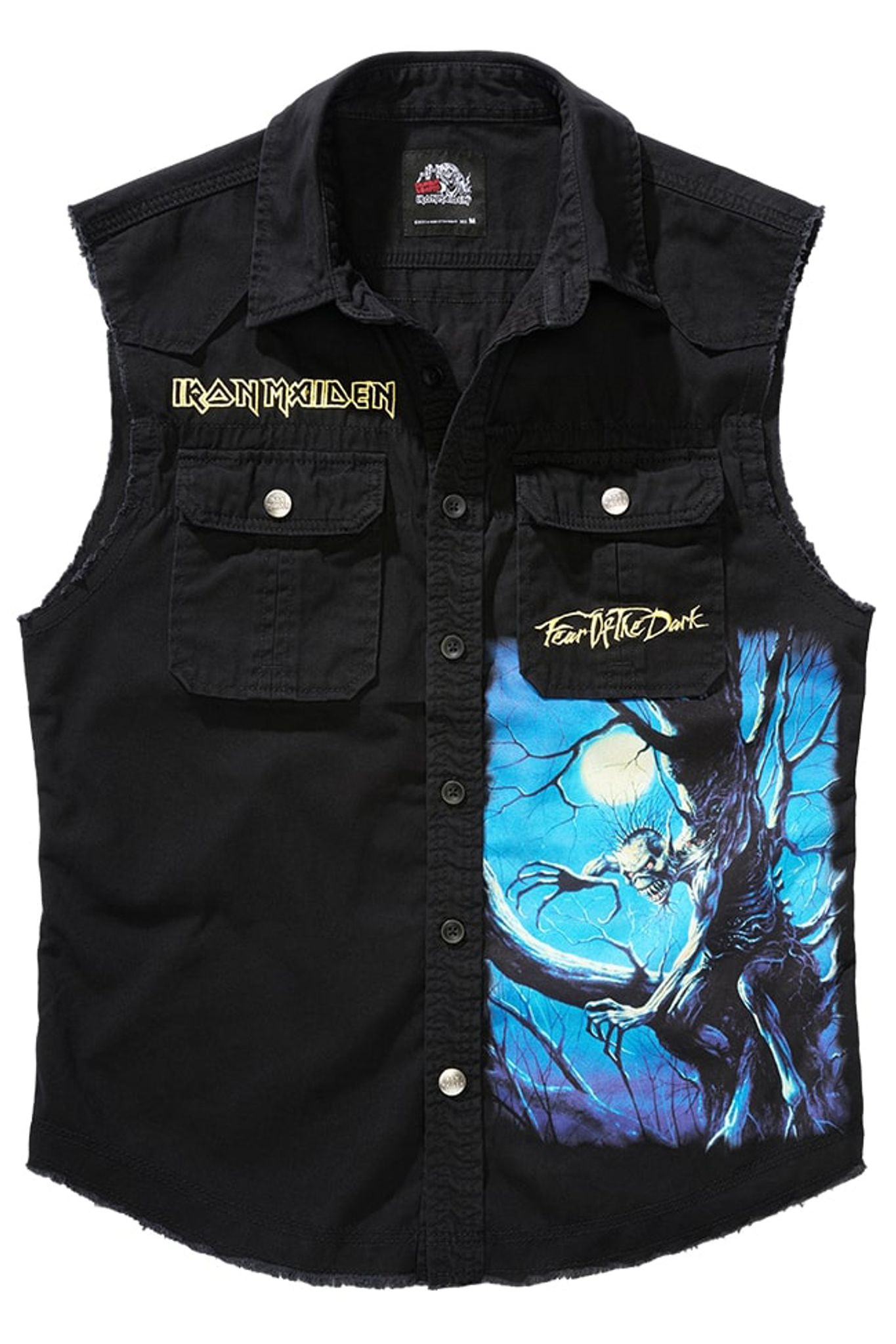 Brandit Iron Maiden Vintage Shirt Sleeveless Fear of the Dark är ett ärmlöst plagg med en rå och autentisk design för dig som hyllar ett av Iron Maidens mest stämningsfulla album. På framsidan finns ett iögonfallande tryck från Fear of the Dark-omslaget som tillsammans med broderade logotyper skapar en kraftfull visuell effekt. Skjortan har en klassisk workwear-silhuett med tryckknappar, logoknappar och slitna detaljer som förstärker vintagekänslan. Baktill sitter ett påsytt Iron Maiden-märke som ger skjortan en patch-väst-inspirerad look.
