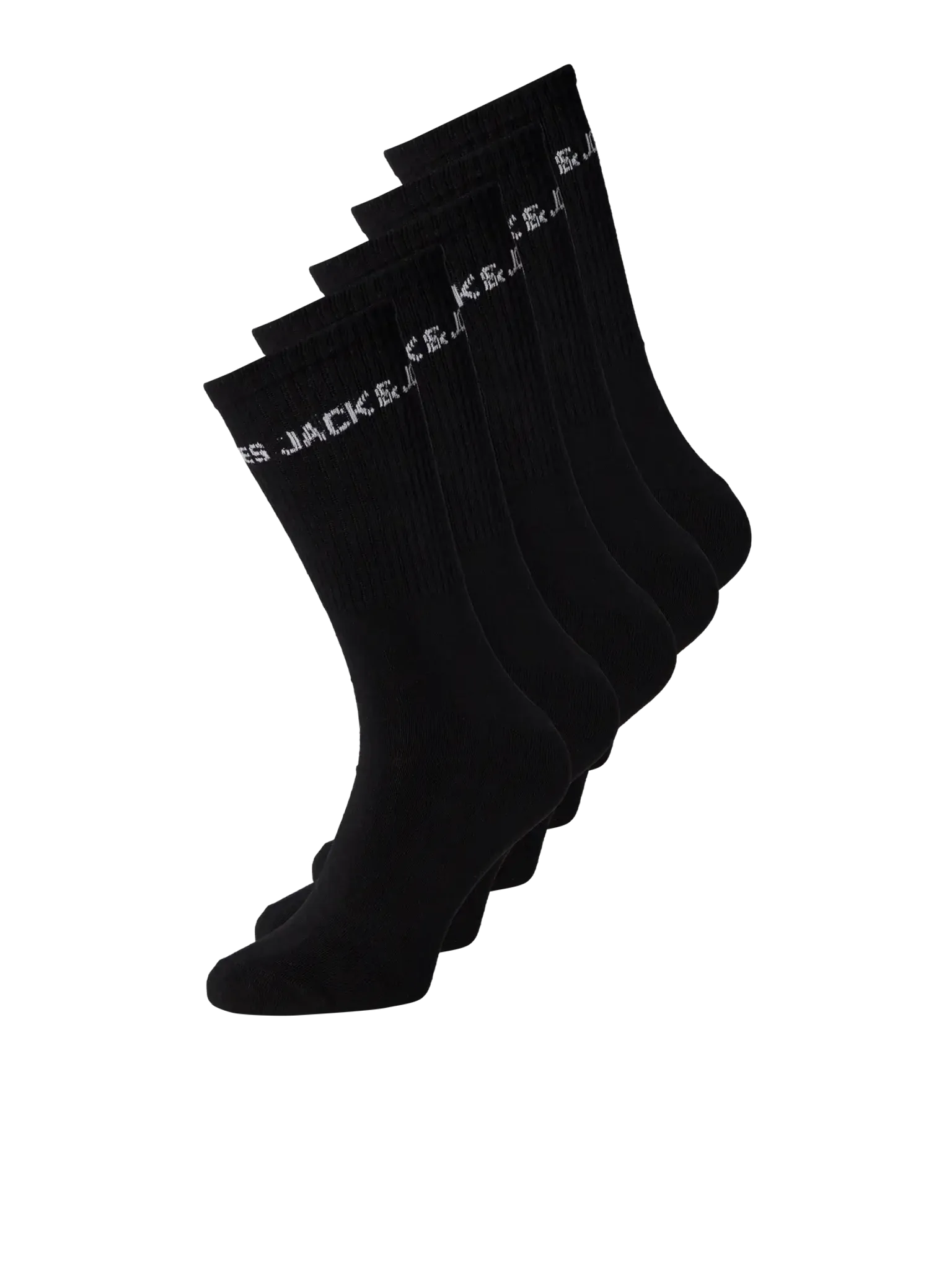Lyft både komforten och stilen med dessa svarta tennissockor med logotyp från JACBASIC. Med en sportig och tidlös design är detta 5-pack det perfekta tillskottet för dig som vill ha funktionella strumpor med en stilmedveten touch. Den diskreta men tydliga JACK & JONES-loggan runt skaftet ger ett urbant uttryck som passar lika bra på gymmet som i vardagen.