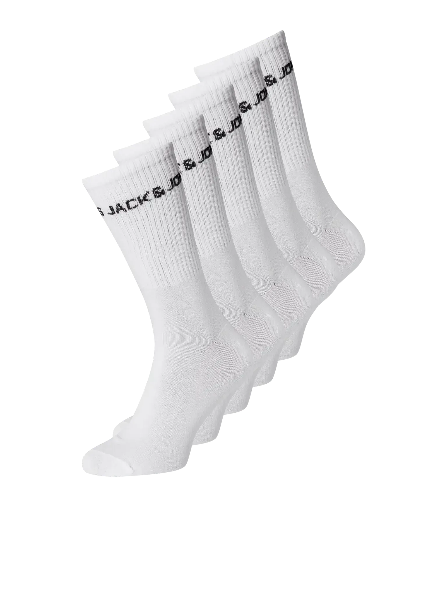 Ge dina fötter en fräsch och sportig look med dessa vita tennissockor med logotyp från JACBASIC. Med ett stilrent uttryck och bekväm passform är detta 5-pack perfekt för dig som vill kombinera funktion, komfort och klassisk sportstil i ett och samma plagg. Den svarta JACK & JONES-loggan längs skaftet skapar en tydlig kontrast mot det vita materialet – för dig som gillar stilrena detaljer som syns.