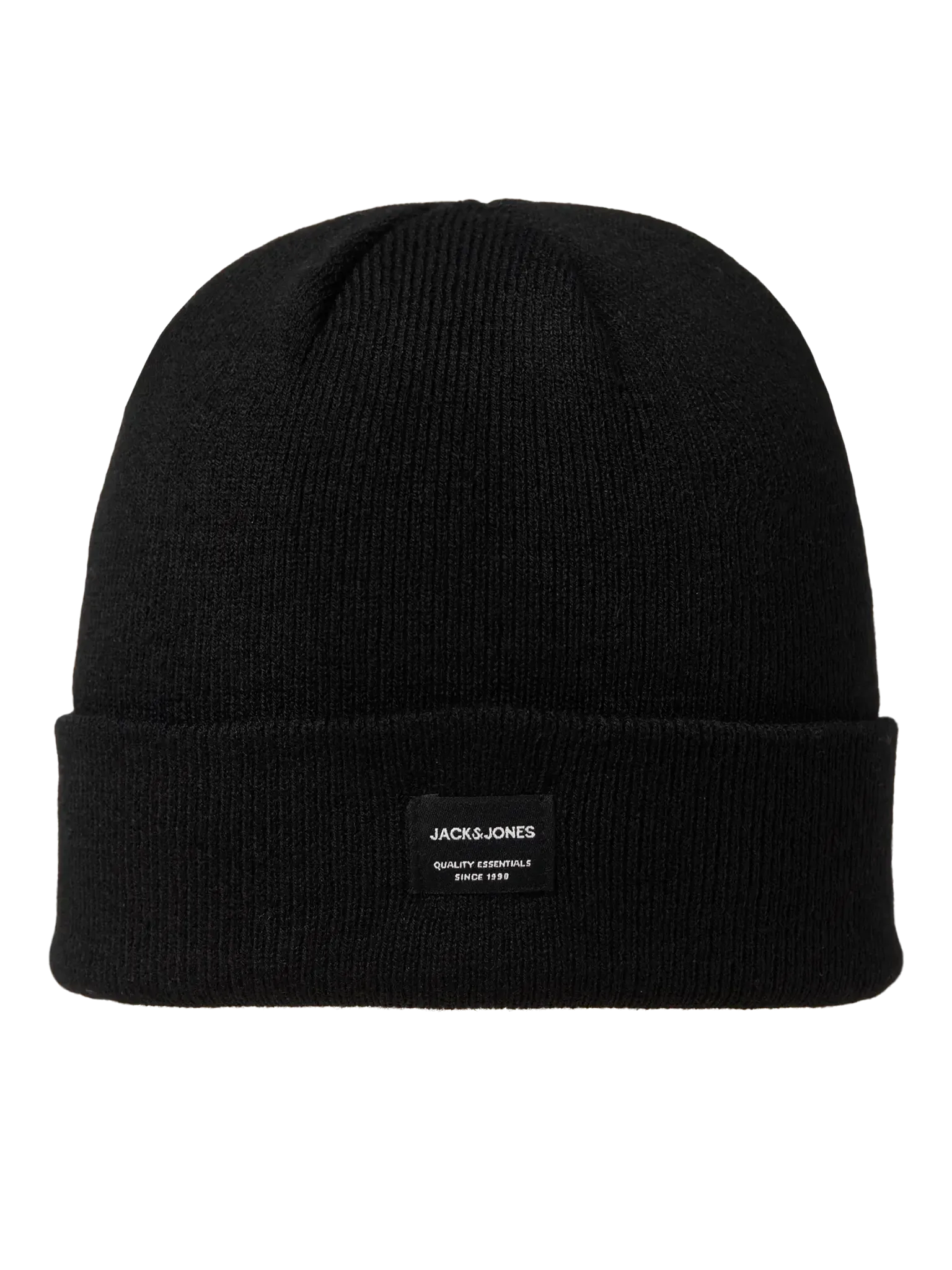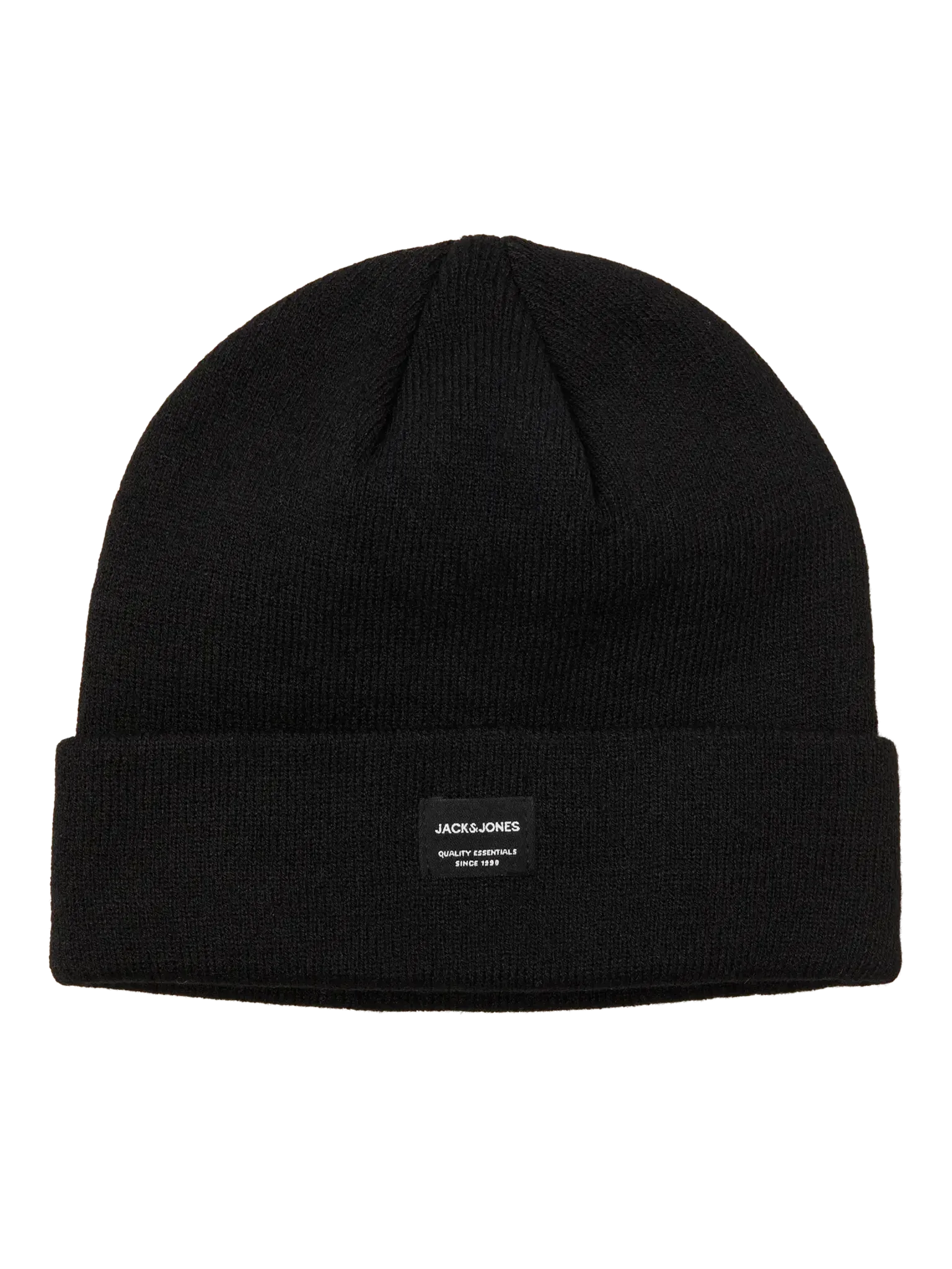 Denna svarta ribbstickade mössa från Jack & Jones är ett tidlöst och praktiskt val som passar alla stilar. Den är tillverkad i ett mjukt och följsamt material som både andas och håller värmen under kyliga dagar. Den breda uppvikta kanten ger en bekväm passform och pryds av en diskret vävd etikett framtill som ger mössan en modern och stilren touch.