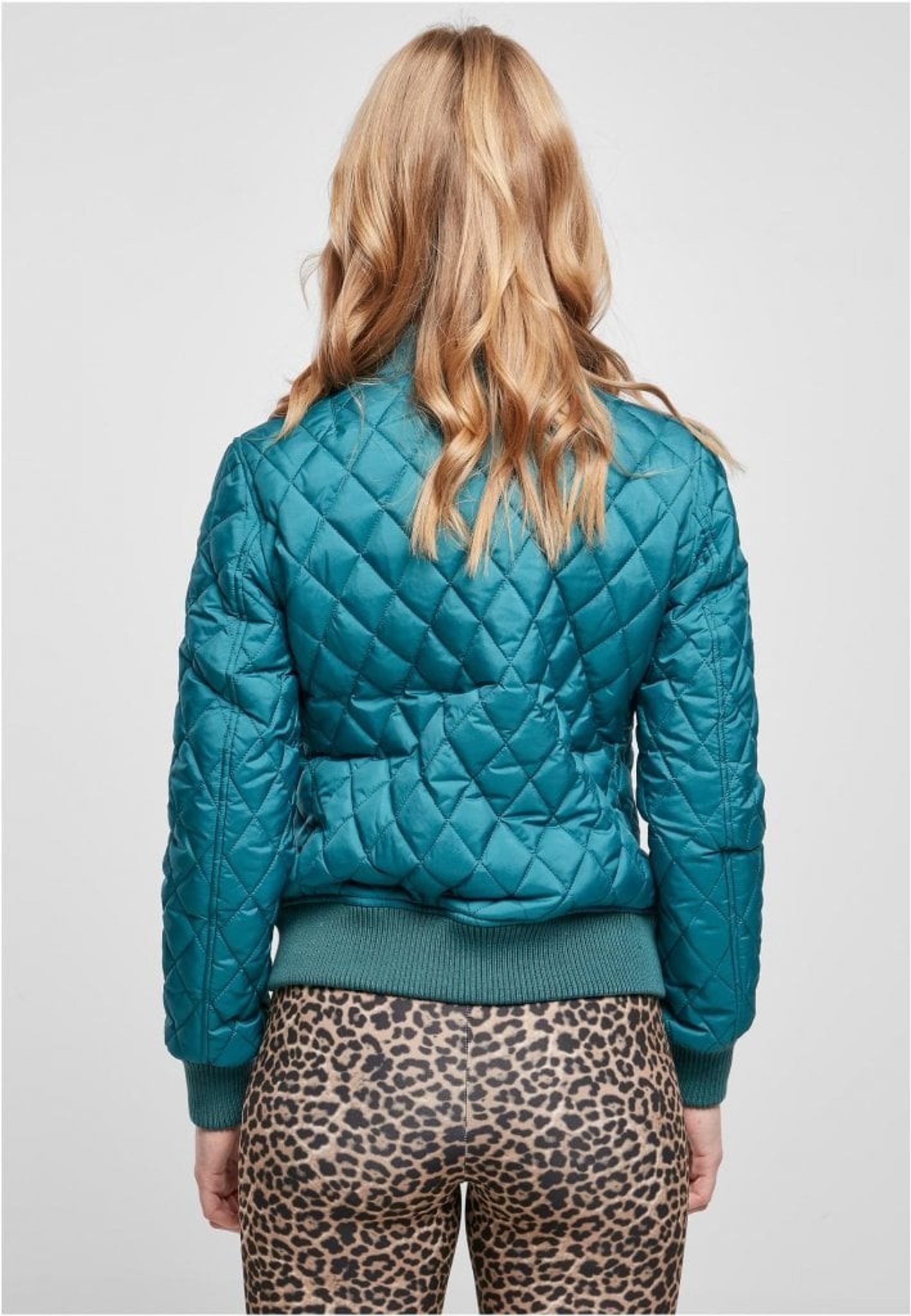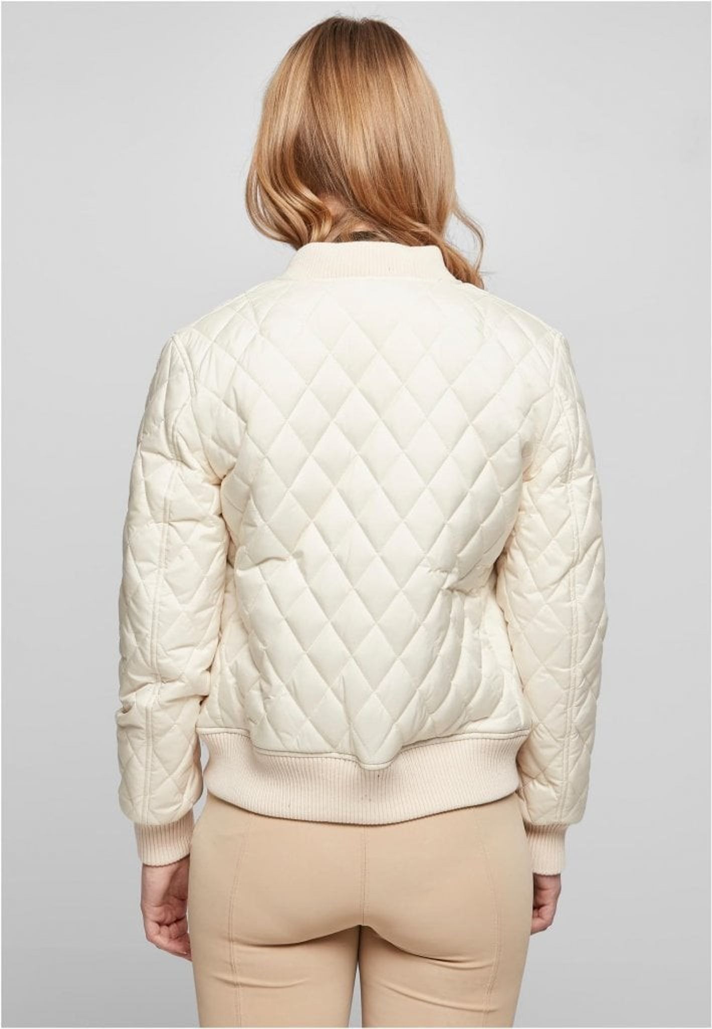 Denna damjacka från Urban Classics är både stilren och funktionell, med en snygg diamantquiltad design som gör den perfekt för kalla dagar. Jackan har ribbade muddar vid halsringningen, ärmsluten och nederkanten för en bekväm och åtsittande passform. Insidan är fodrad i en kontrasterande orange färg som tillför en modern touch.