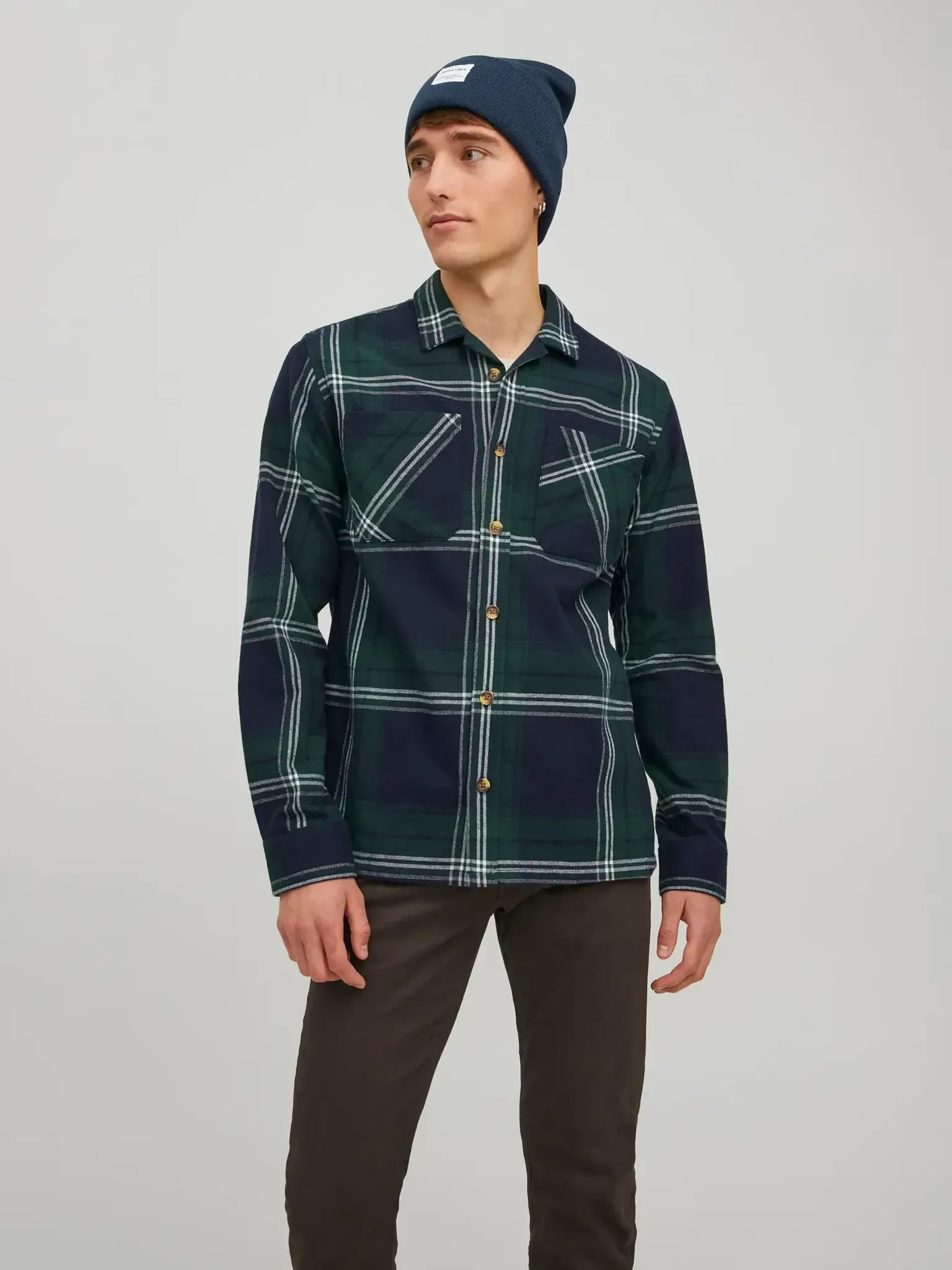 Mörkblå mössa med bred uppvikt kant