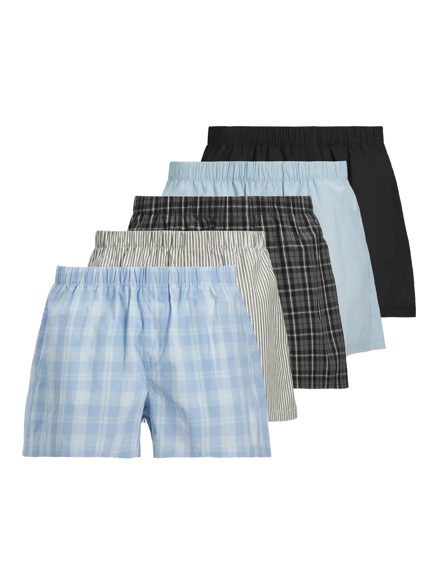 Rymliga boxershorts - 5-pack erbjuder en avslappnad och bekväm passform, perfekt för avkoppling och sömn. Dessa boxershorts är designade för män som värdesätter rörelsefrihet och komfort i sin vardag.