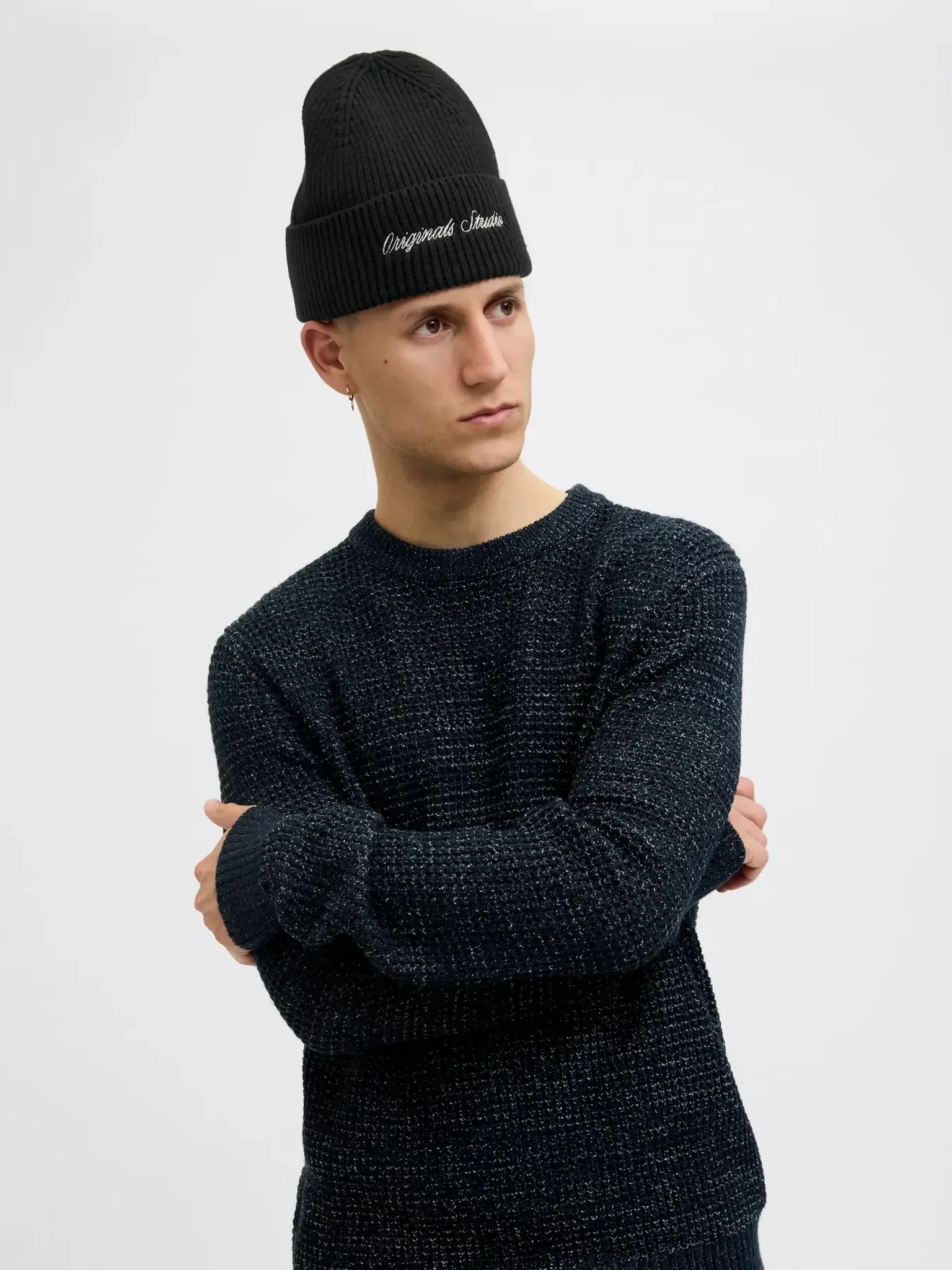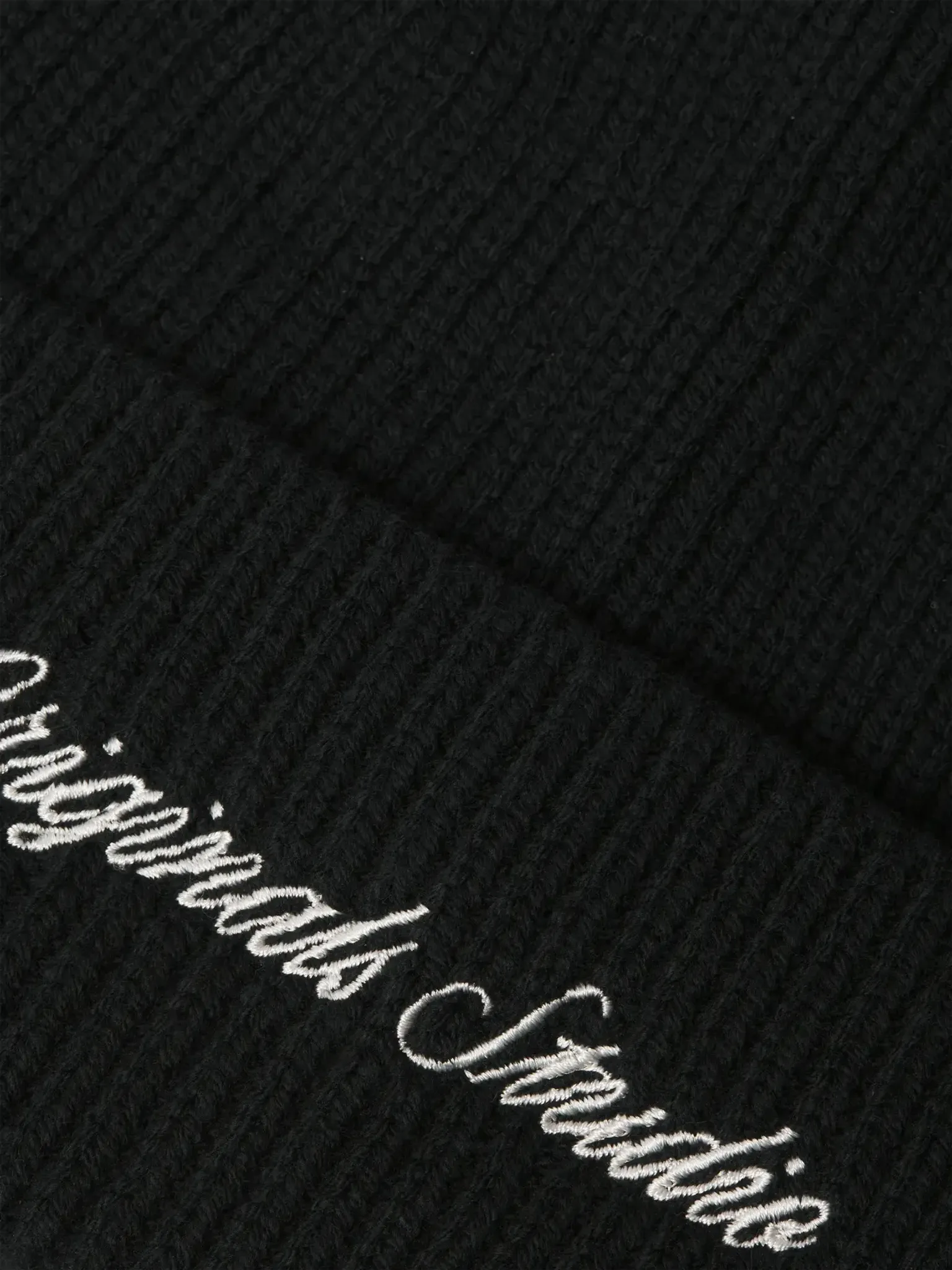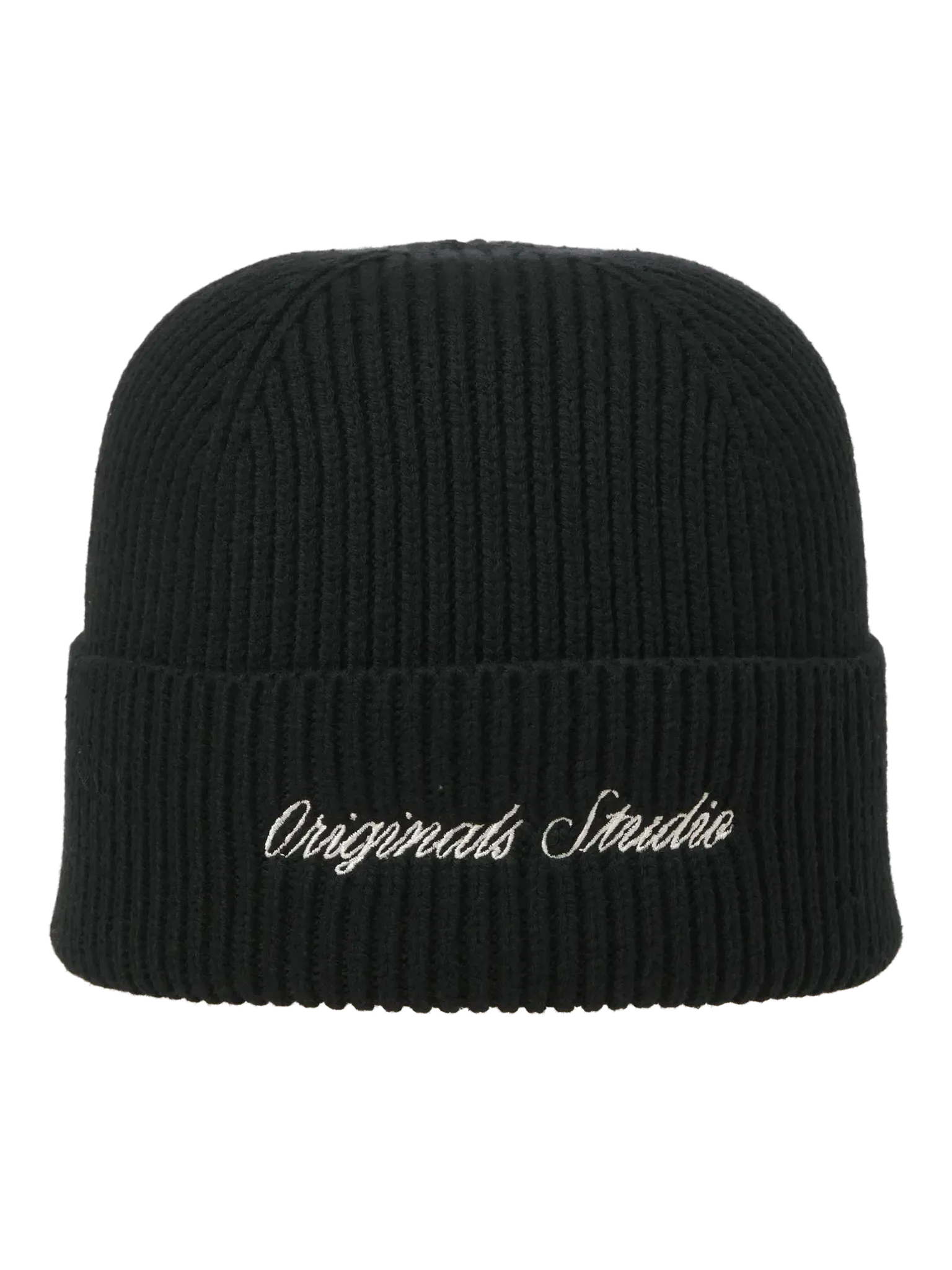 Sätt pricken över i:et på din outfit med denna svarta ribbstickade herrmössa med broderad "Originals Studio"-logotyp. Den stilrena designen kombinerar klassisk streetwear-estetik med funktionell värme, vilket gör den till en given favorit för både vardag och utevistelse.