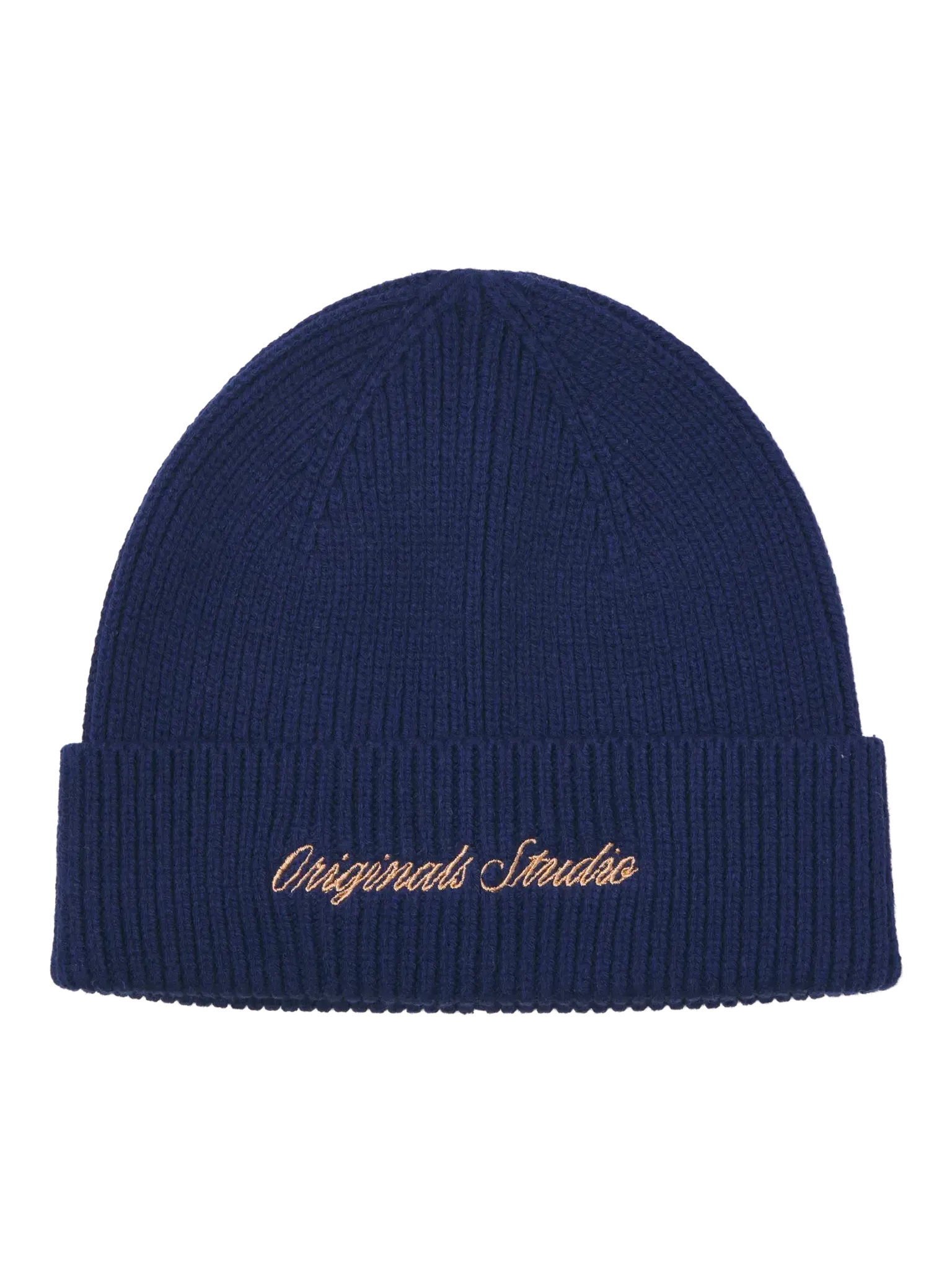 Ge din vinterstil en uppdatering med denna mörkblå ribbstickade mössa för herr, i färgen Ocean Cavern – en djup och elegant blå ton som passar perfekt till både mörka och ljusa outfits. Mössan har en broderad "Originals Studio"-logotyp framtill som sätter en subtil men stilsäker prägel.