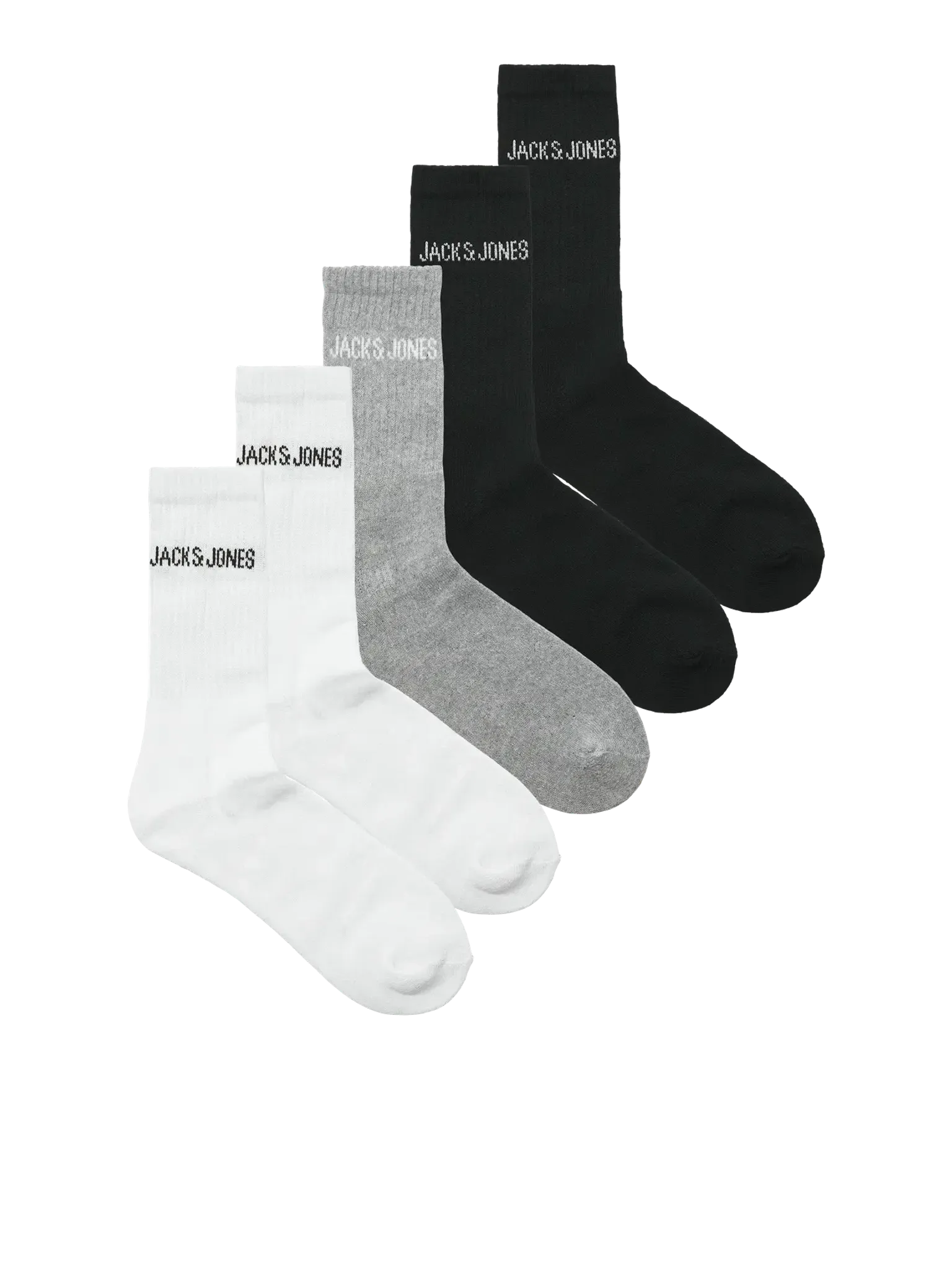 Dessa tennisstrumpor i färgmix kommer i ett praktiskt 5-pack med svarta, vita och gråmelerade par – perfekta för både vardag och träning. De är tillverkade i ett mjukt, elastiskt och ventilerande material som gör dem bekväma att bära hela dagen. Den ribbade skaften ger bra stöd och loggan upptill tillför en sportig och modern touch.