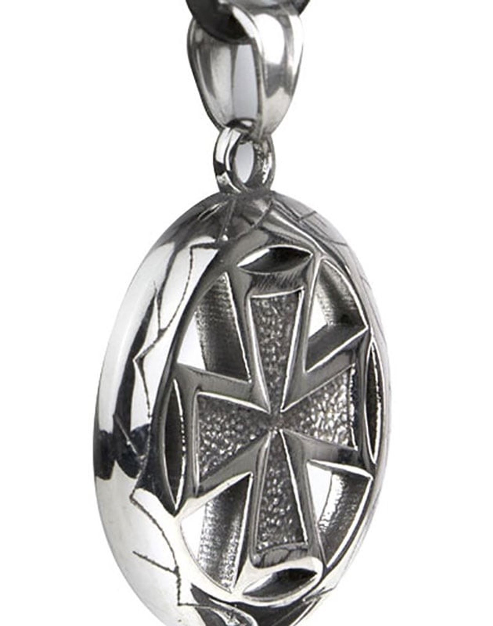 Ett halsband för dig som söker en symbol av historisk vikt och en modern twist. Detta halsband kombinerar styrkan i ett järnkors med den kontrasterande inramningen av en cirkel, skapat för att utstråla en stark och unik estetik.