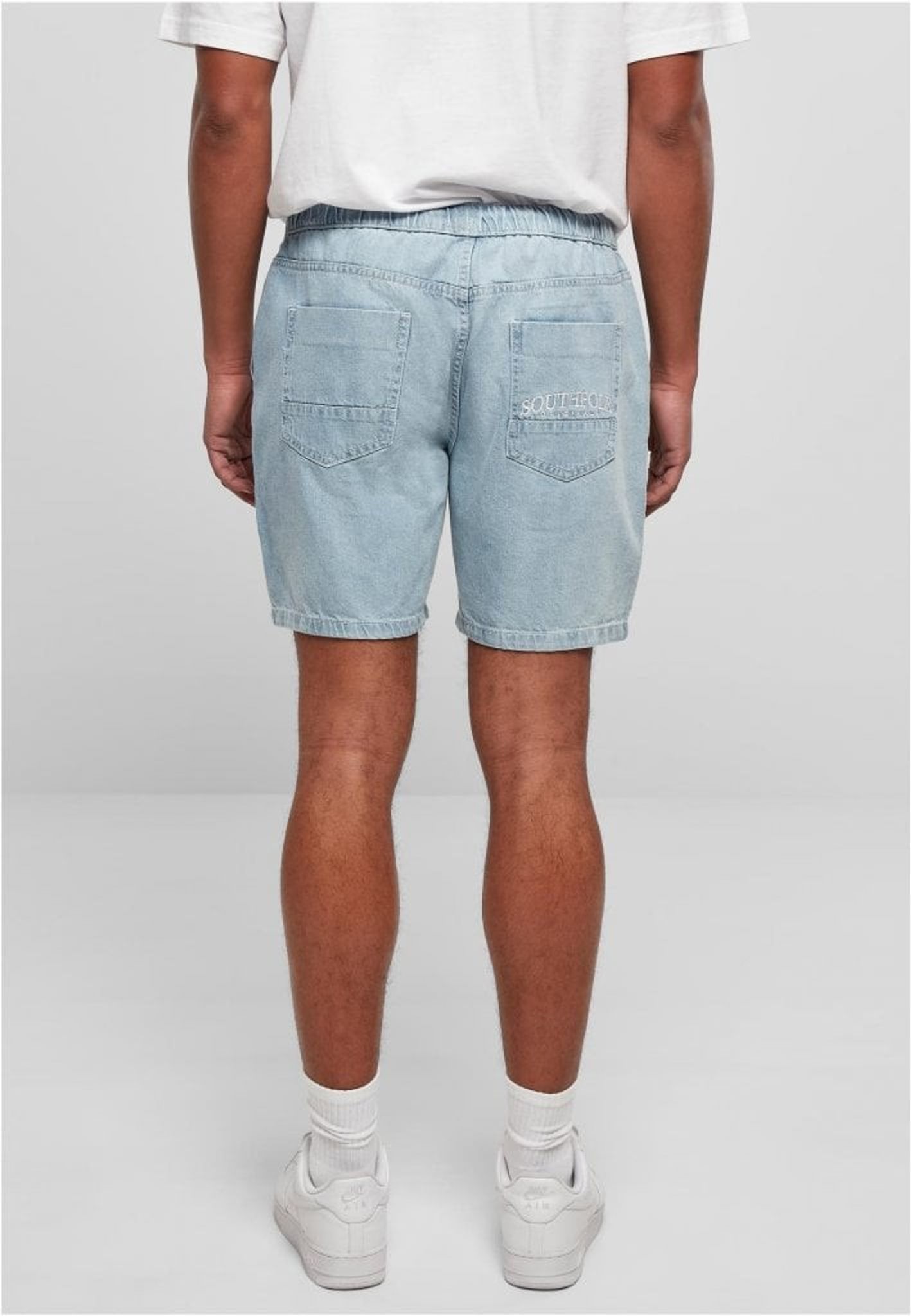 Jeansshorts från Southpole i ljusblått jeanstyg och mudd med snörning i midjan.