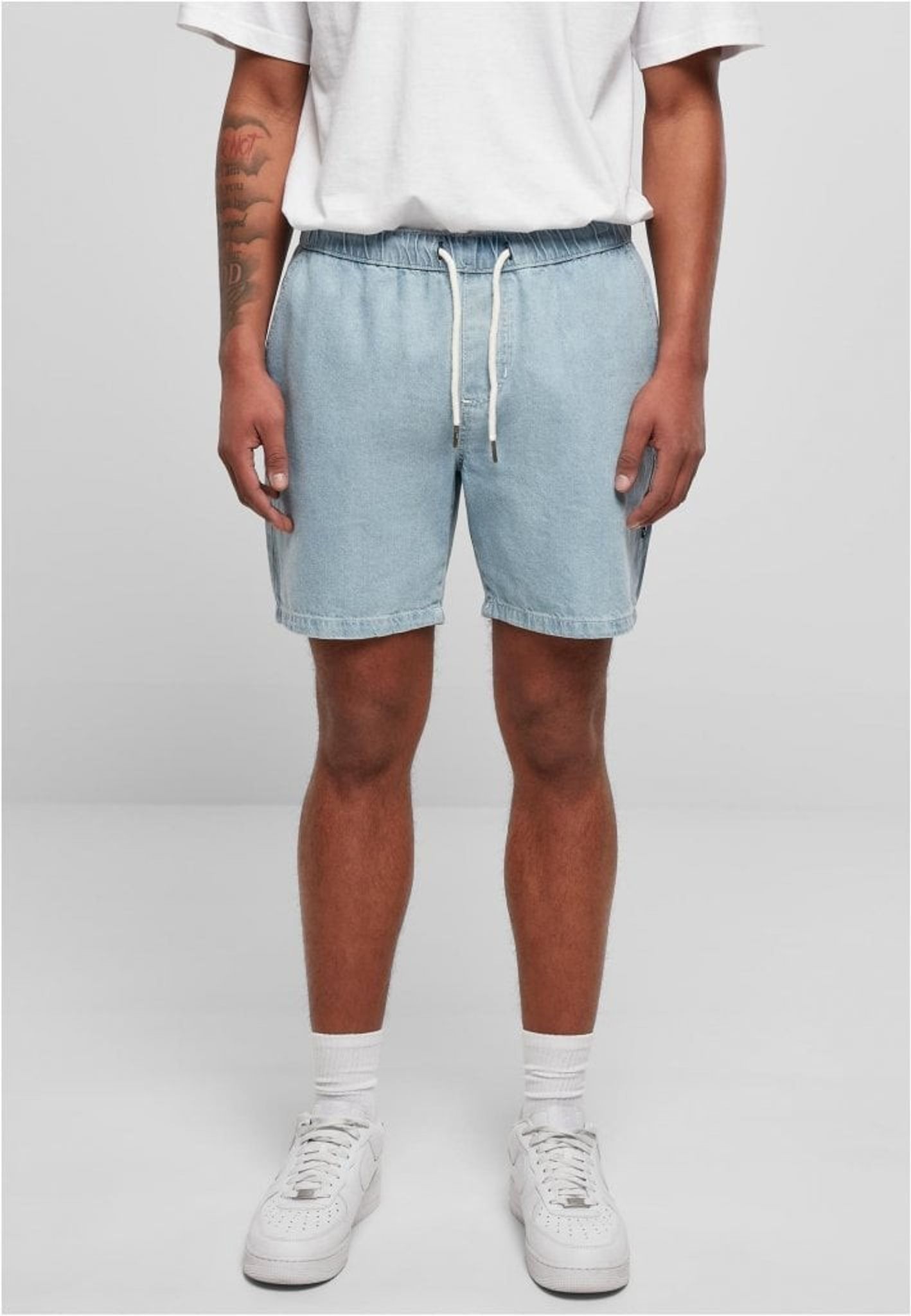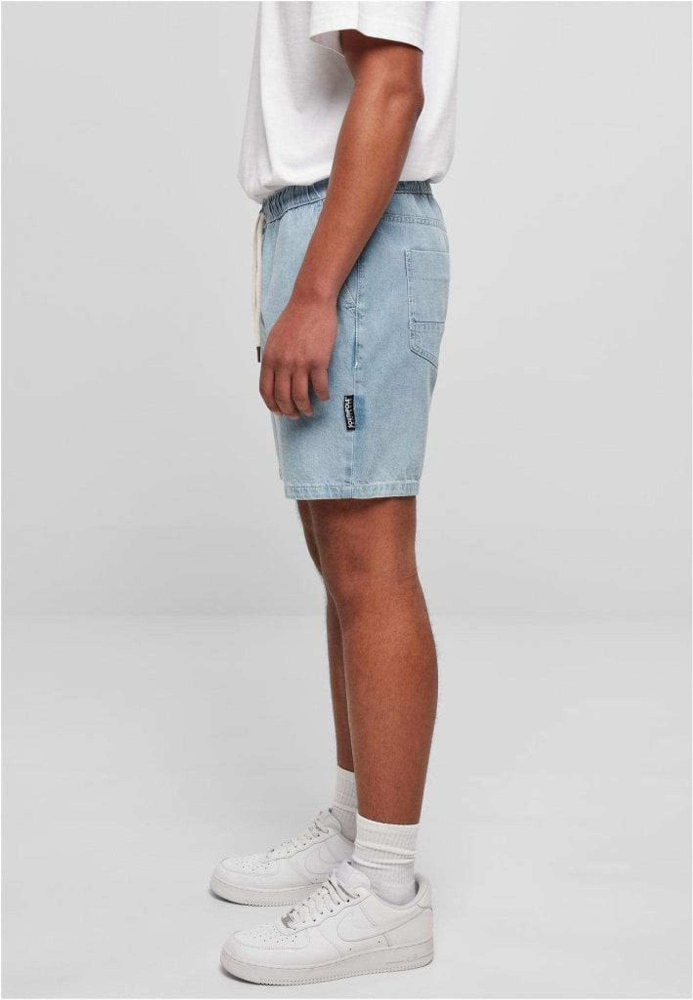 Jeansshorts med mudd i midjan - ljusblå