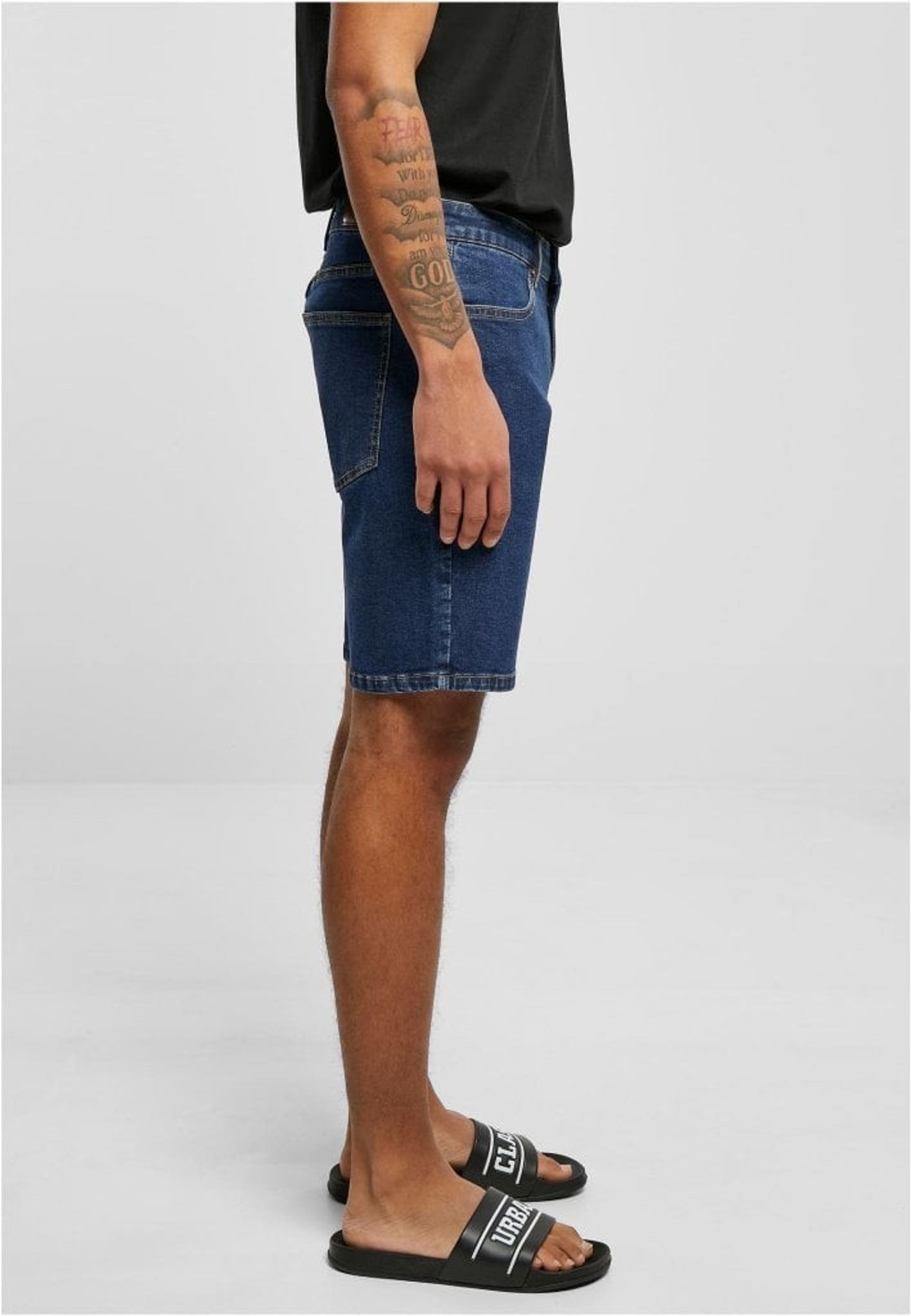 Dessa maskulina shorts är skurna i tidlös jeansmodell och tillfredsställer genom passform och stil. Midjan är utrustad med knapp, dragkedja och bältesöglor. Dessutom erbjuder herrjeansshortsen två bak- och två sidfickor för händer och väsentligheter.