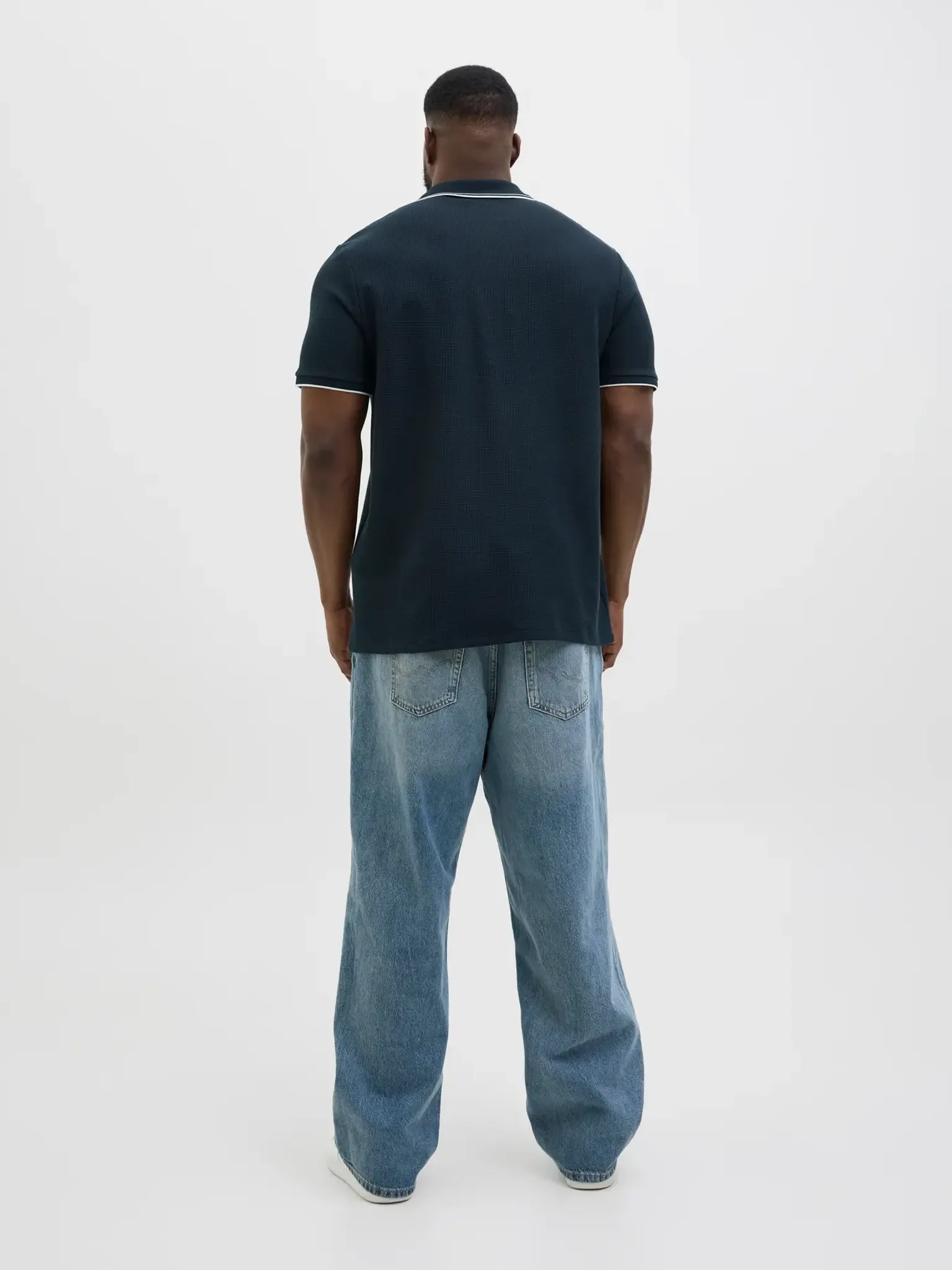 Marinblå pikétröja med vita detaljer – Jack & Jones Plus Size