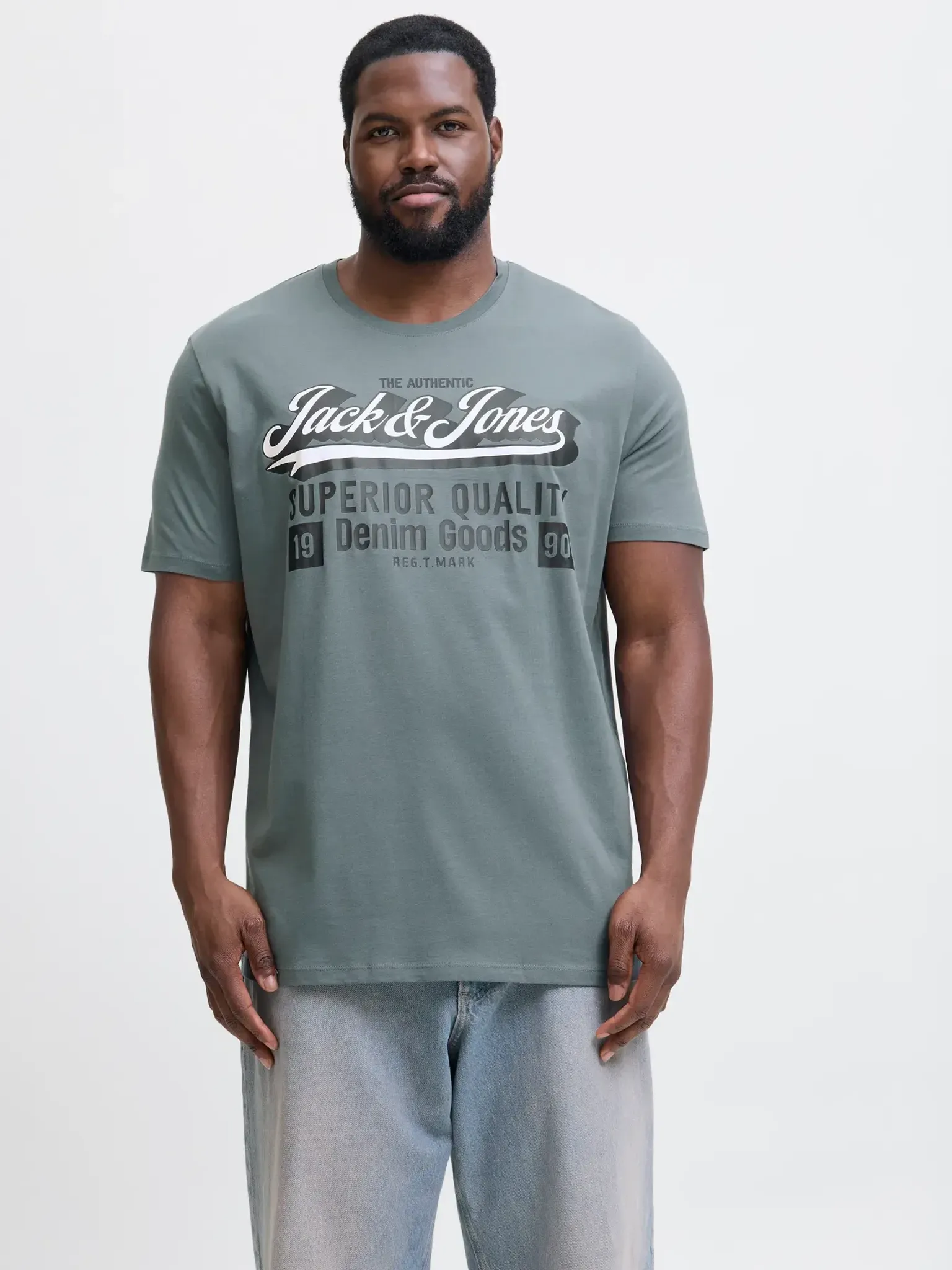 Blå T-shirt med logotryck herr plus size – Jack & Jones