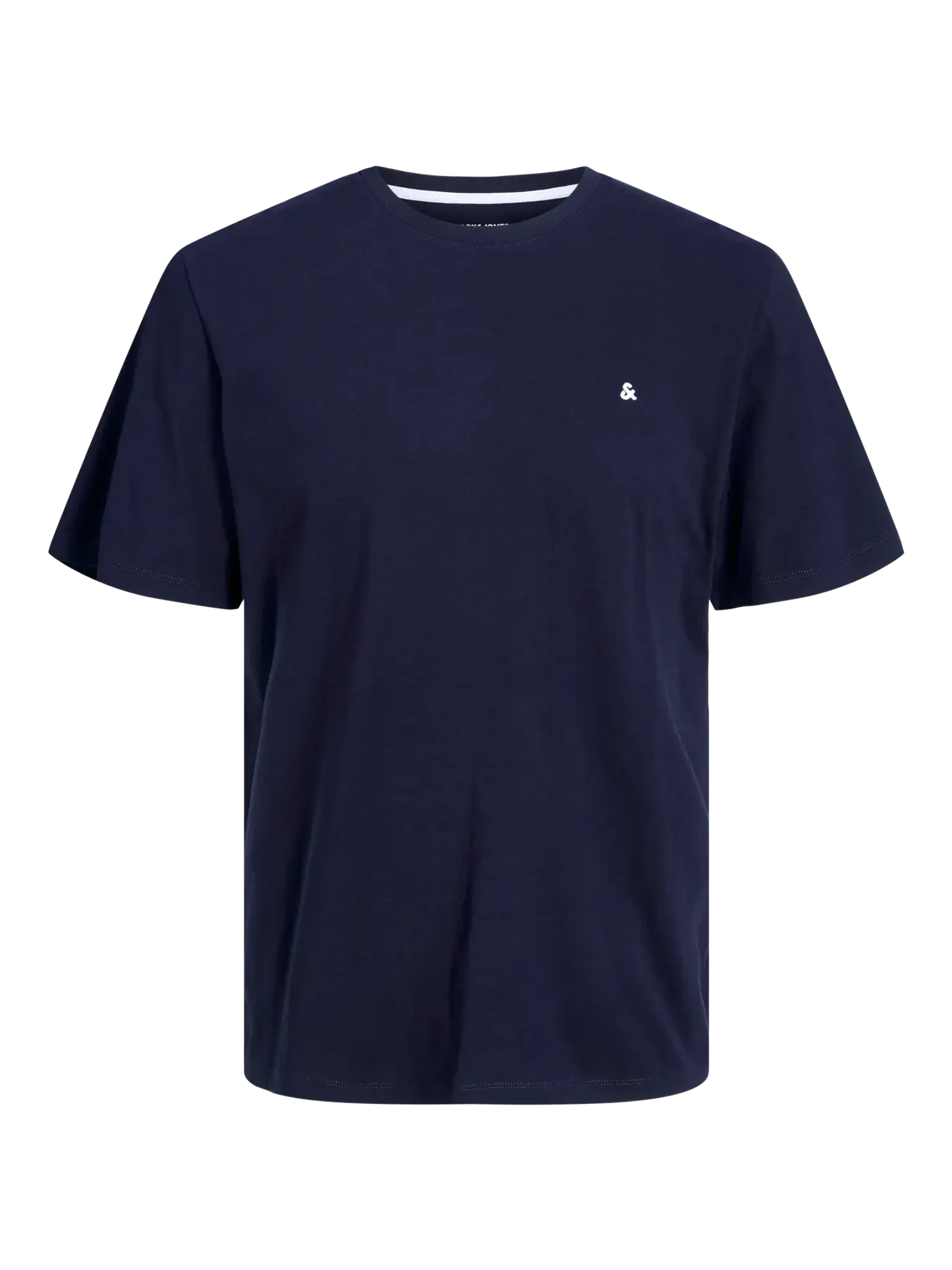 En stilren T-shirt i marinblått från Jack & Jones, framtagen i plus size för en bekväm och modern passform. Den är gjord i mjuk, kammad jersey av ekologisk bomull, vilket ger en skön känsla mot huden och gör den perfekt för vardagsbruk. Den diskreta broderade loggan på bröstet ger T-shirten en minimalistisk och tidlös look som enkelt kan kombineras med jeans, shorts eller chinos.
