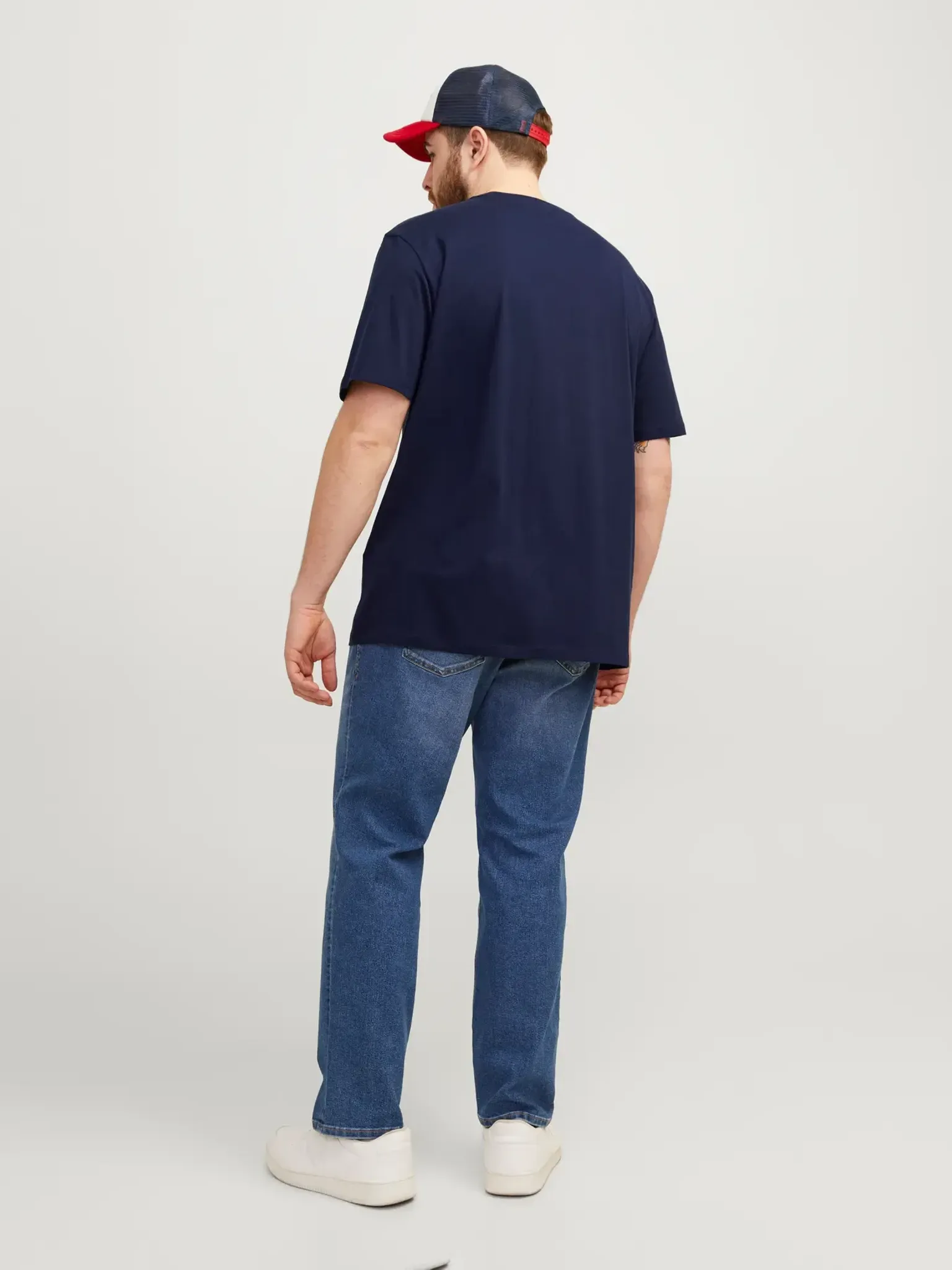 Marinblå plus size T-shirt herr med broderi – Jack & Jones