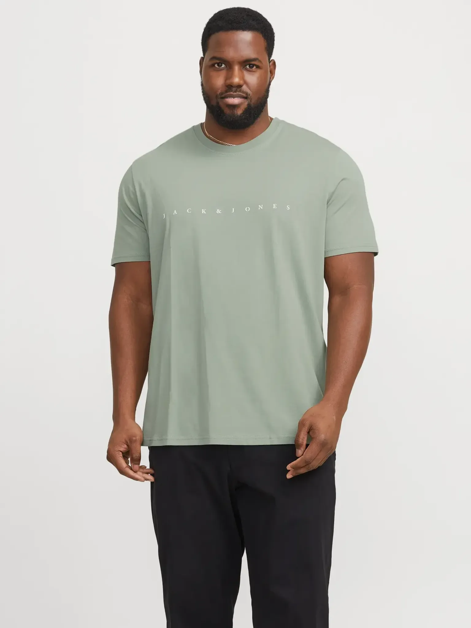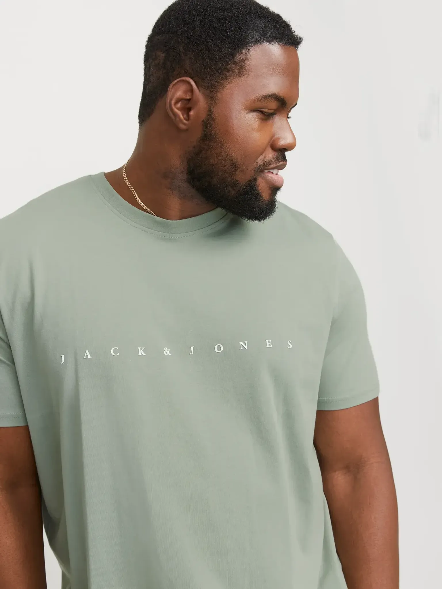 Upptäck komfort och stil med Jack & Jones T-shirt T-shirt i den eleganta färgen Iceberg Green. Denna T-shirt är designad för att passa plus-size kroppar och har en standard passform med en rund hals och korta ärmar.