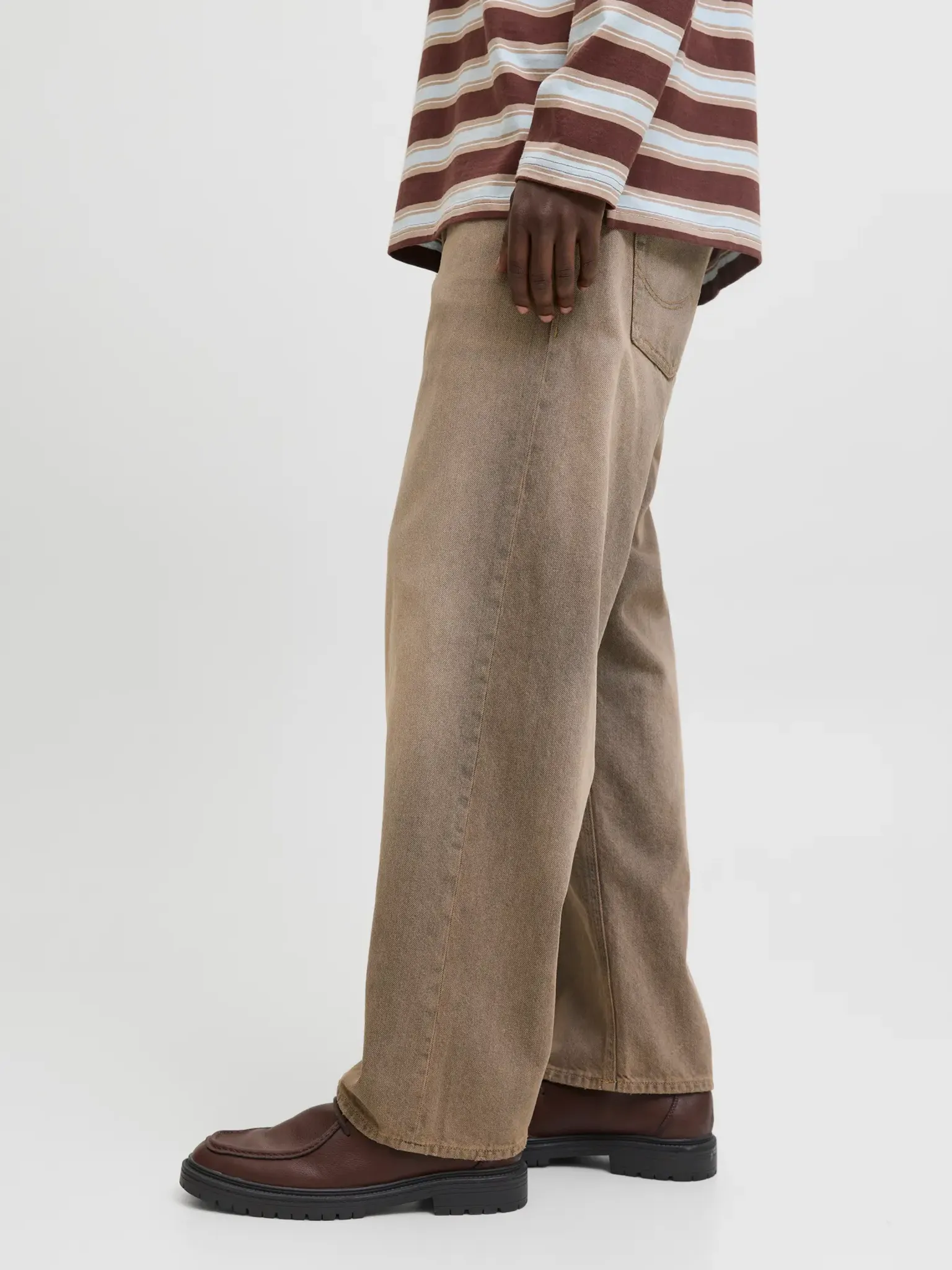 Den bruna denimfärgen är behandlad med stonewash som skapar ett lätt urtvättat och slitet utseende för en modern vintagekänsla. Jeansen är tillverkade i slitstark twillväv av bomull och återvunnen bomull, vilket gör dem både hållbara och bekväma.