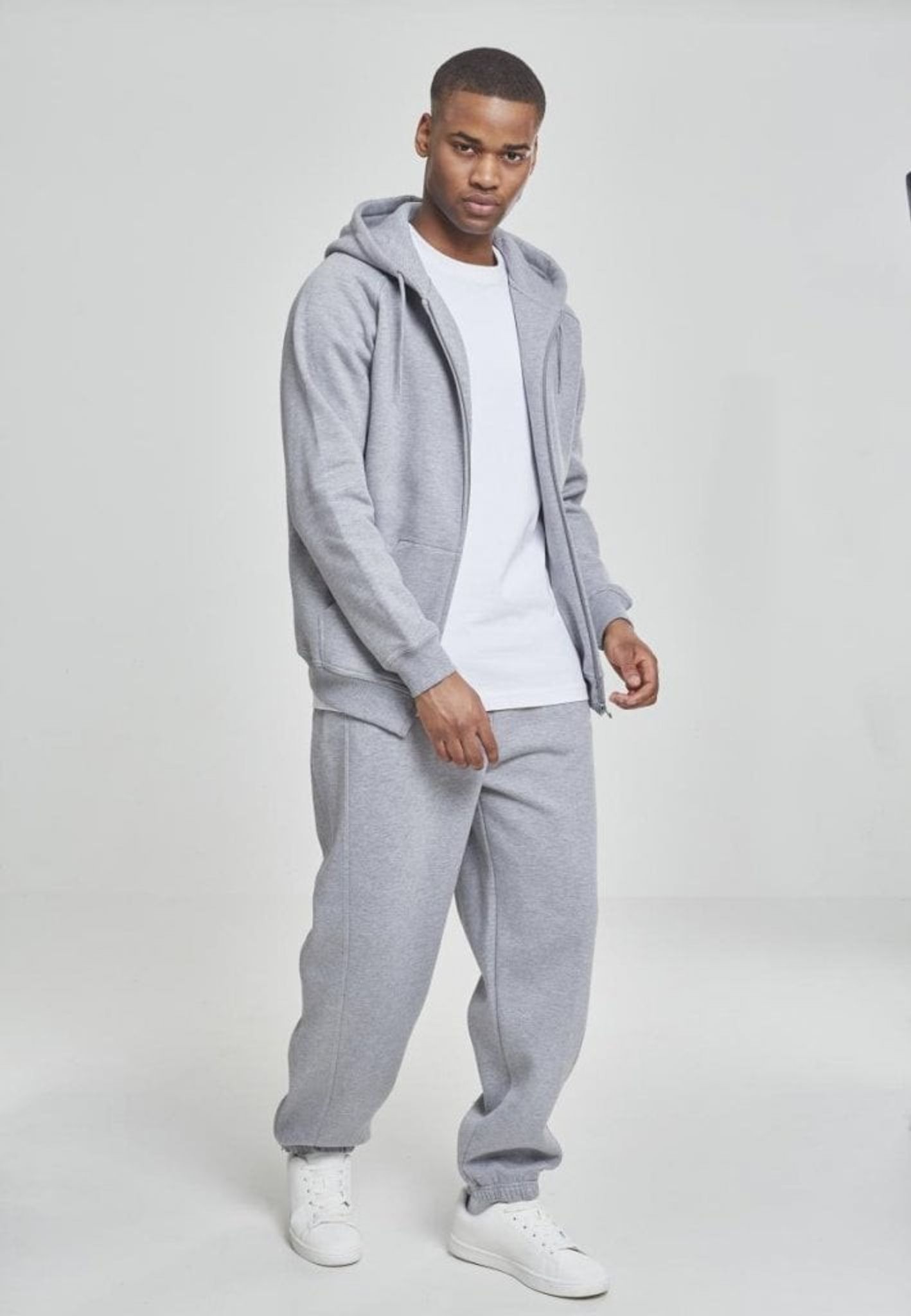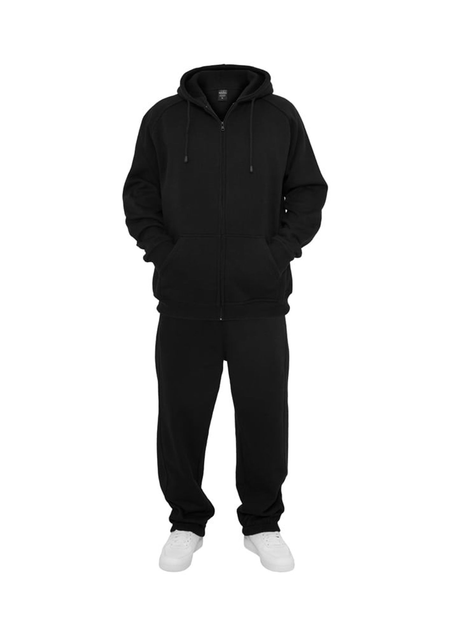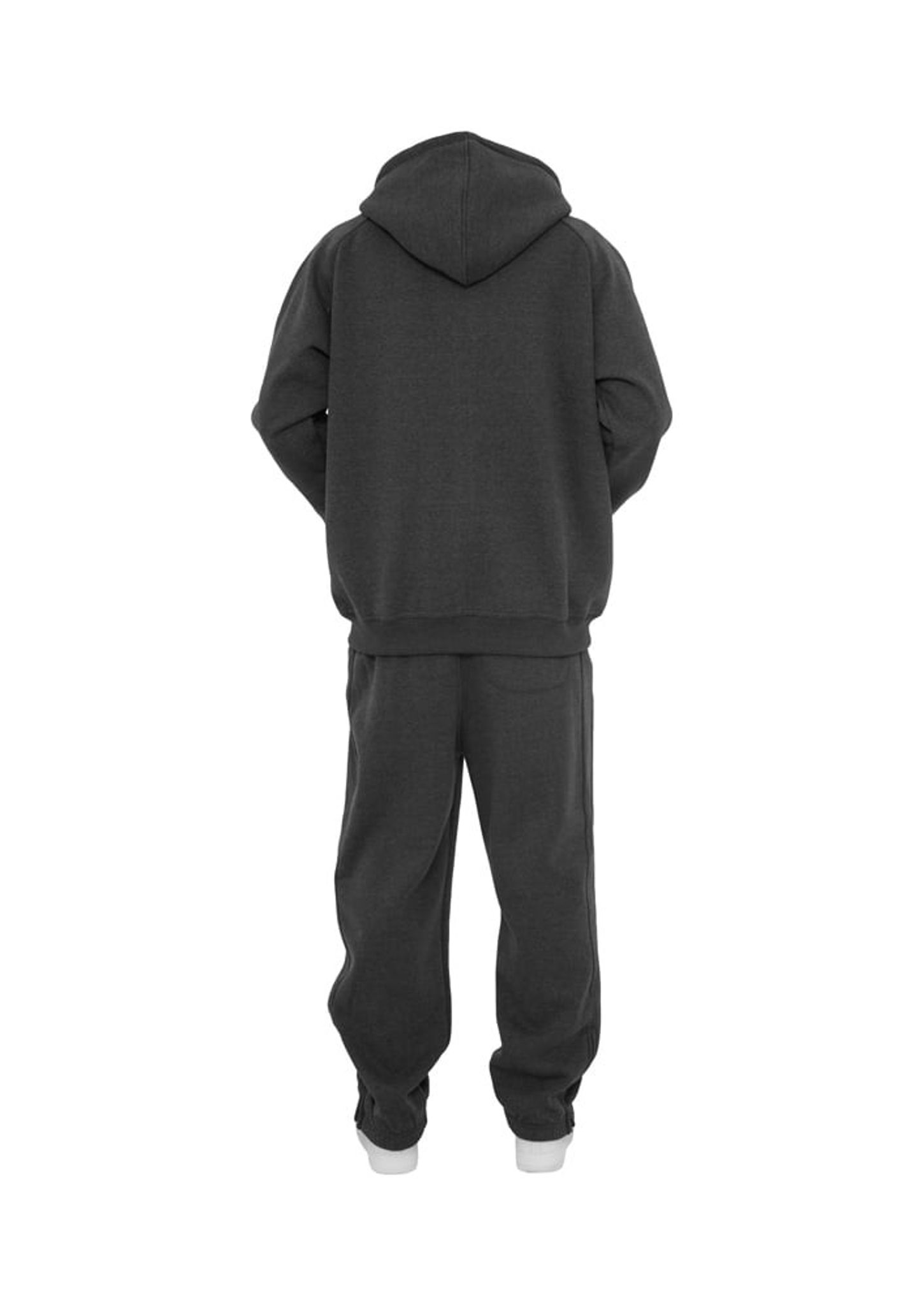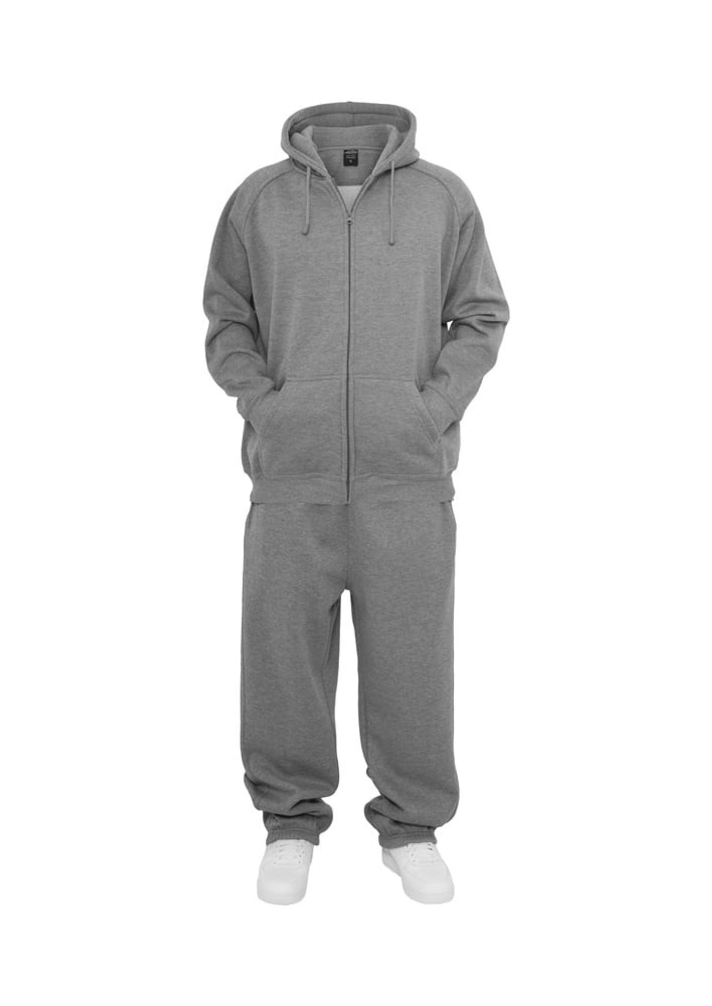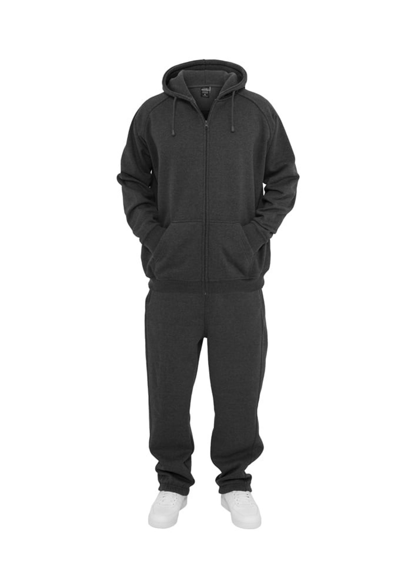 Dressen består av en huvtröja med dragkedja fram och ett par byxor.